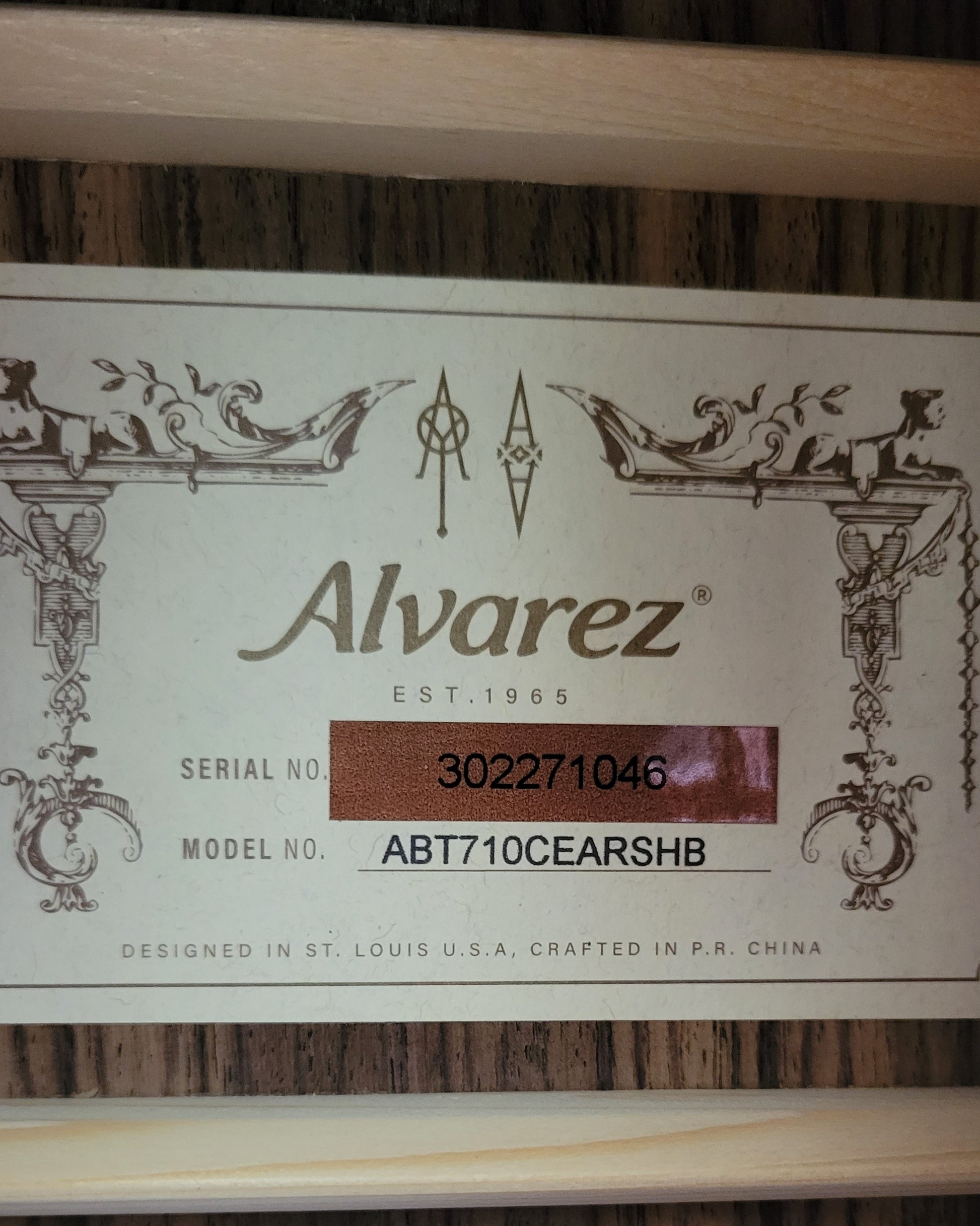 Alvarez ABT710CEARSHB Baritone Acoustic Electric Guitar, Shadow Burst, New Gig Bag