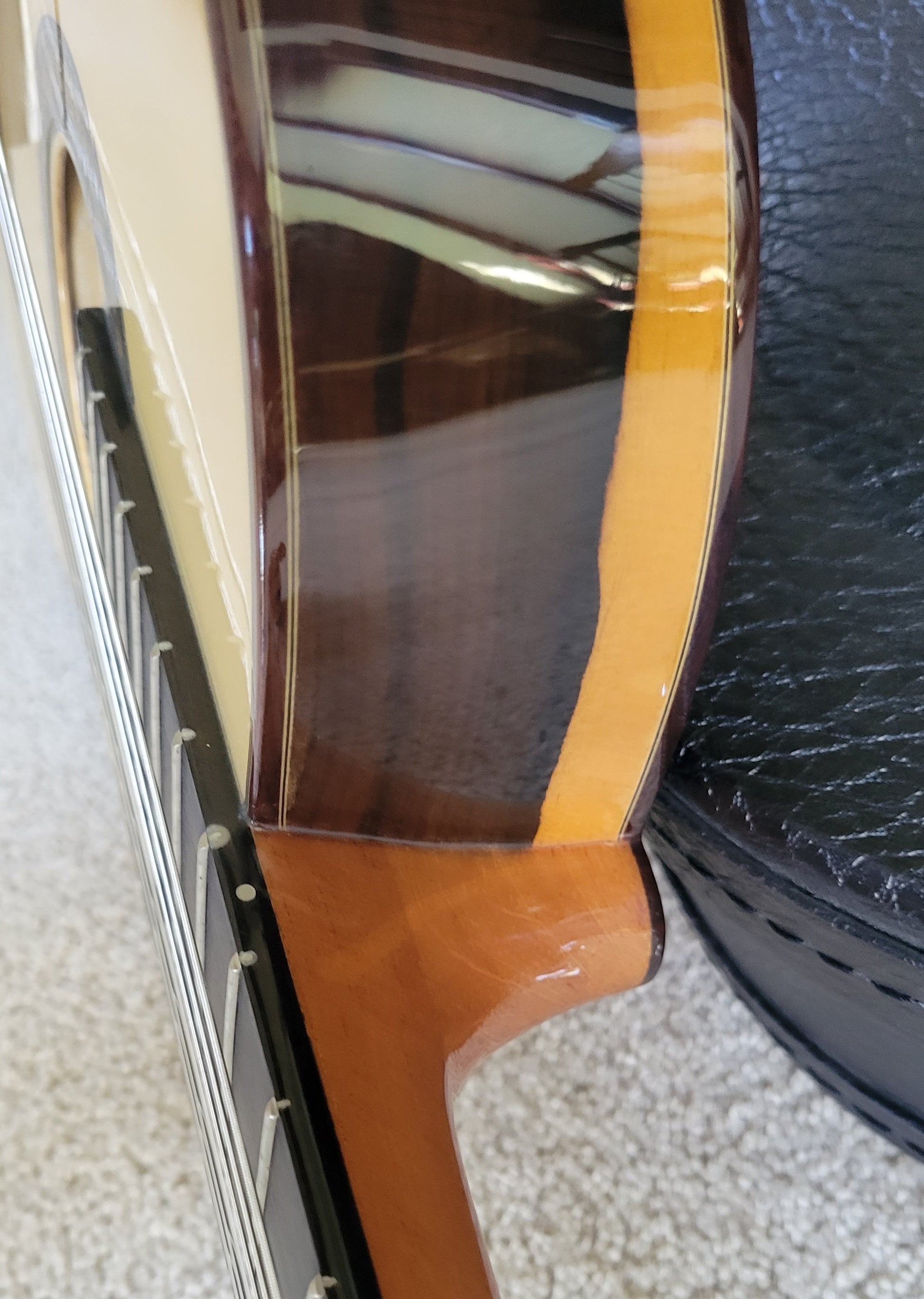 This guitar went from the factory to their authorized refurbisher, where it received a full multi-point inspection and expert setup - it is ready to play! No visible repairs were necessary, and no modifications were made except the back of the headstock was stamped USED. I acquired this guitar from the refurbisher, and there has been no other owner. This LIKE NEW guitar has not been played except for setup and testing.