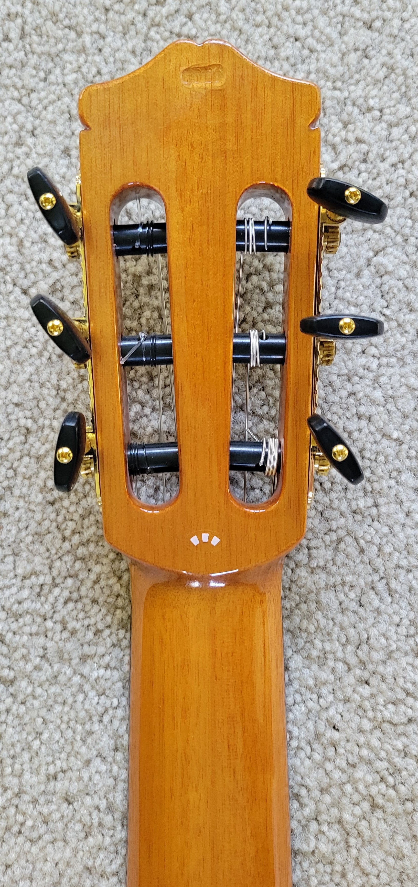 The C9 is an all-solid Spanish style guitar featuring a Canadian cedar top with mahogany back and sides. Handmade in a small boutique workshop, it's the perfect choice for serious classical guitarists, or any player looking to upgrade to a concert-level instrument at an affordable price.