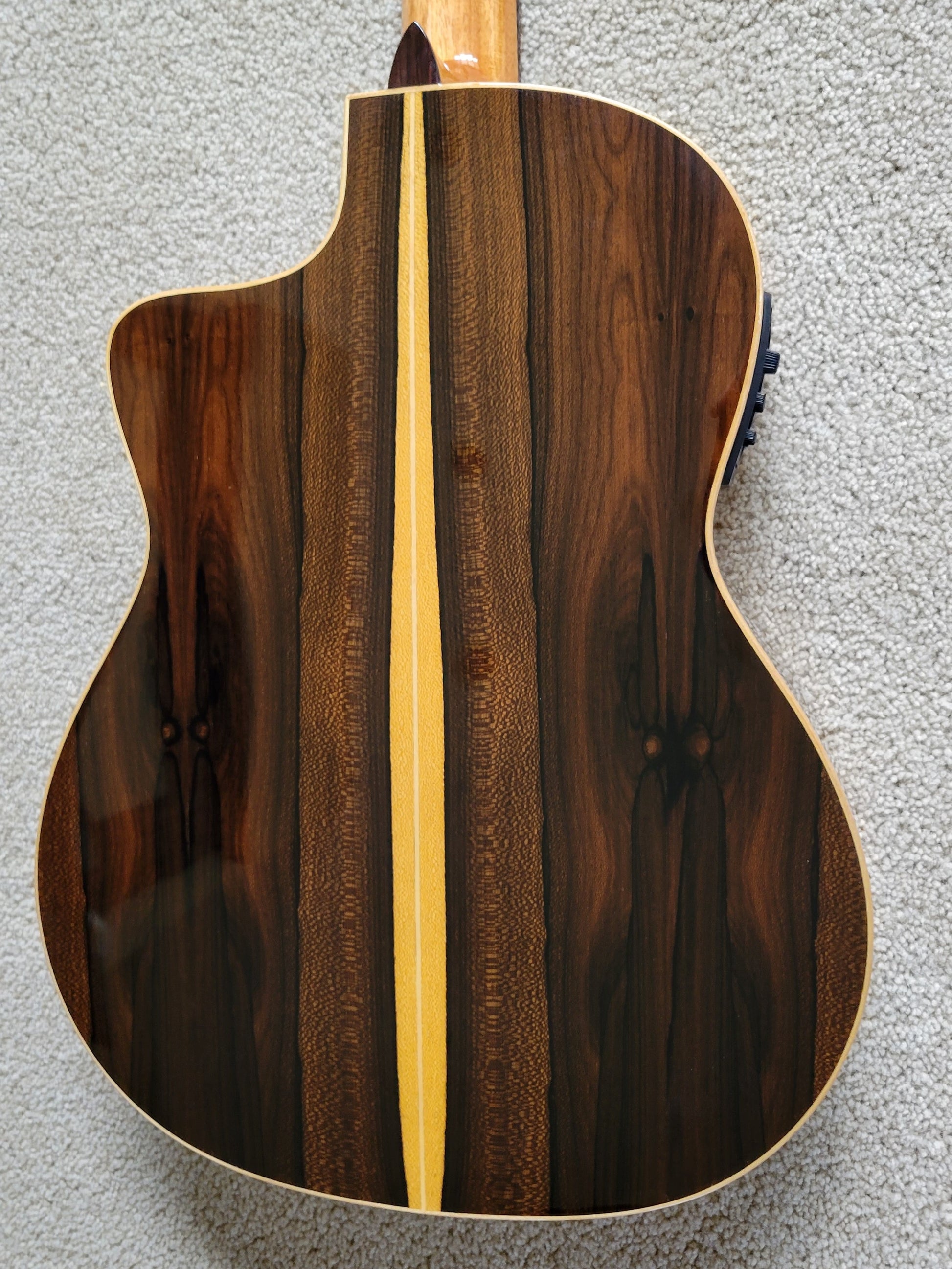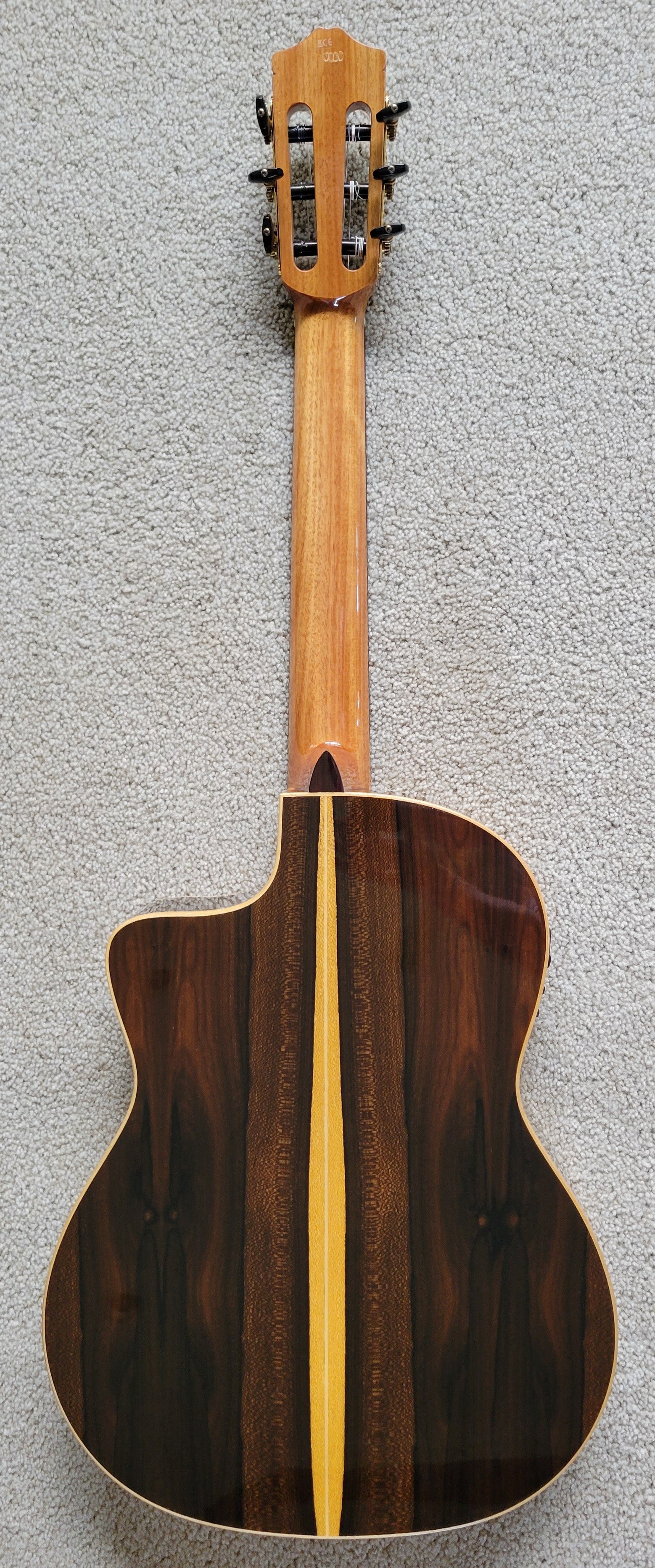 The GK Studio Limited offers a new spin on Córdoba’s ultimate gigging instrument. For a limited time only, the popular GK Studio will be available with striking ziricote back and sides. This highly-figured exotic wood has unique visual characteristics, while providing a rich, smooth sound that fills a room. Some flamenco players prefer exotic ziricote for a bassier and more robust tone in contrast to the bright, snappy sound of 'blanca' flamenco guitars which use cypress. However, any guitarist looking for a new tone will feel right at home. The GK Studio Limited has the same comfortable playability and low action as the GK Studio and like every Córdoba guitar, this model has a two-way truss rod built into the neck. Other premium features include a high gloss finish, clear flamenco-style tap plate, and Savarez strings. The GK Studio Limited features exotic ziricote, which varies greatly in appearance and grain pattern.