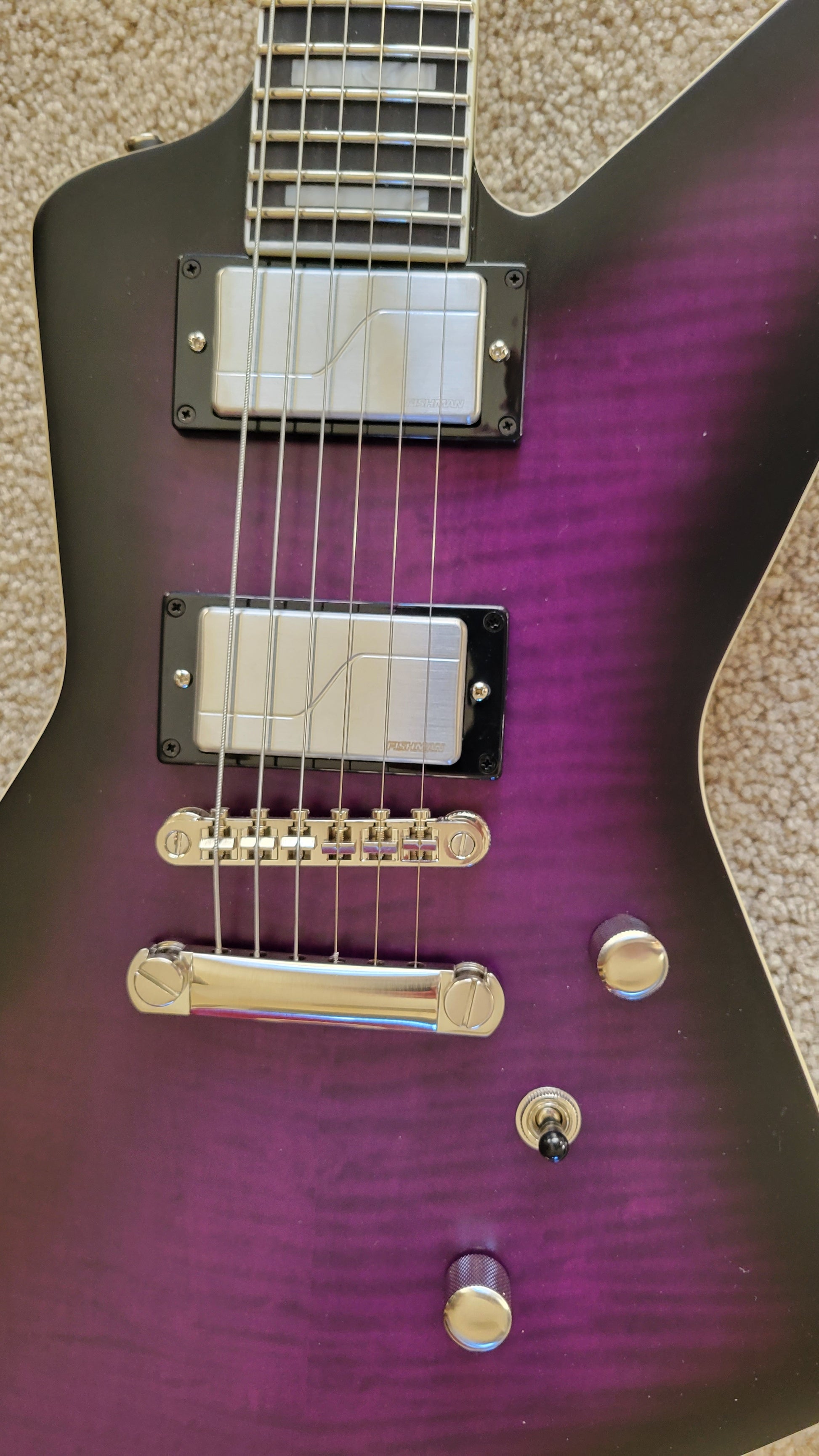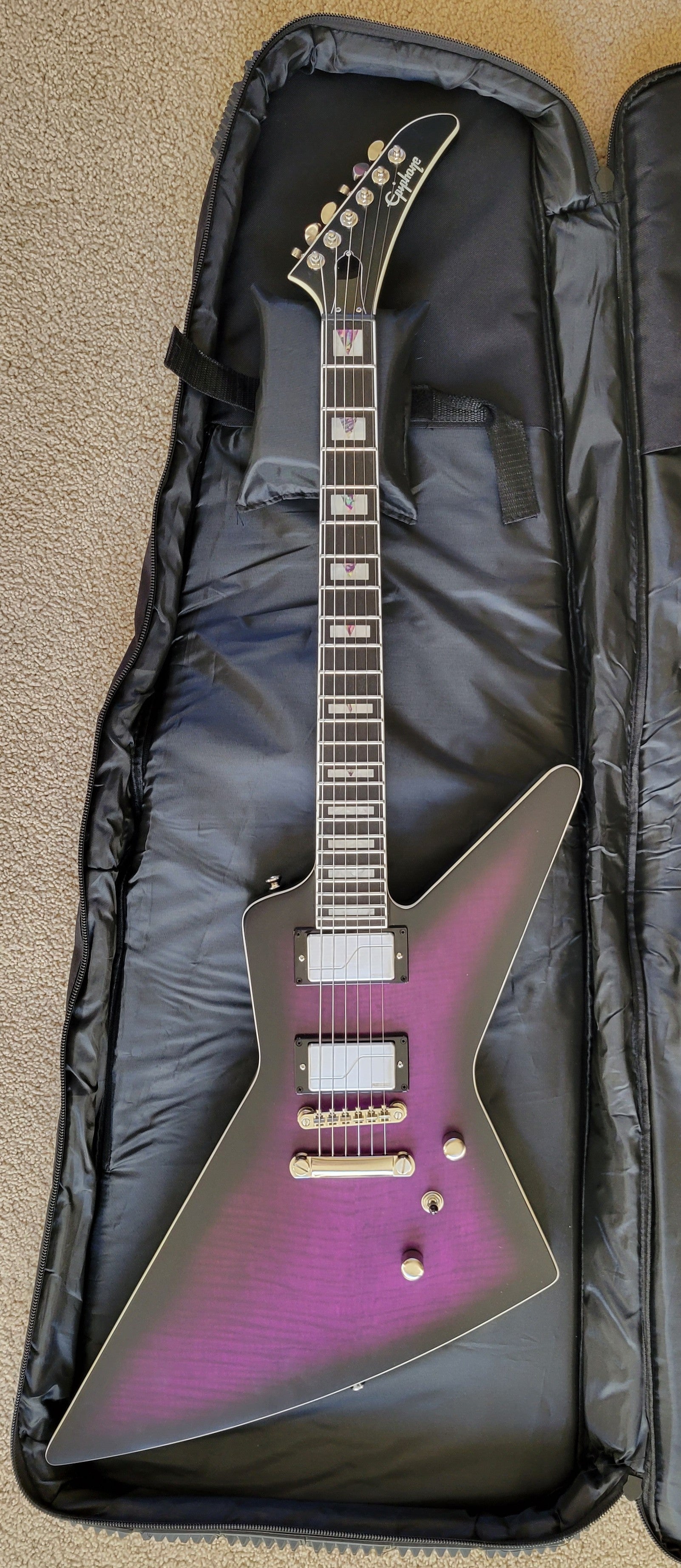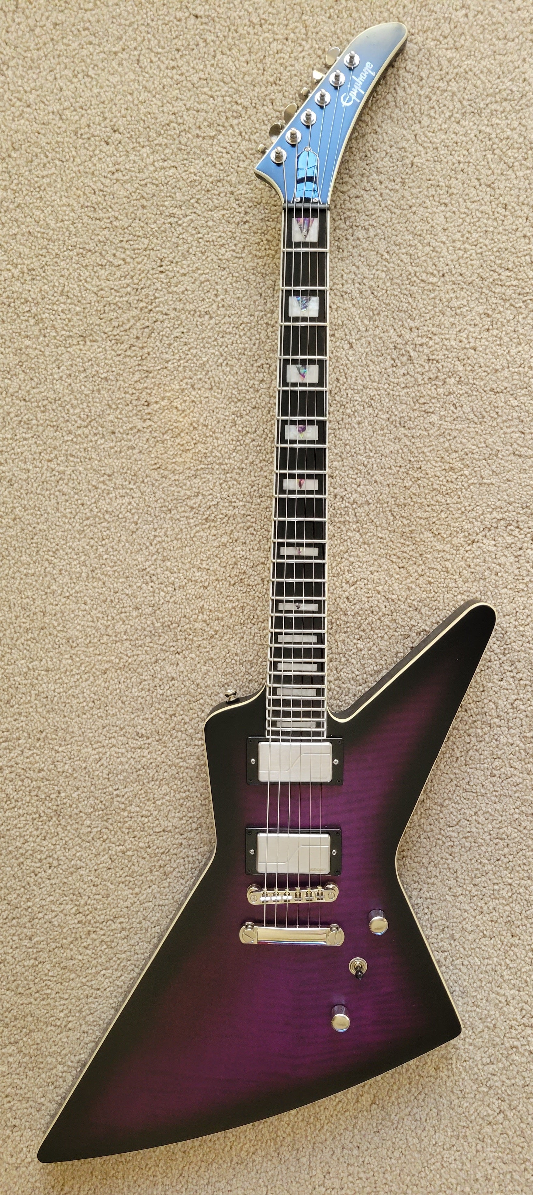This is the Awesome Epiphone Prophecy Extura Electric Guitar with the Purple Tiger Aged Gloss finish