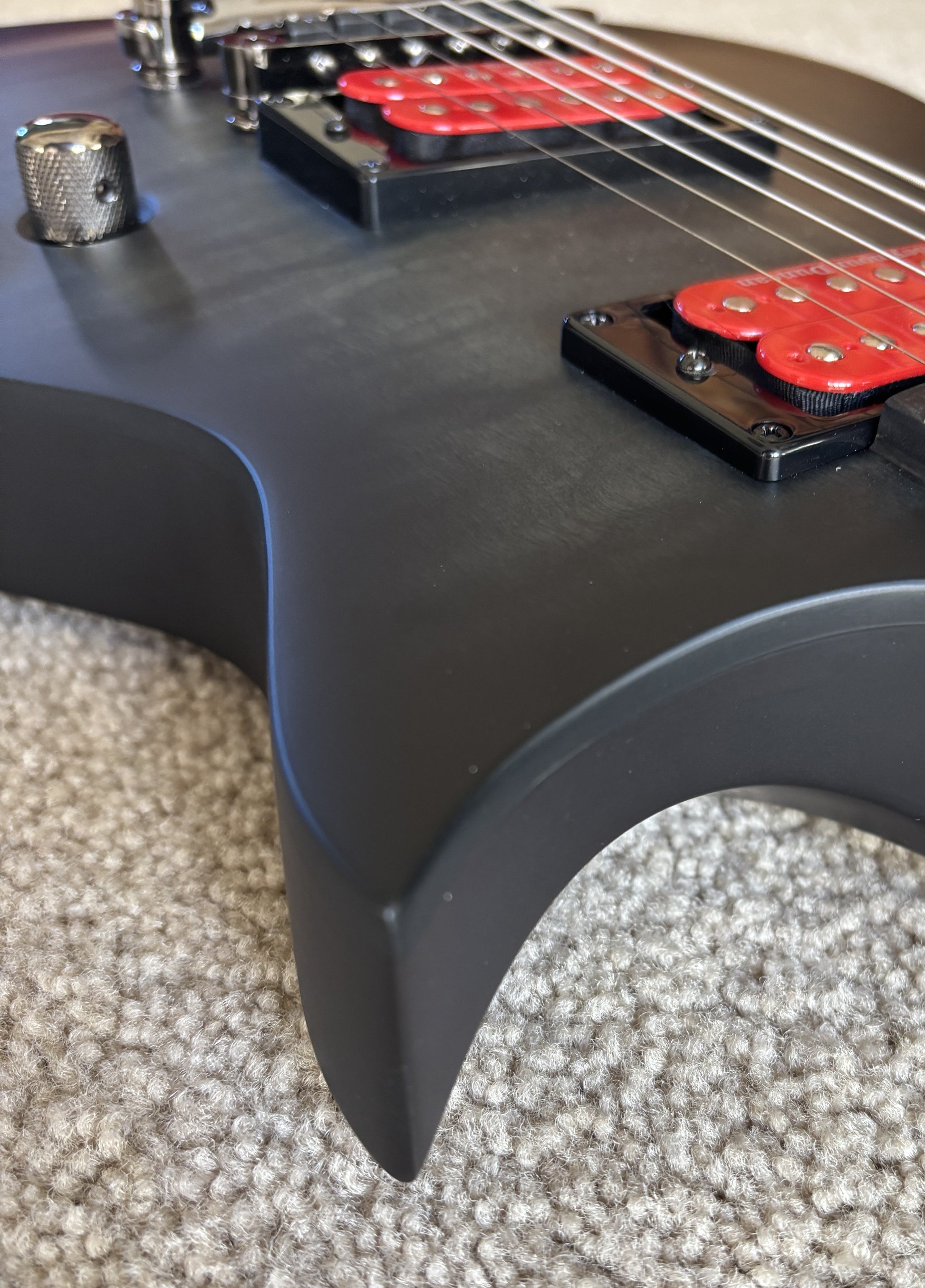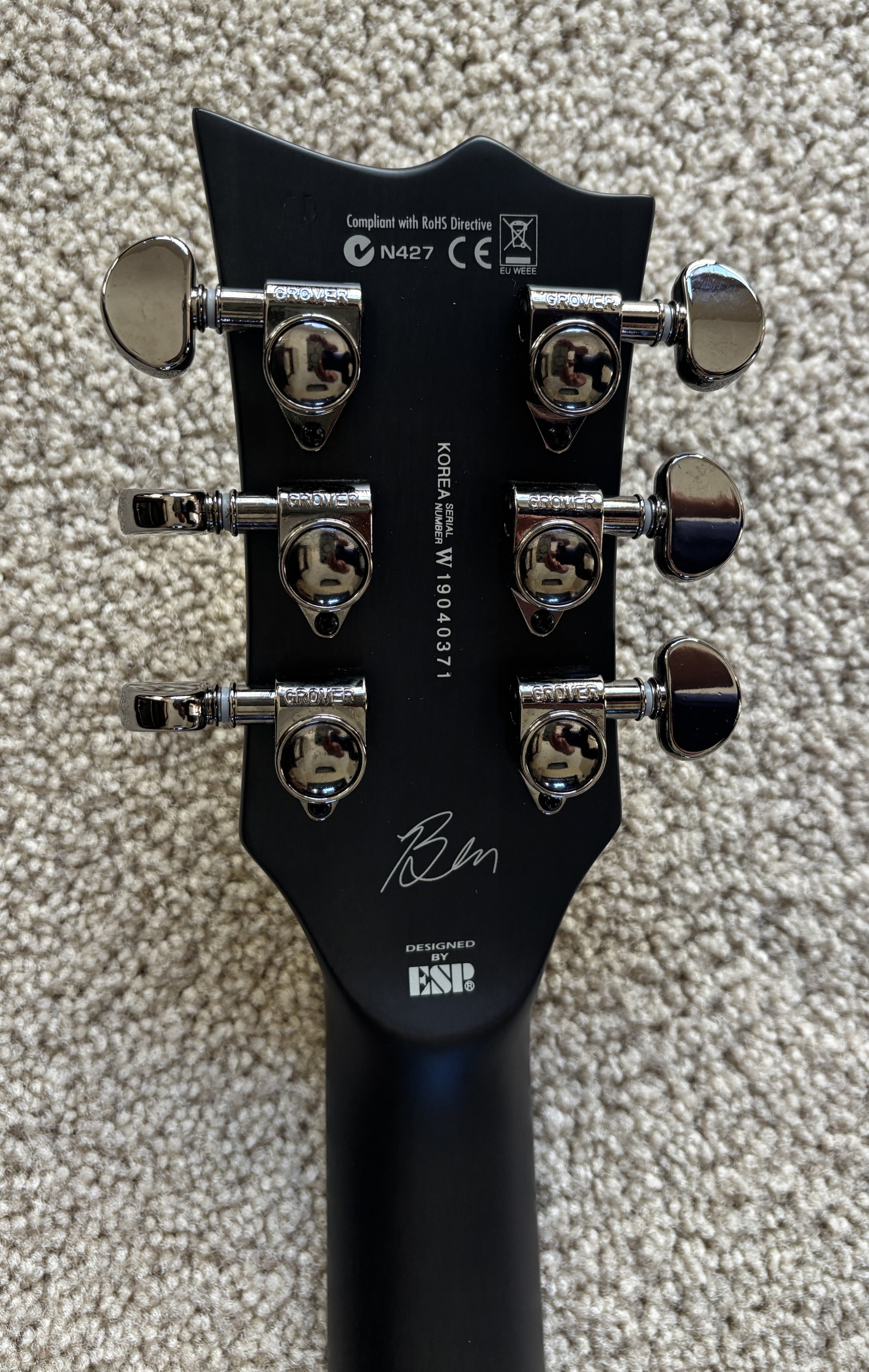 This EXCELLENT guitar went from ESP LTD to their authorized refurbisher MIRC, where it received a full multi-point inspection and expert setup - it is ready to play! No visible repairs were necessary, and no modifications were made except the back of the headstock was stamped USED. This guitar has just a couple very small marks - one near the jack plate on the front edge, and a rub mark on the back - see the pictures for more detail.