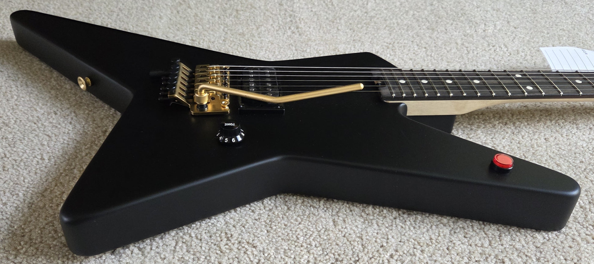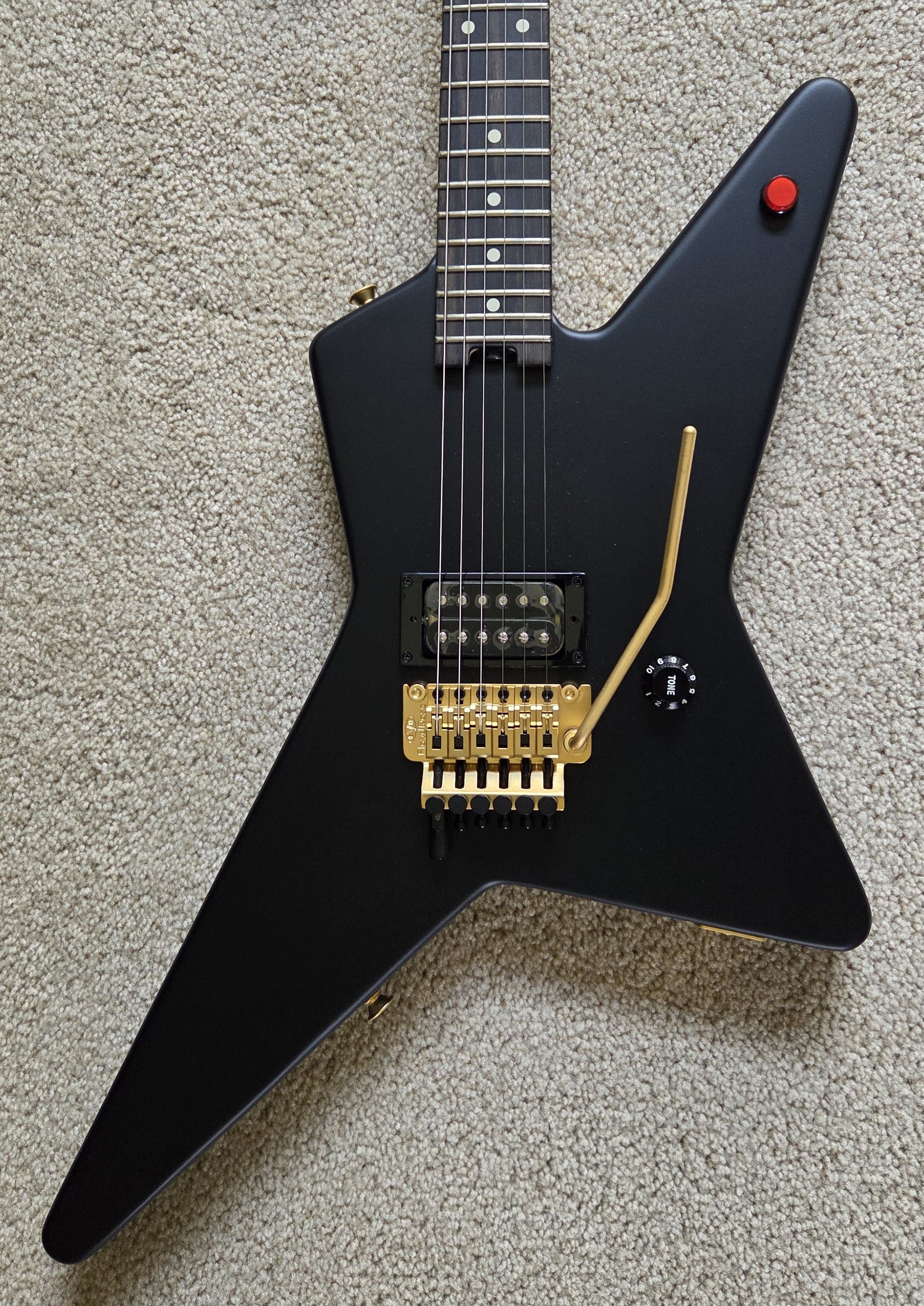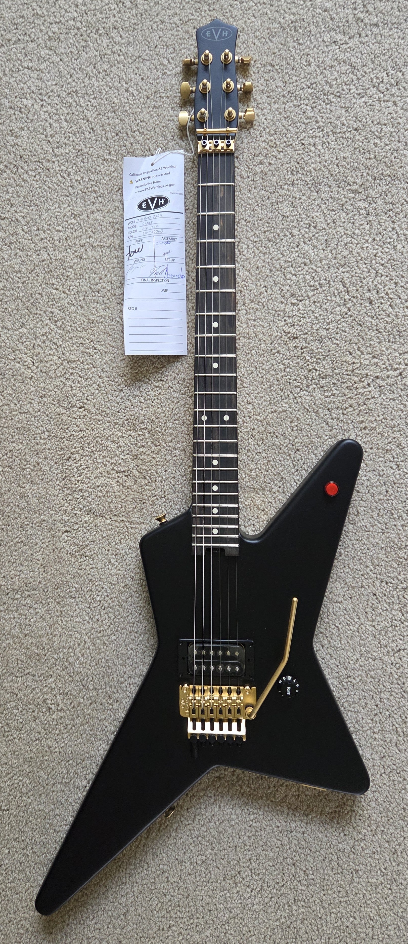The limited edition EVH Star is a modern interpretation of (although not quite a re-creation of) one of the guitars that Eddie Van Halen used to attain the early Van Halen sound. Experience resonant tone, sustain, and crunch thanks to a basswood body and single EVH Wolfgang humbucker. Fire off cool stutter effects with the momentary kill switch. Outfitted with a comfortable maple neck and fast-playing ebony compound-radius fingerboard, blasting our pummeling riffs or lightning licks has never been easier. Beyond that, a top-mounted Floyd Rose tremolo with D Tuna yields massive sustain, also allowing you to dive bomb and shift to a Drop D tuning on the fly. The EVH Ltd Ed Star is teeming with classic Van Halen vibe, but most importantly, it provides killer tone and lightning-fast playability.