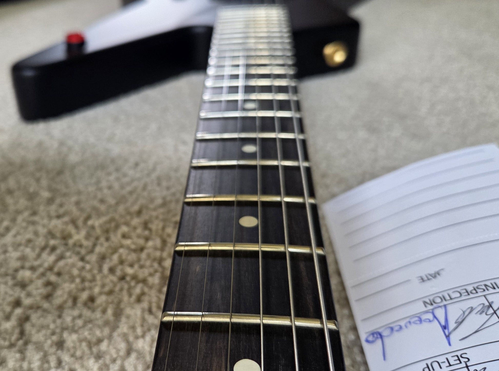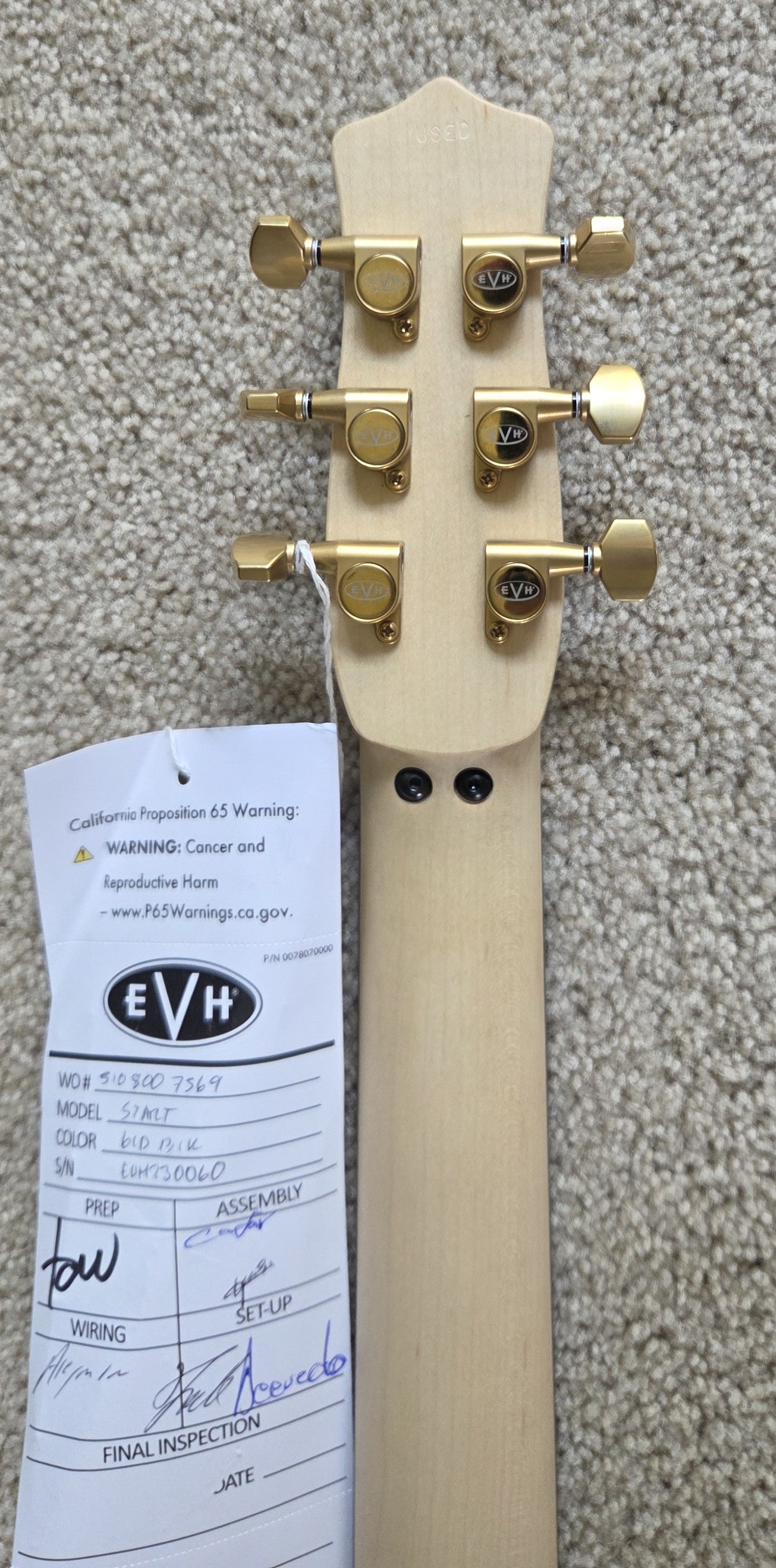 This LIKE NEW guitar went from EVH to their authorized refurbisher MIRC, where it received a full multi-point inspection and expert setup - it is ready to play! No visible repairs were necessary, and no modifications were made, except the back of the headstock was stamped USED.