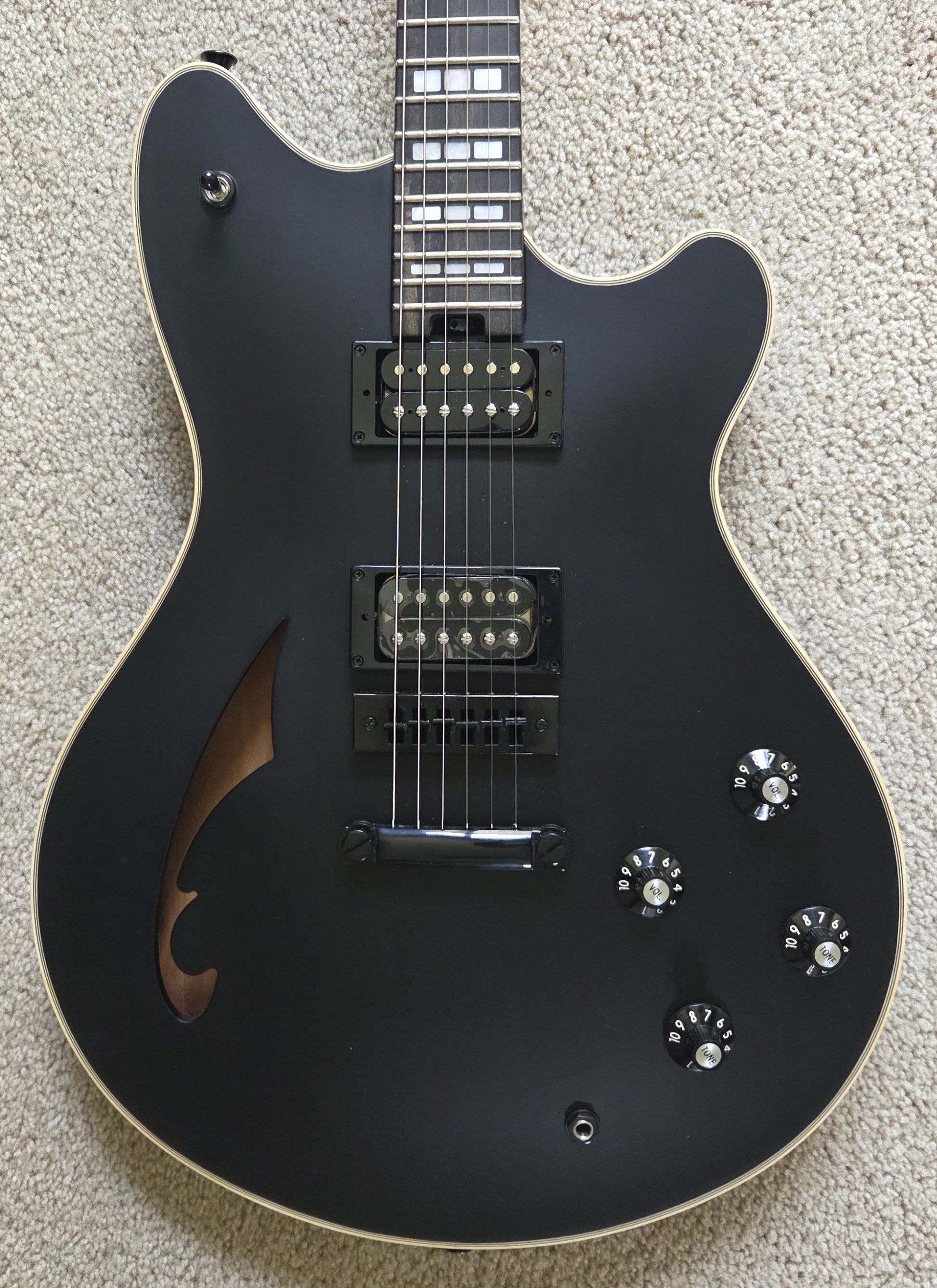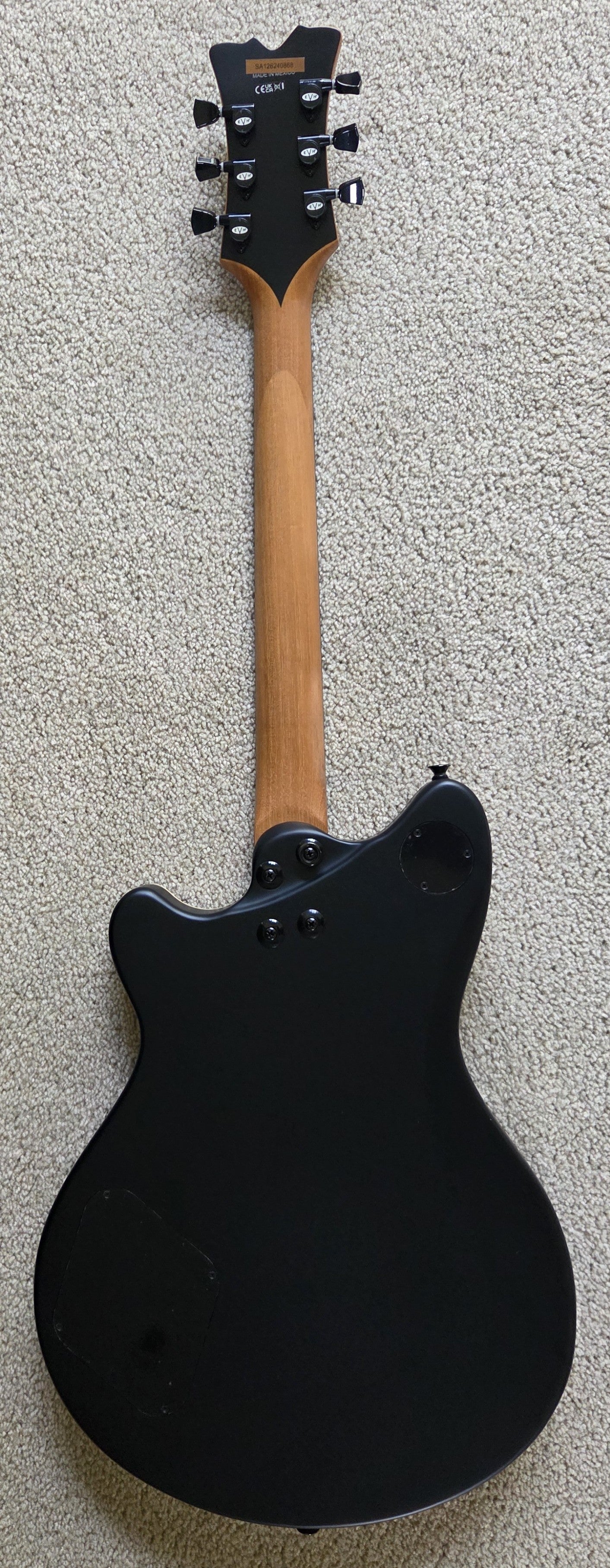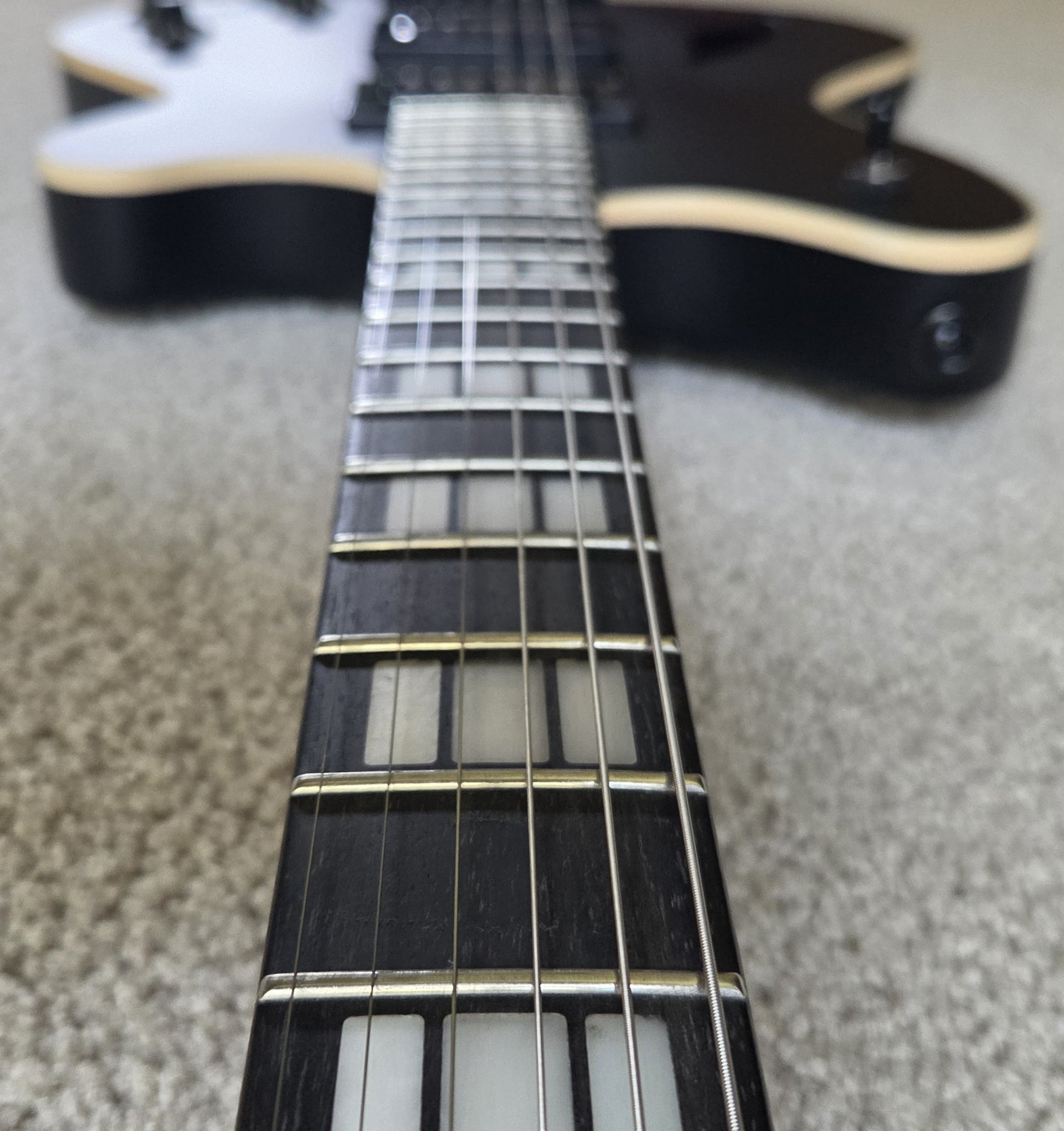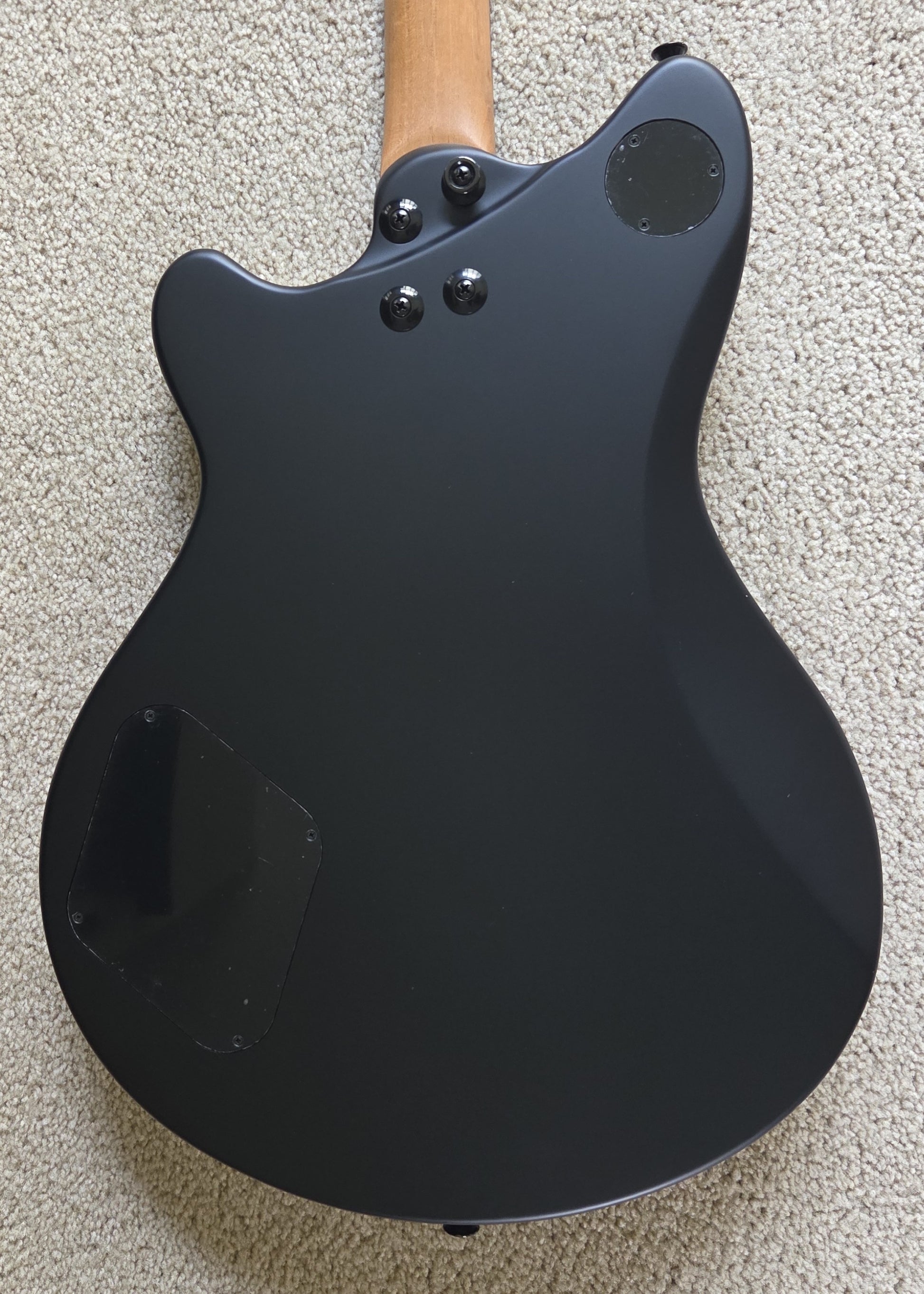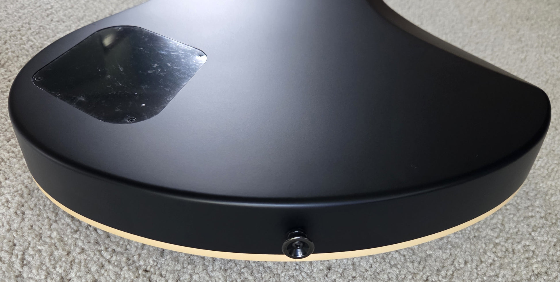 This EXCELLENT guitar went from EVH to their authorized refurbisher MIRC, where it received a full multi-point inspection and expert setup - it is ready to play! There is one small area near the sound hole where the Black finish is slightly shinier than the rest of the guitar. Otherwise, no visible repairs were necessary, and no modifications were made except the original serial number was replaced/covered with a new one.