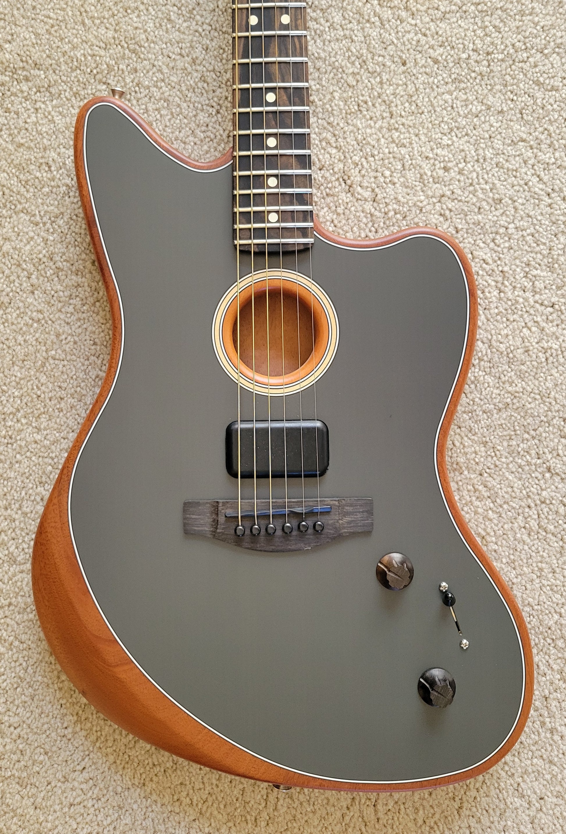 Fender American Acoustasonic Jazzmaster Electric Guitar, Tungsten, Gig Bag
