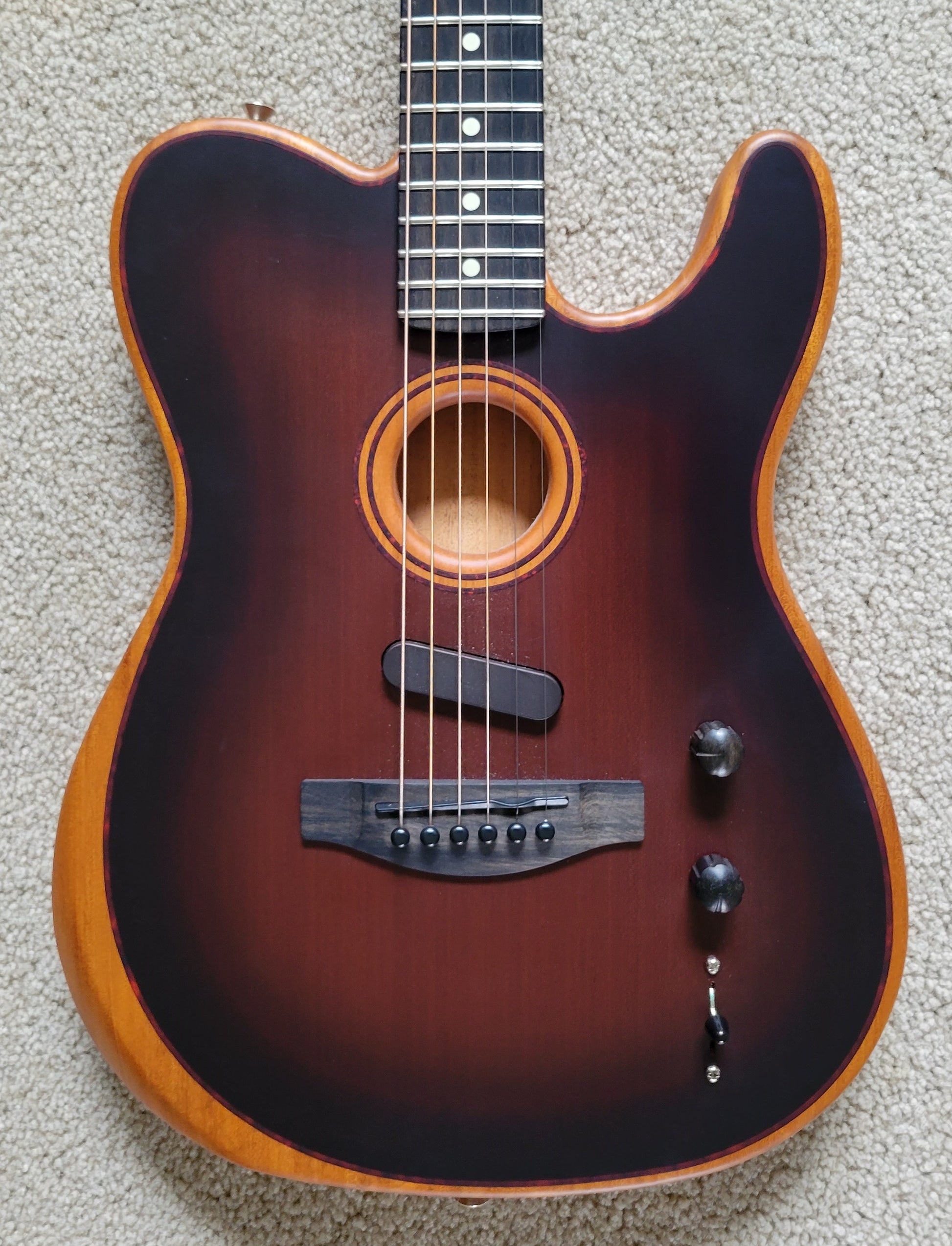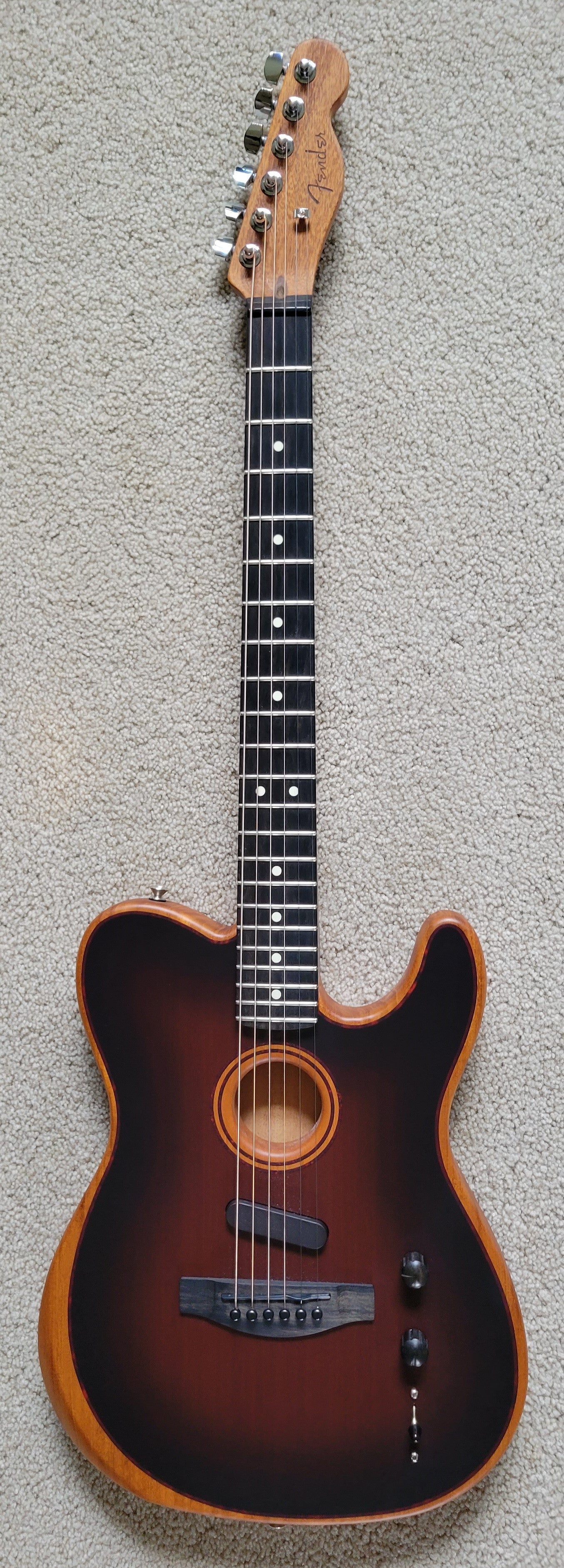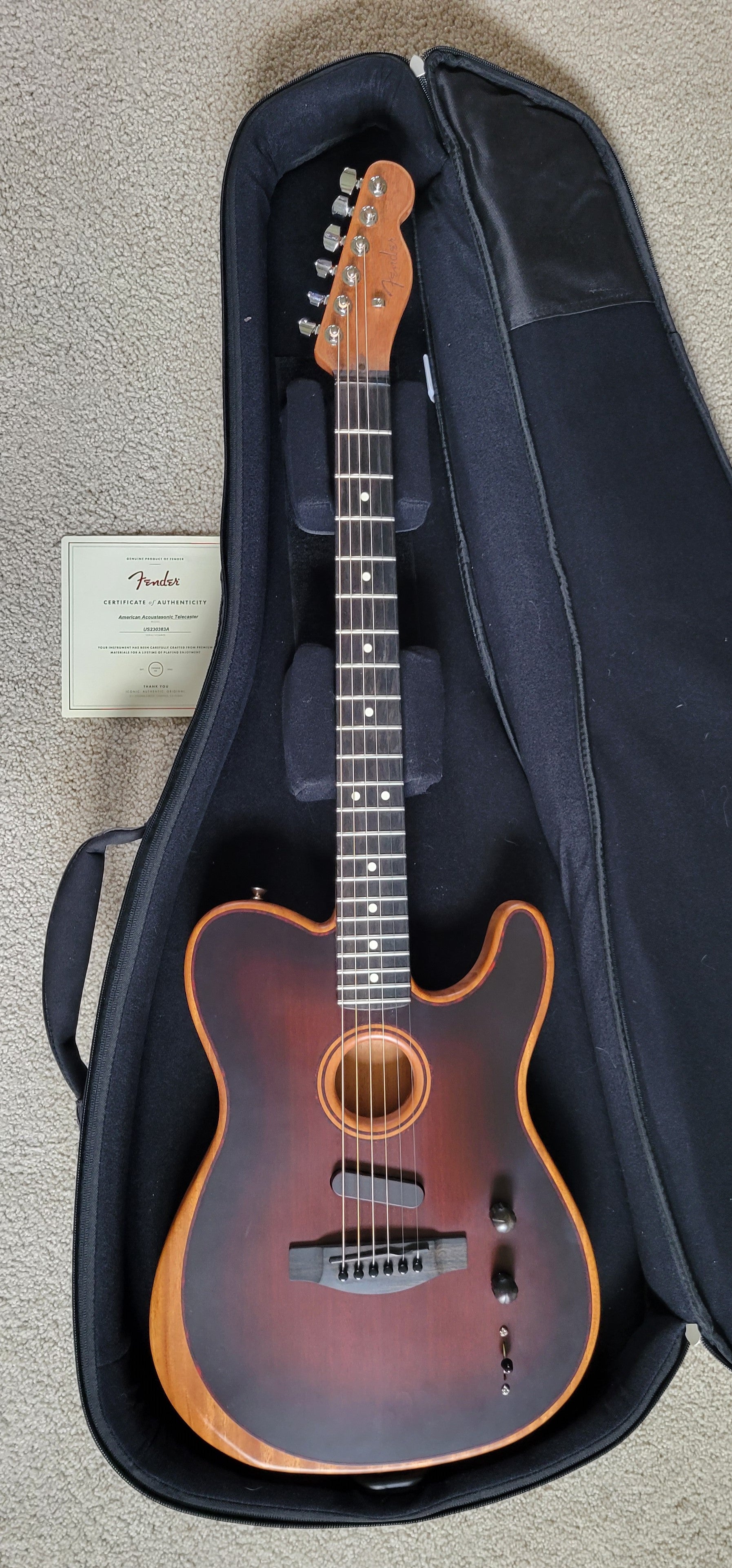 Fender American Acoustasonic Telecaster Guitar All Mahogany Bourbon Burst, Fender Gig Bag