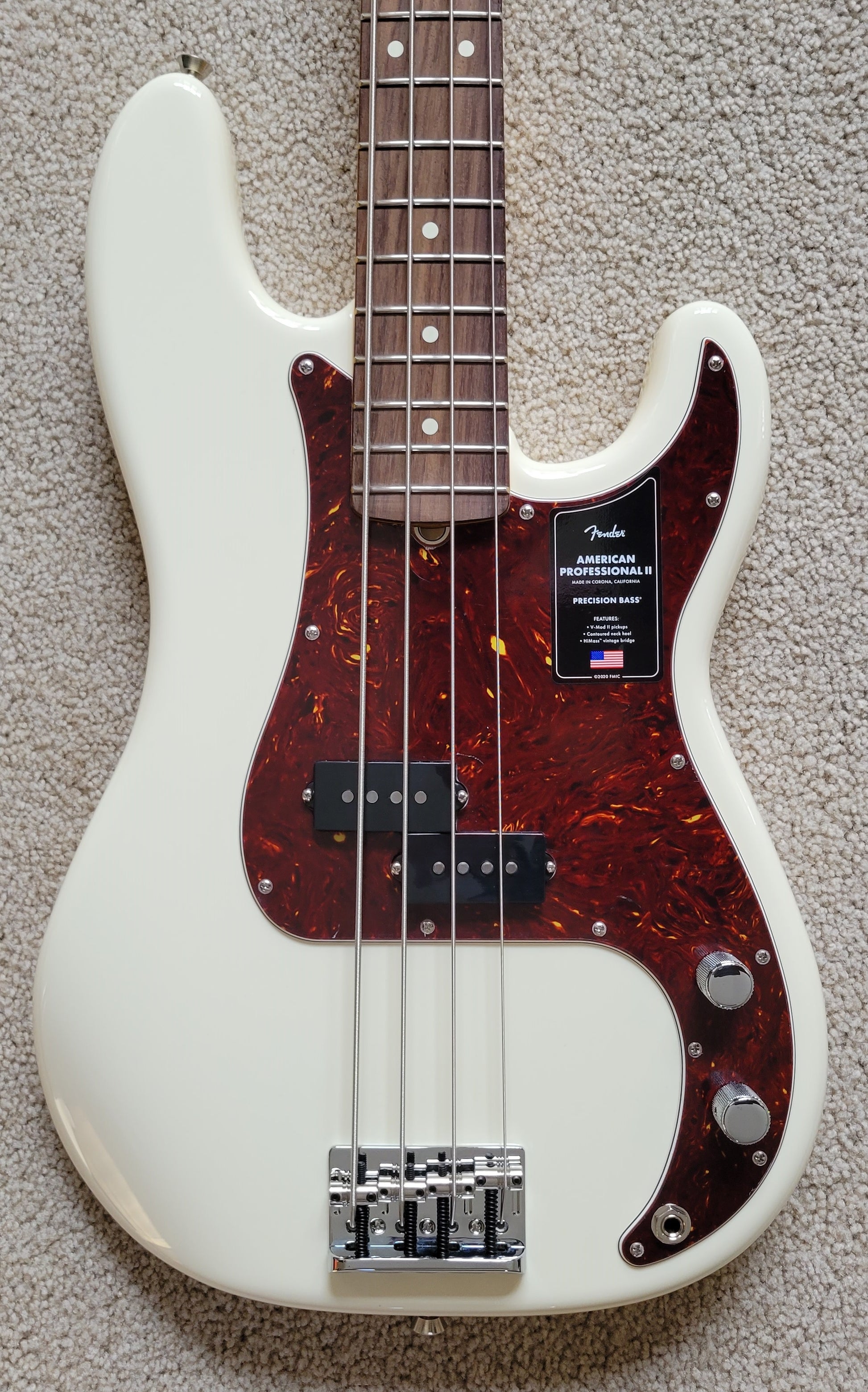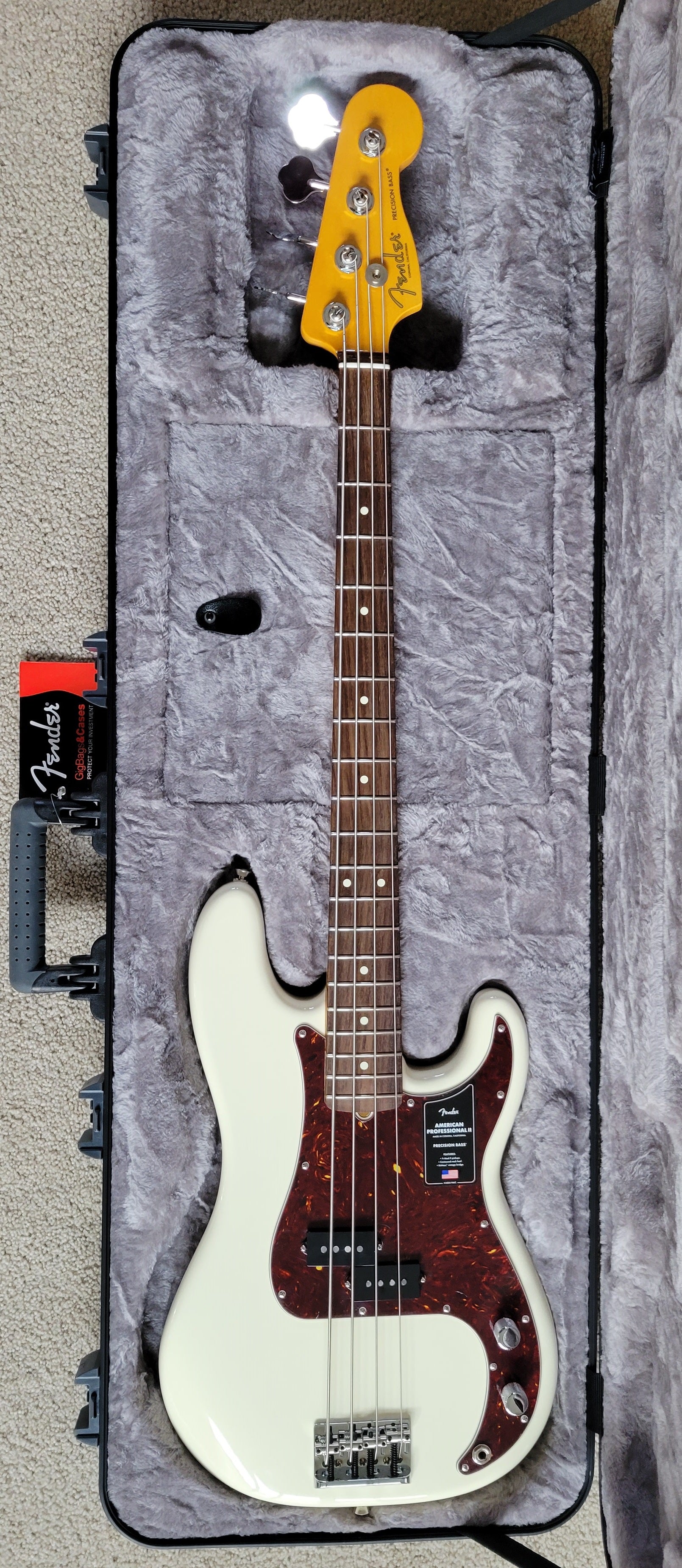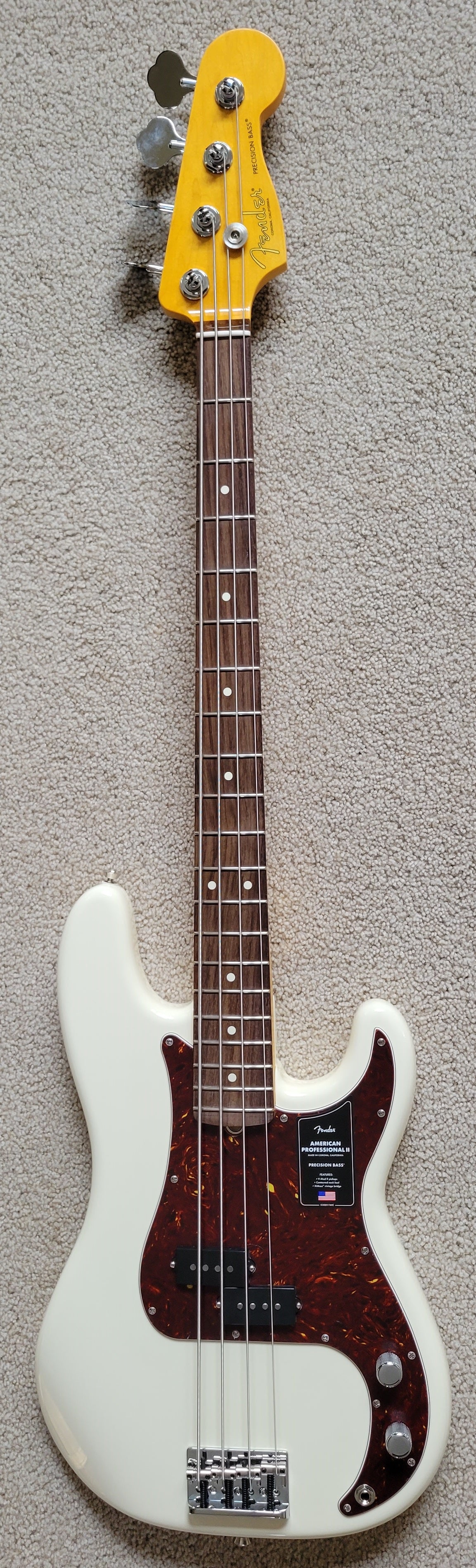 Fender American Professional II Precision Bass Guitar, Olympic White, Deluxe Molded Hardshell Case