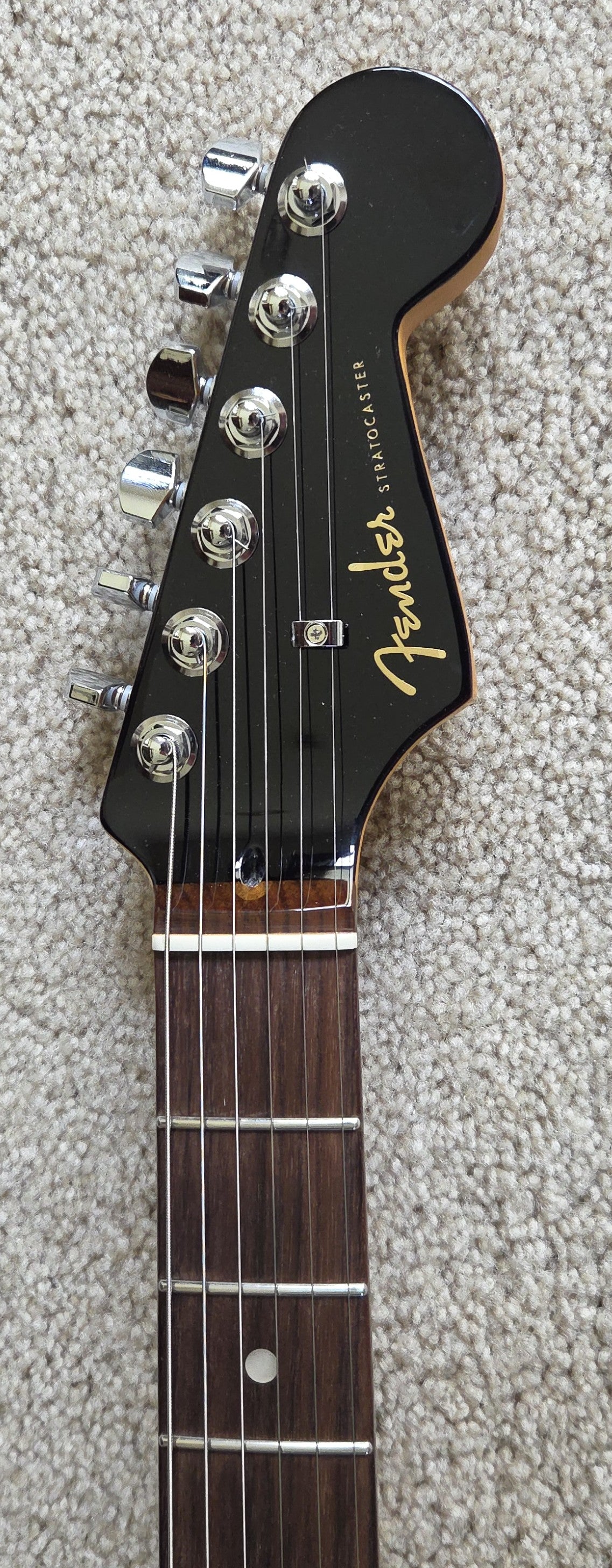 The American Ultra Luxe Stratocaster features a unique Augmented "D" neck profile with Ultra rolled fingerboard edges for endless playing comfort and a tapered neck heel that allows easy access to the highest register. A speedy 10"-14" compound-radius fingerboard with 22 stainless steel medium-jumbo frets means effortless and accurate soloing, while the Ultra Noiseless Vintage pickups and advanced wiring options provide endless tonal possibilities - without hum. Sculpted rear body contours are as beautiful as they are functional, supremely comfortable in any playing position. Other features include sealed locking tuning machines, chrome hardware and TUSQ nut.
