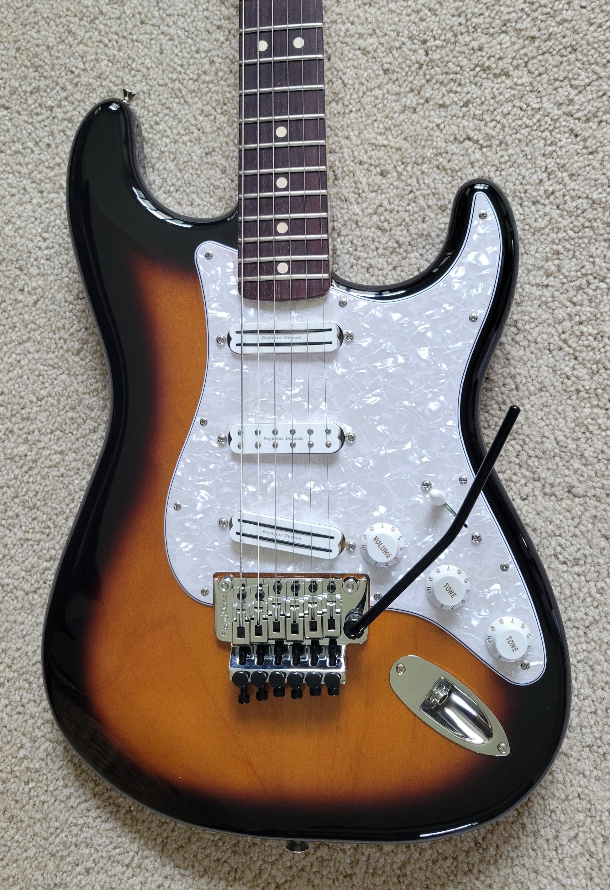 - Compound-radius (9.5"-14") rosewood fingerboard with 21 medium jumbo frets and Floyd Rose R3 nut