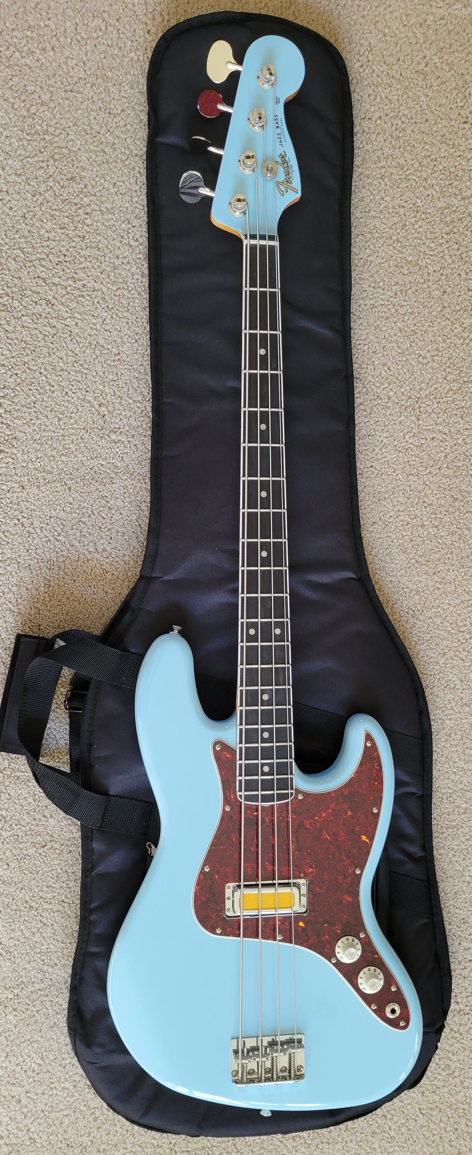 Fender Gold Foil Jazz Bass Electric Guitar, Sonic Blue, New Gig Bag