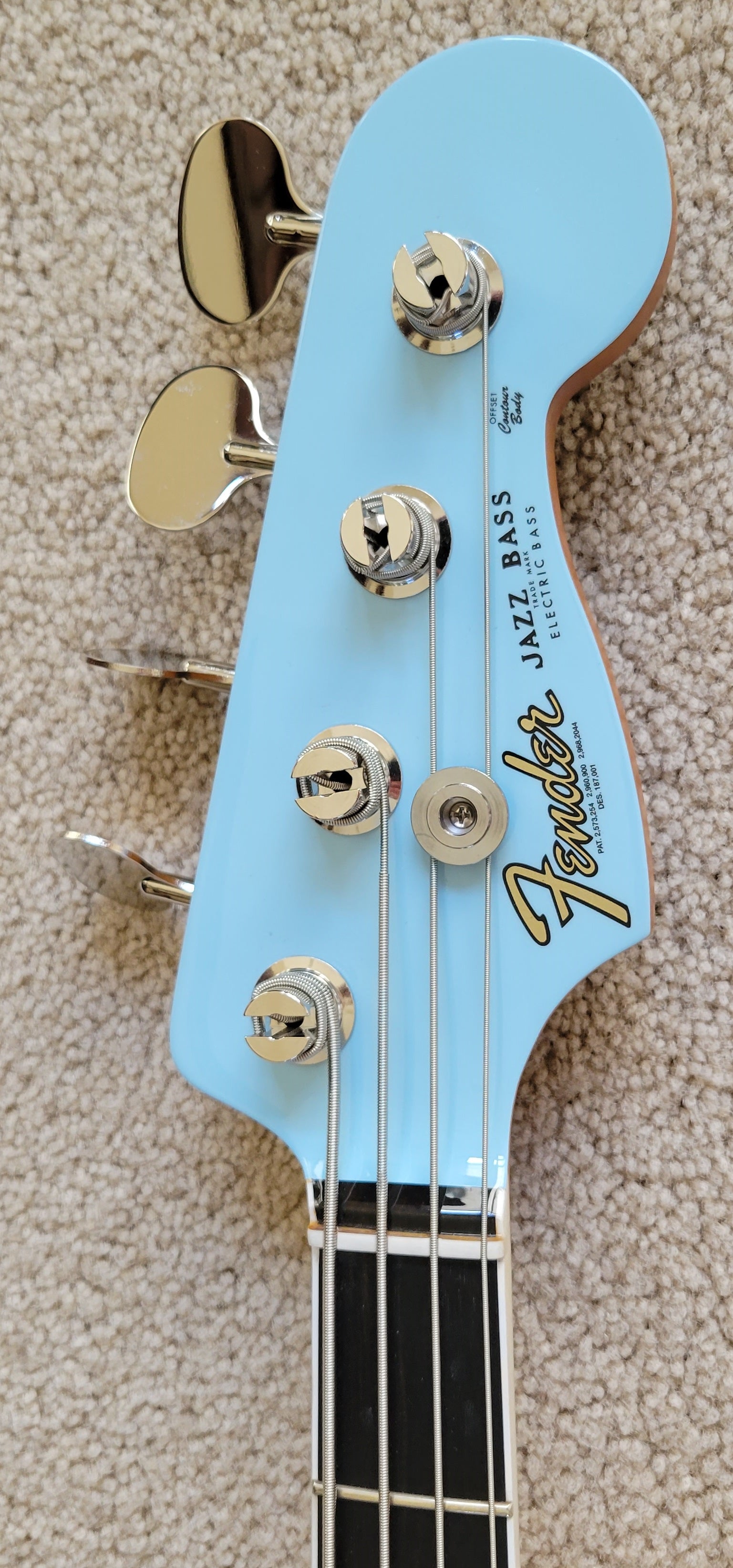 The Gold Foil Jazz Bass features an alder body, mid '60s C"-shaped maple neck with bound ebony fingerboard and a Gold Foil single-coil for full, punchy tone that complements the exceptional good looks. Other features include a matching painted headstock, ‘lollipop’ tuning machines and 20 Medium Jumbo frets.