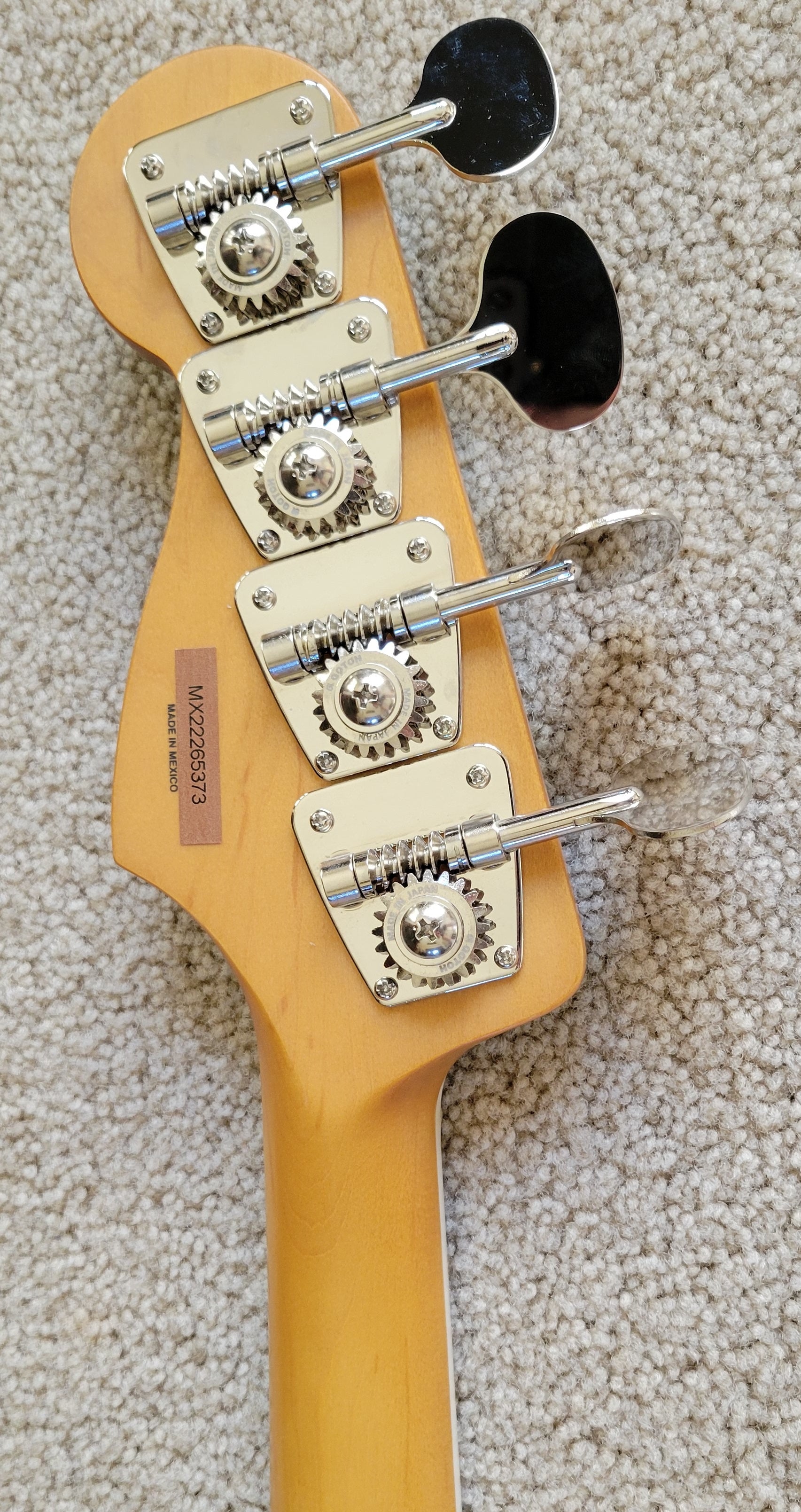 For instantly recognizable vintage feel and tone, this J-Bass features a 4-saddle bridge with threaded saddles and vintage-style “lollipop” tuners
