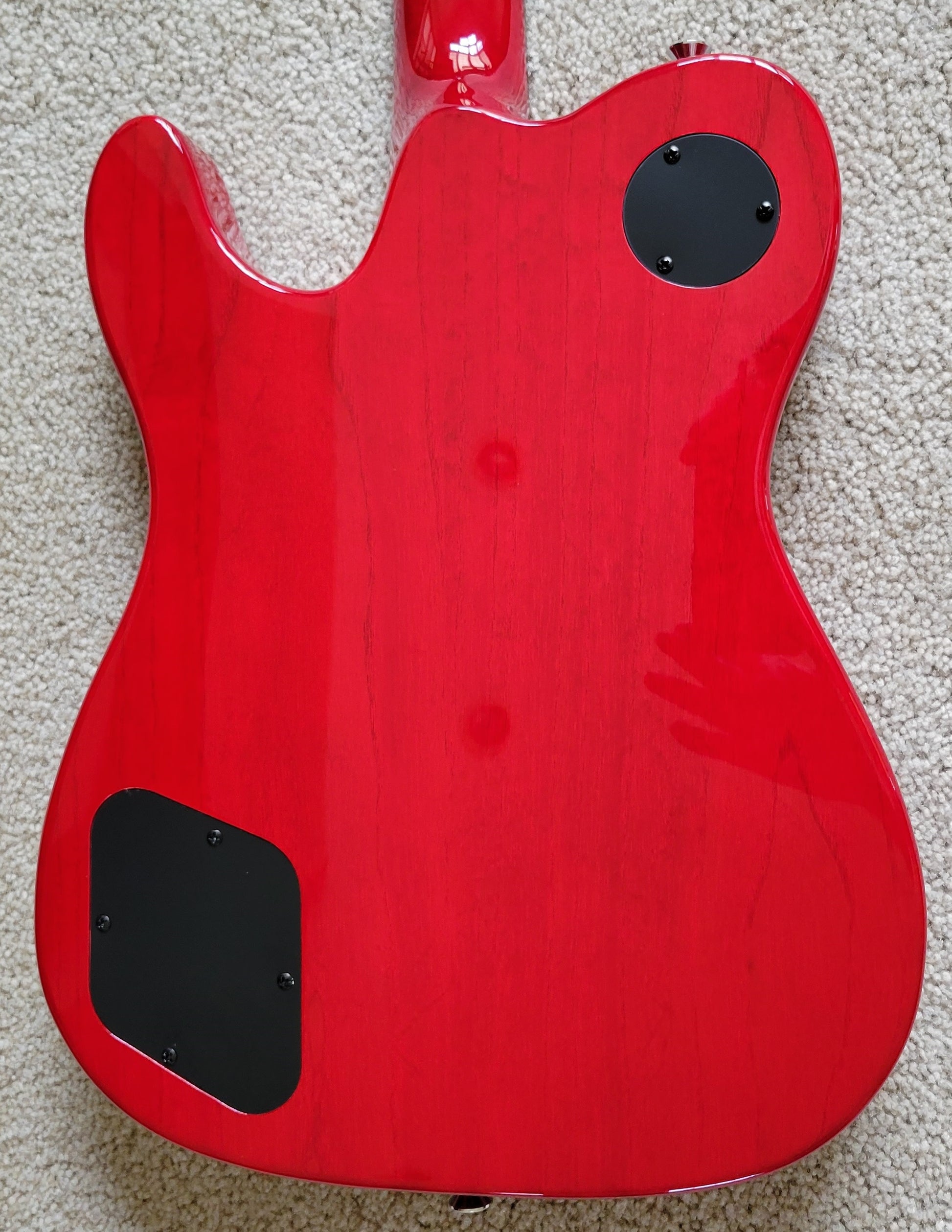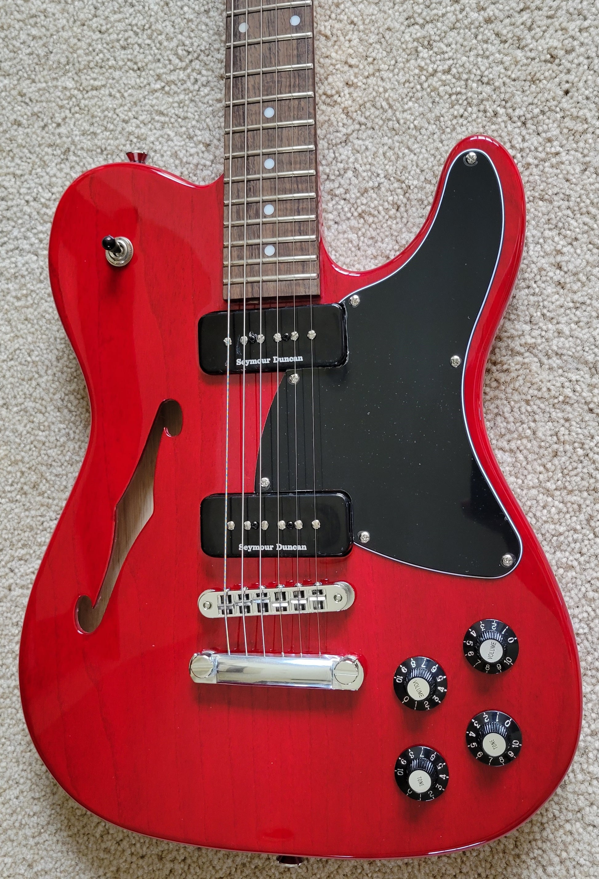 This is the Awesome Fender Jim Adkins JA-90 Telecaster Thinline Electric Guitar with the Crimson Red Transparent finish