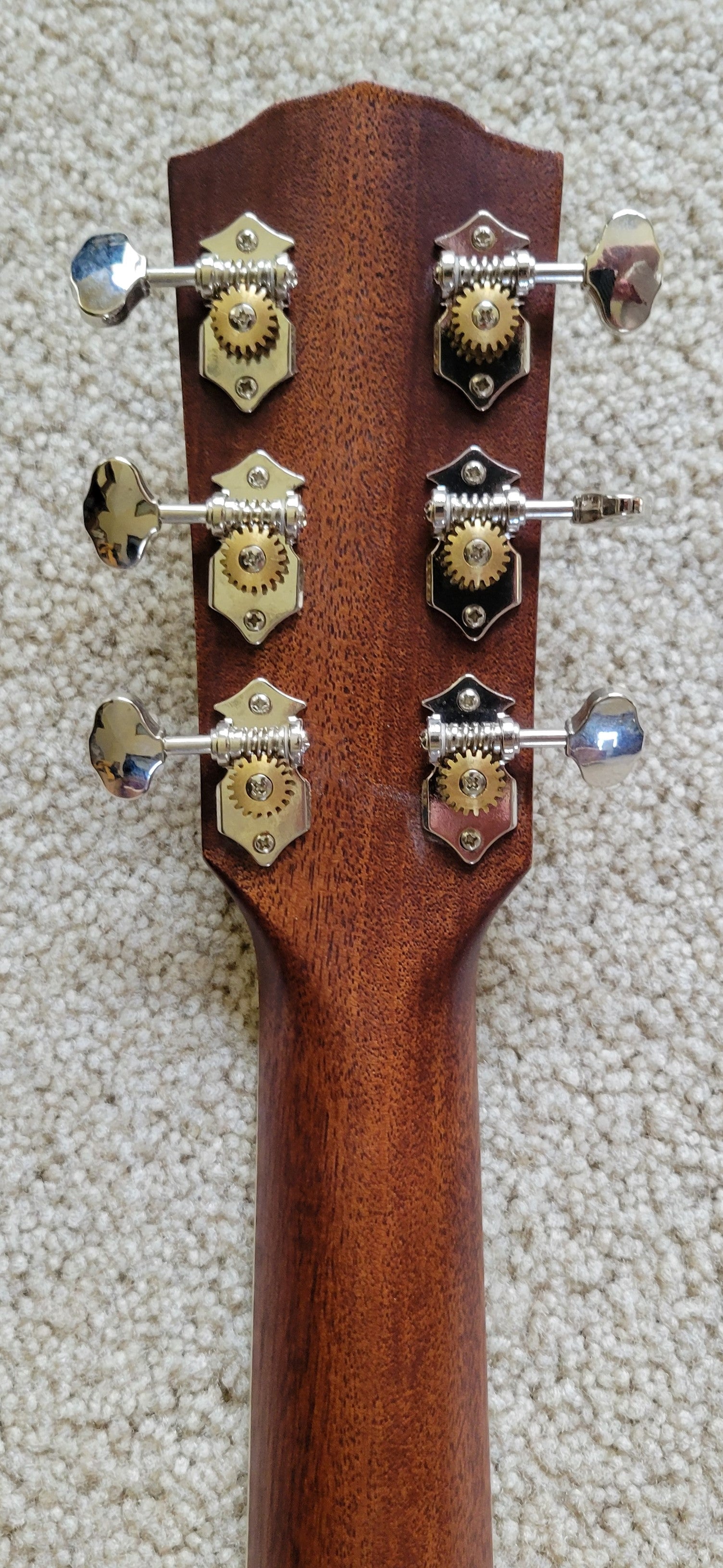 Using solid mahogany back and sides with a solid open-pore mahogany top, we created this guitar to be the perfect platform for dynamic performance and self-expression. This all-solid construction contributes to a mature voice, with a body that vibrates freely and resonates more naturally.