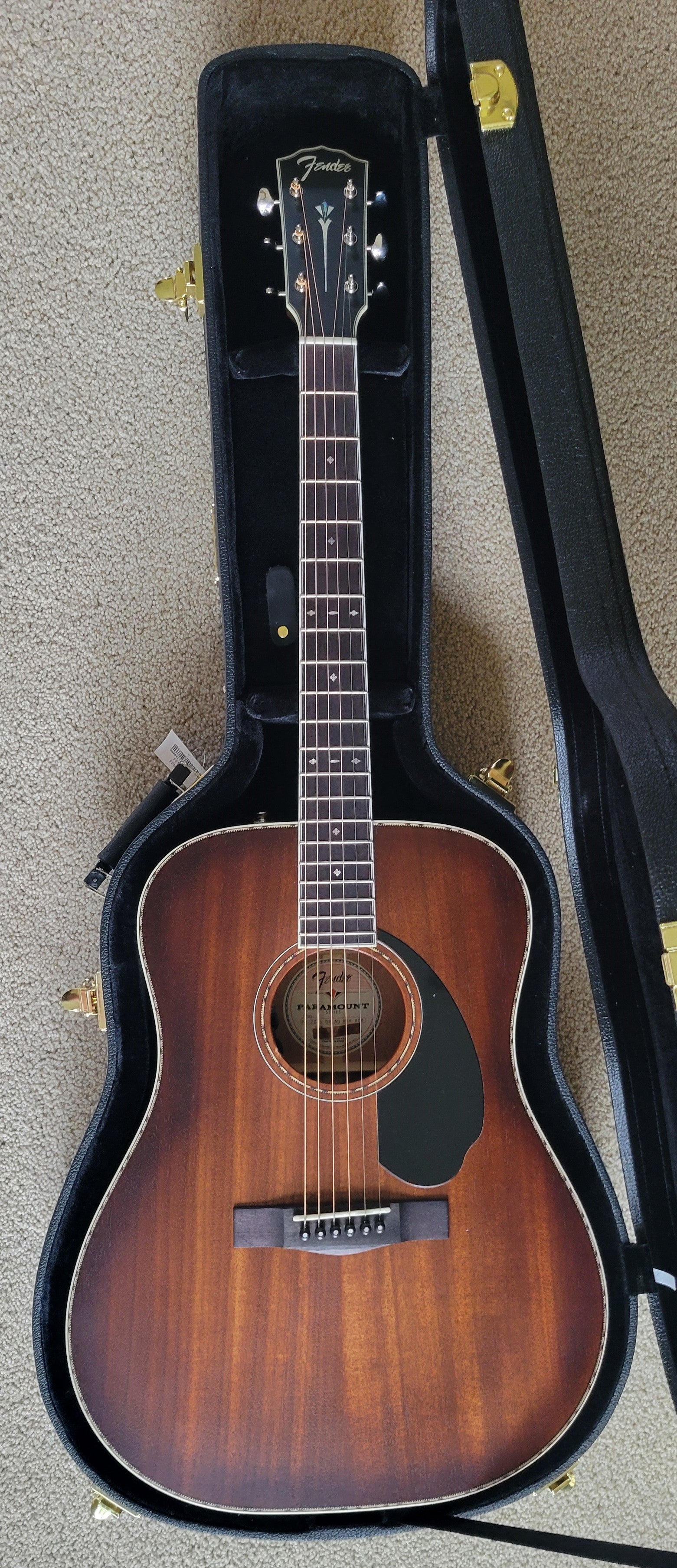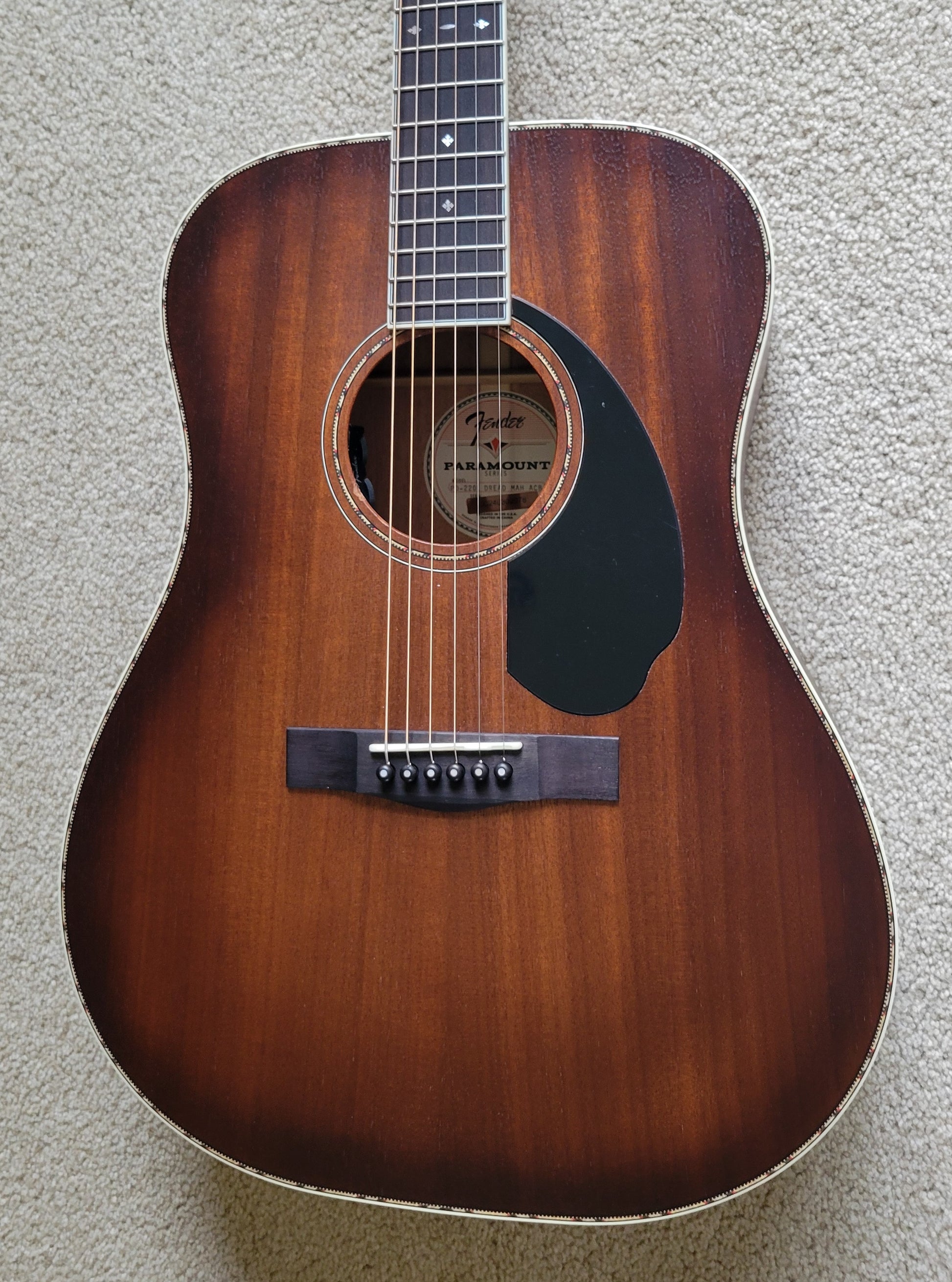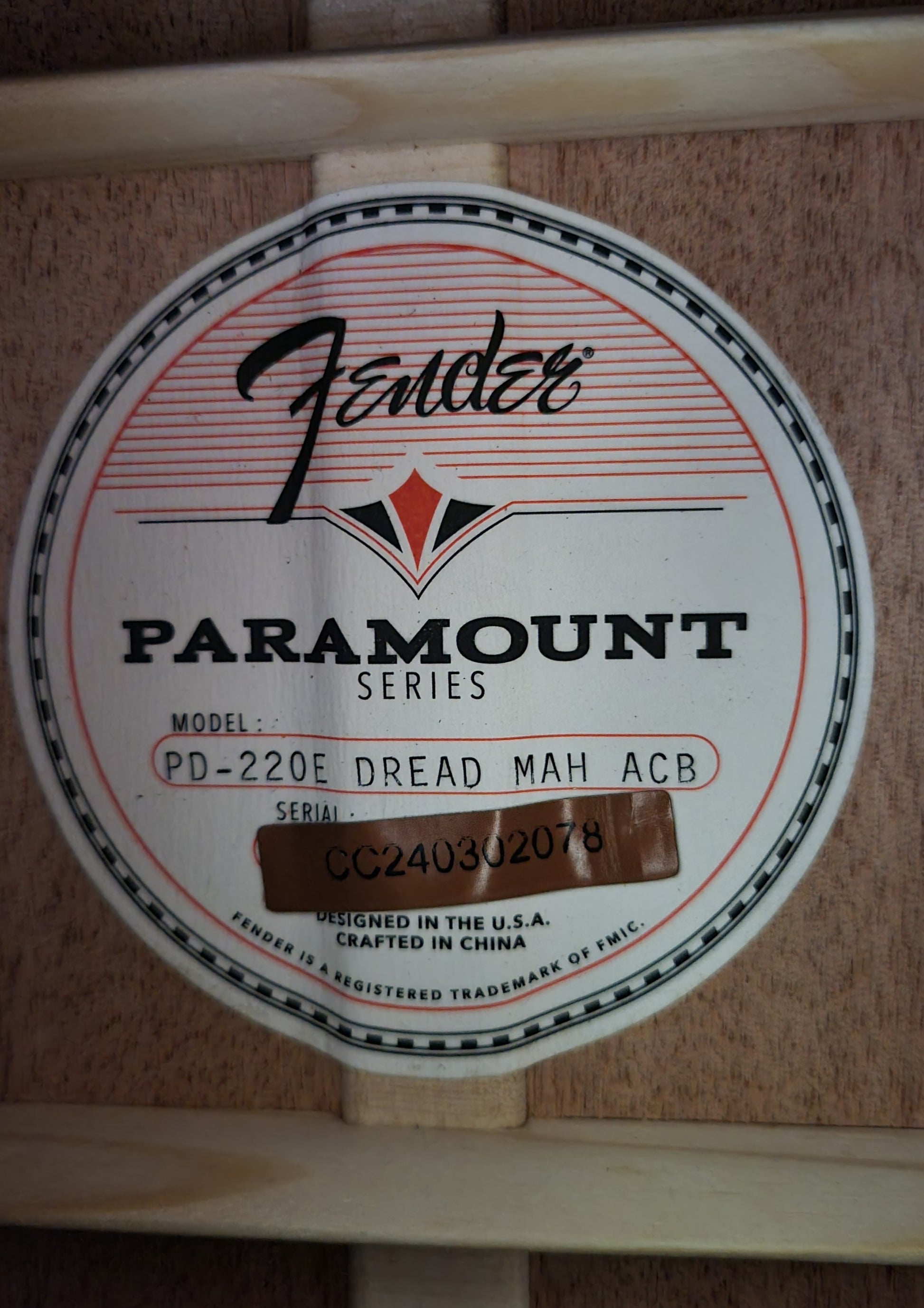 The Paramount PD-220E combines state-of-the-art craftsmanship with vintage-inspired appointments, delivering the best of both worlds. Built with the choice of a solid spruce or solid mahogany top paired with solid mahogany back and sides, the PD-220E features an offset X-bracing pattern that has been carefully refined to optimize resonance and tone. A brand-new Fender and Fishman-designed Presys VT Plus pickup amplifies the full, balanced tone of the PD-220E's dreadnought body shape, while the soundhole-mounted controls preserve the vintage aesthetics. Under the top, a body-sensing pickup enhances the soundboard's vibrations which can then be blended with the undersaddle S-Core pickup.