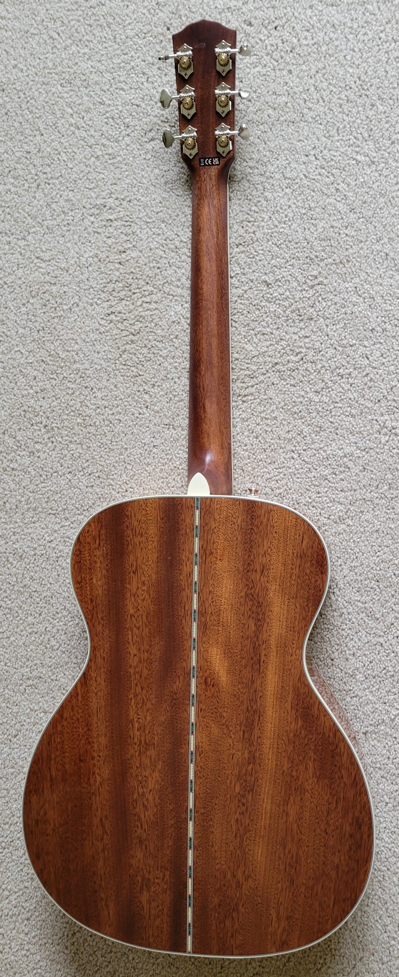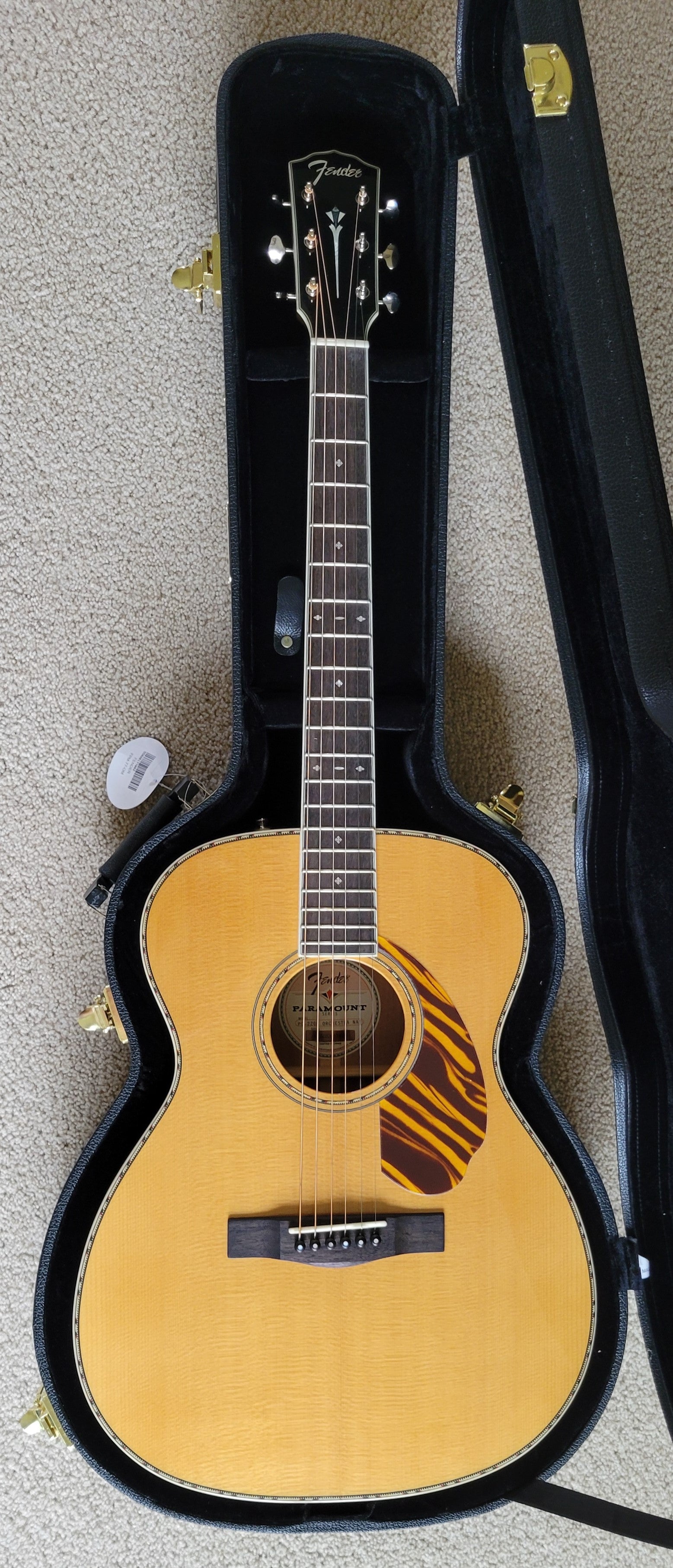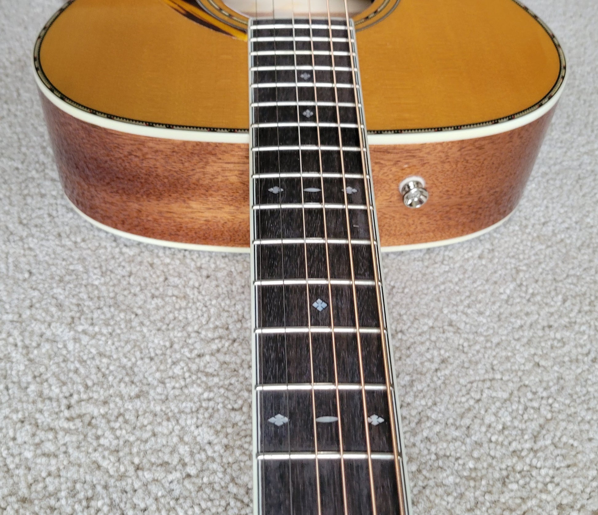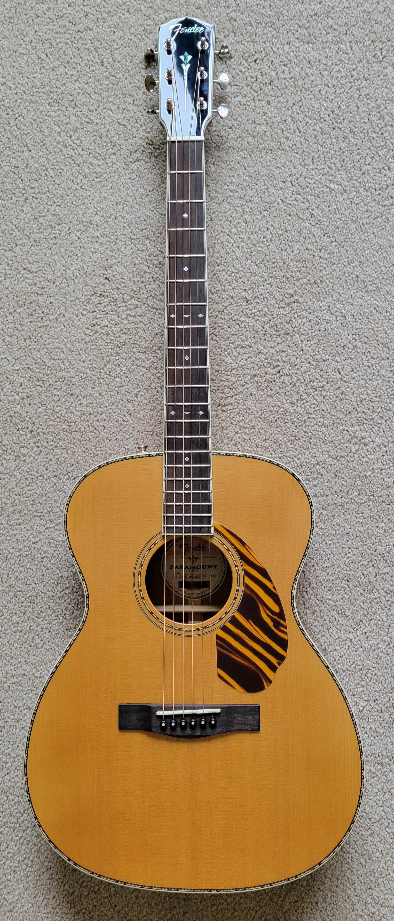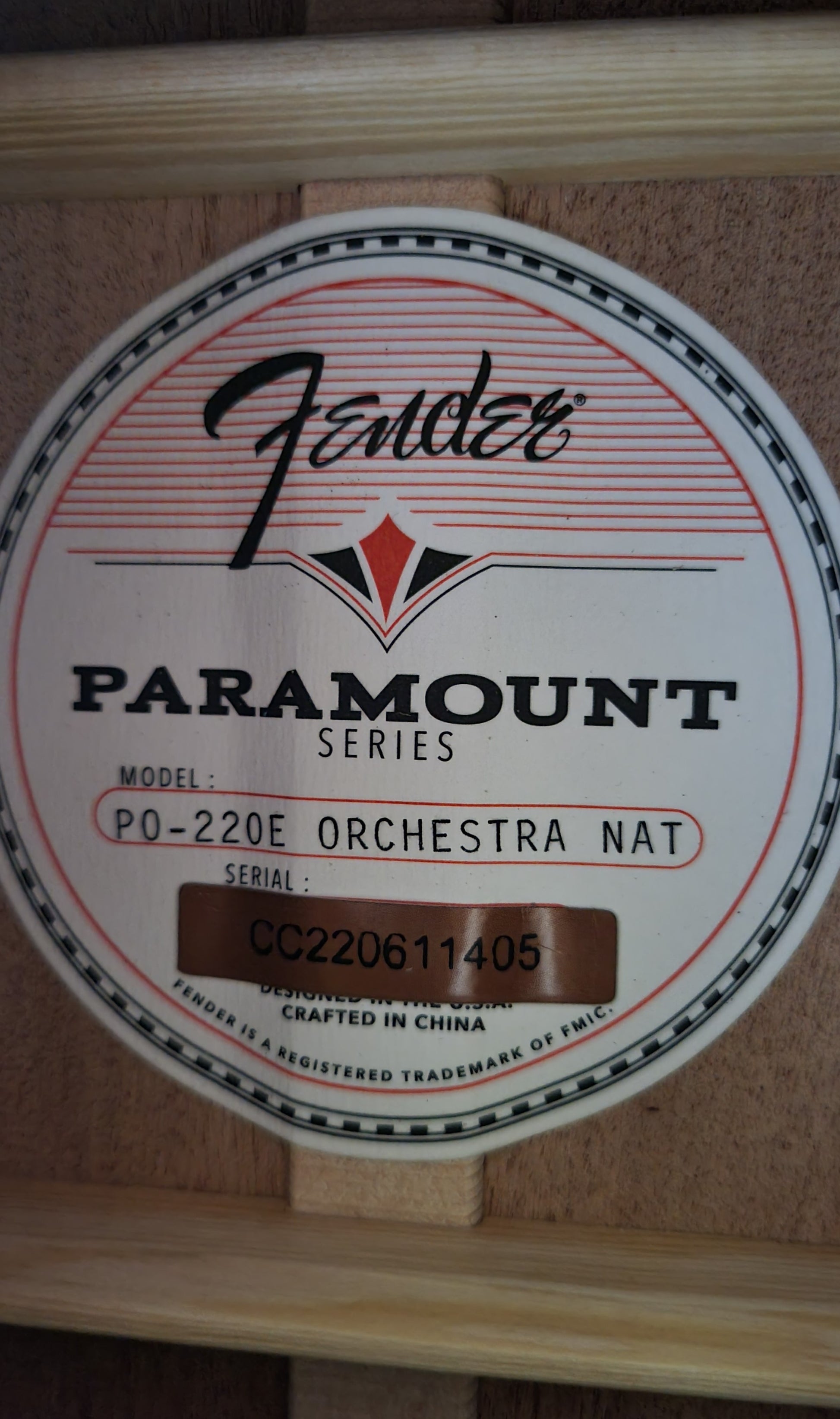 The Paramount PO-220E combines state-of-the-art craftsmanship with vintage-inspired appointments, delivering the best of both worlds. Built with the choice of a solid spruce or solid mahogany top paired with solid mahogany back and sides, the PO-220E features an offset X-bracing pattern that has been carefully refined to optimize resonance and tone. A Fender and Fishman-designed pickup amplifies the warm, mid-focused tone of the PO-220E's newly designed orchestra body shape, while the soundhole-mounted controls preserve the vintage aesthetics. Under the top, a body-sensing pickup enhances the soundboard's vibrations which can then be blended with the undersaddle S-Core pickup.