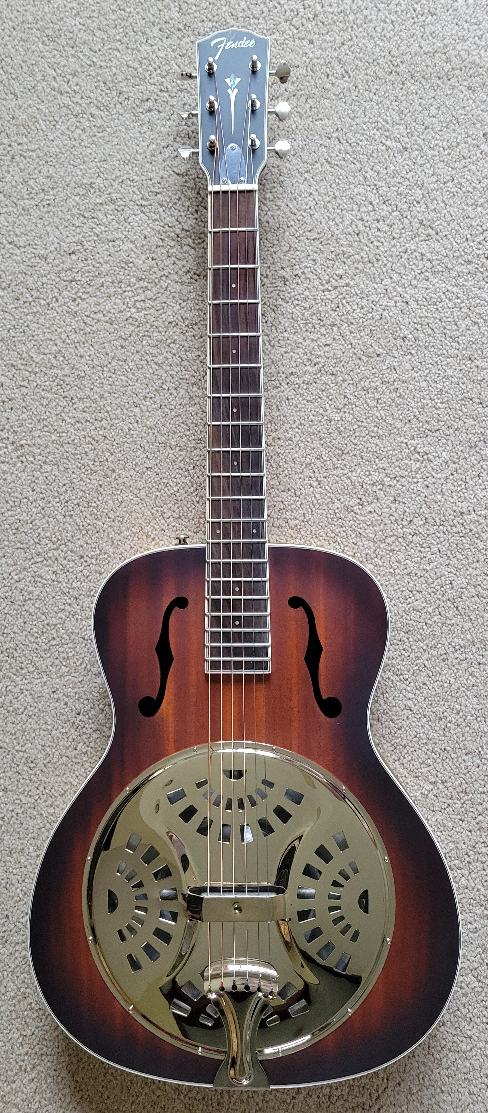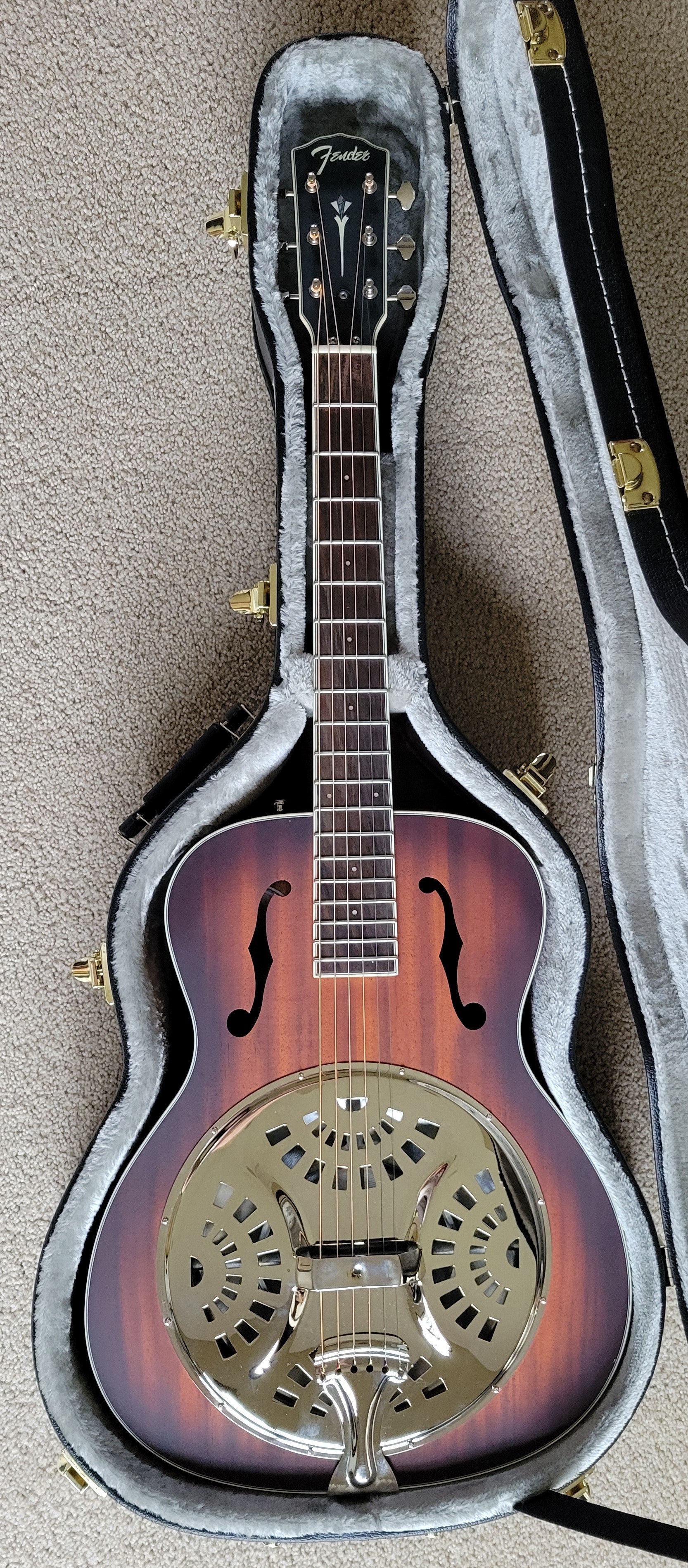 Fender PR-180E Acoustic Electric Resonator Guitar, Aged Cognac Burst, Hard Shell Case