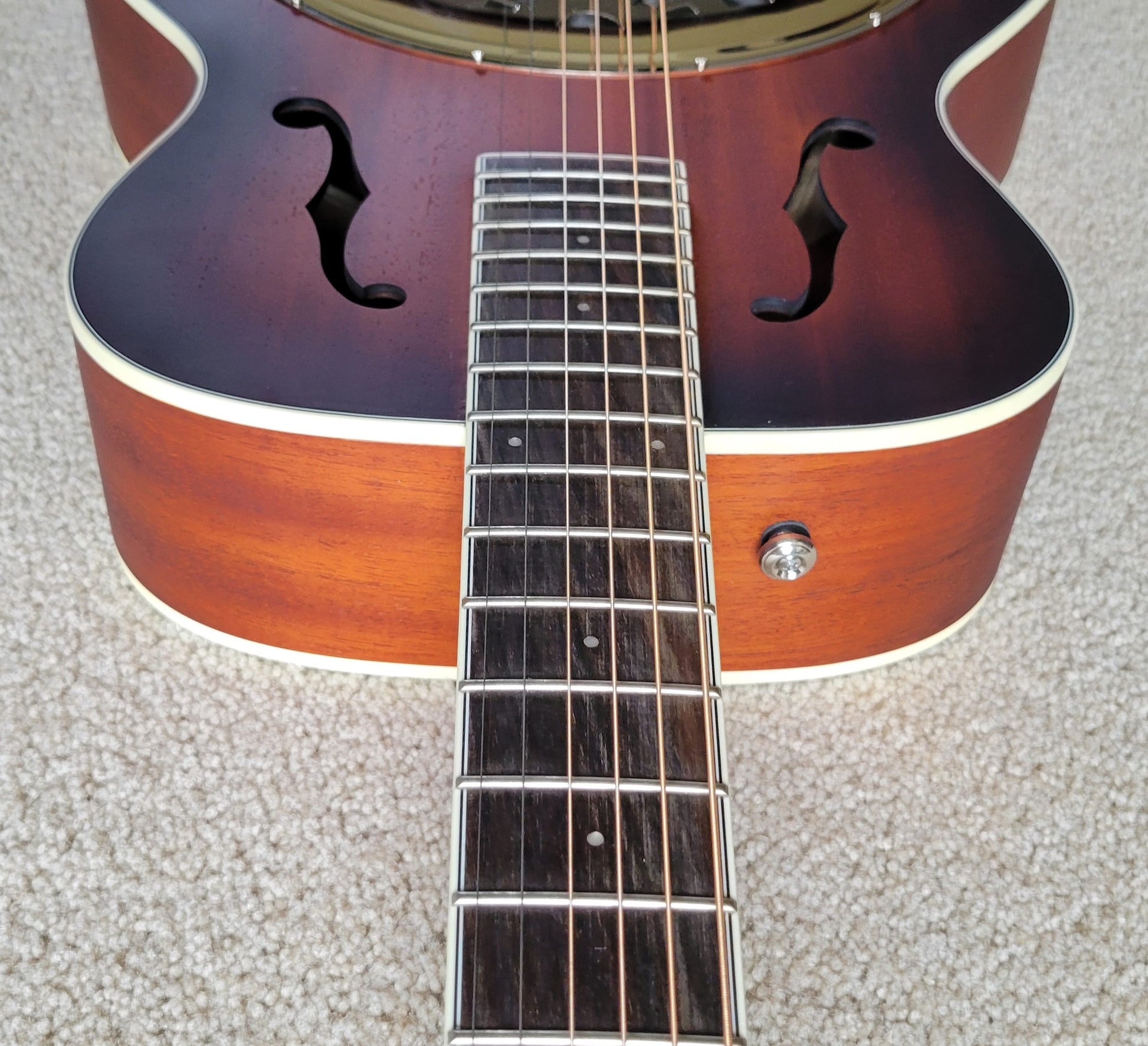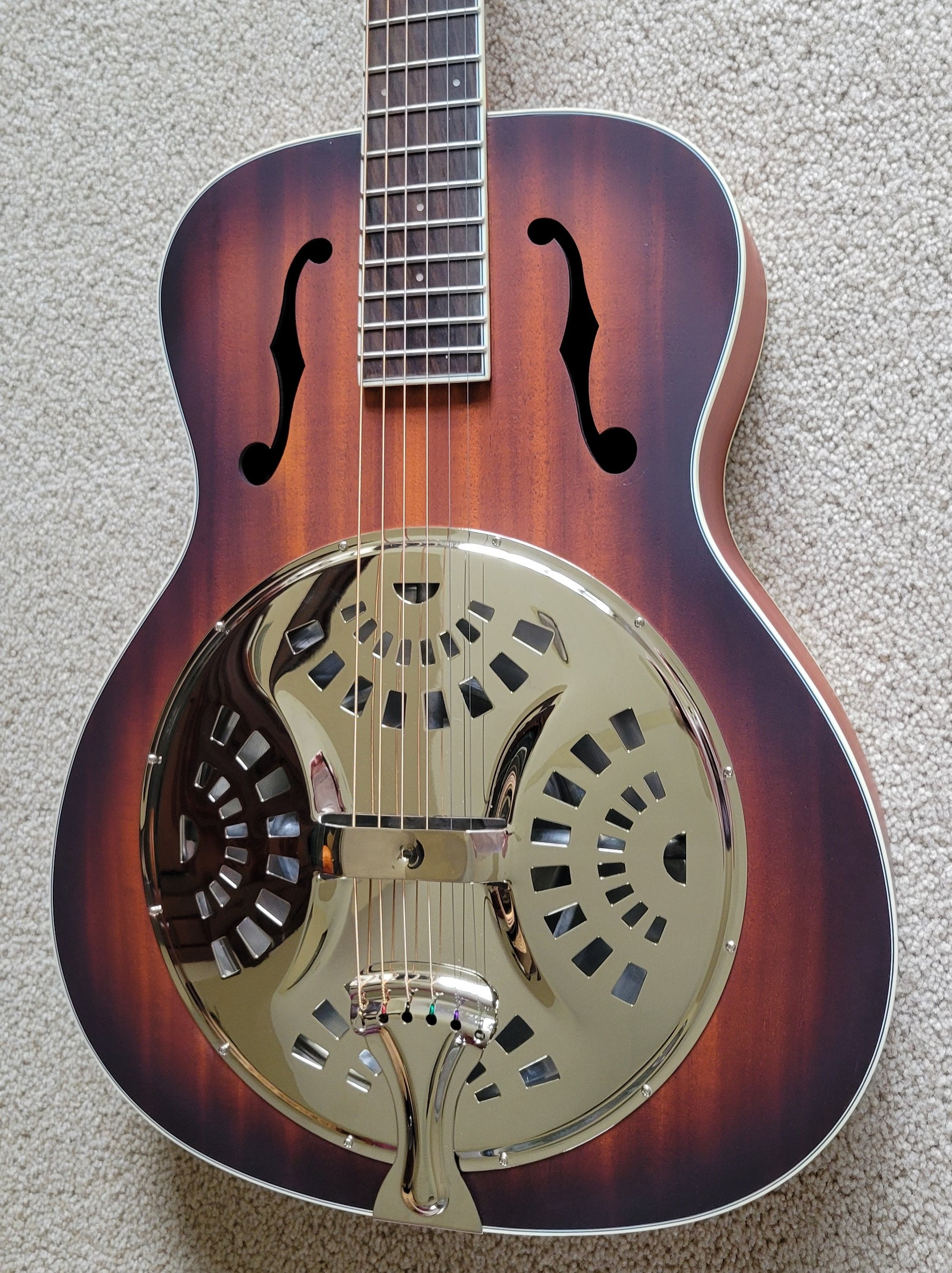 From Delta Blues to lap steel slide, the PR-180E round-neck resonator offers excellent versatility for traditional and modern music styles, with exemplary acoustic and amplified tone. The all-mahogany construction creates the perfect sonic balance between warmth and clarity for fingerstyle play, while the spider resonating cone provides superior sustain for the quintessential bluegrass sound. Long-favored by top resonator artists, the PR-180E is equipped with a Fishman Nashville pickup system for the most accurate representation of its natural acoustic voice.