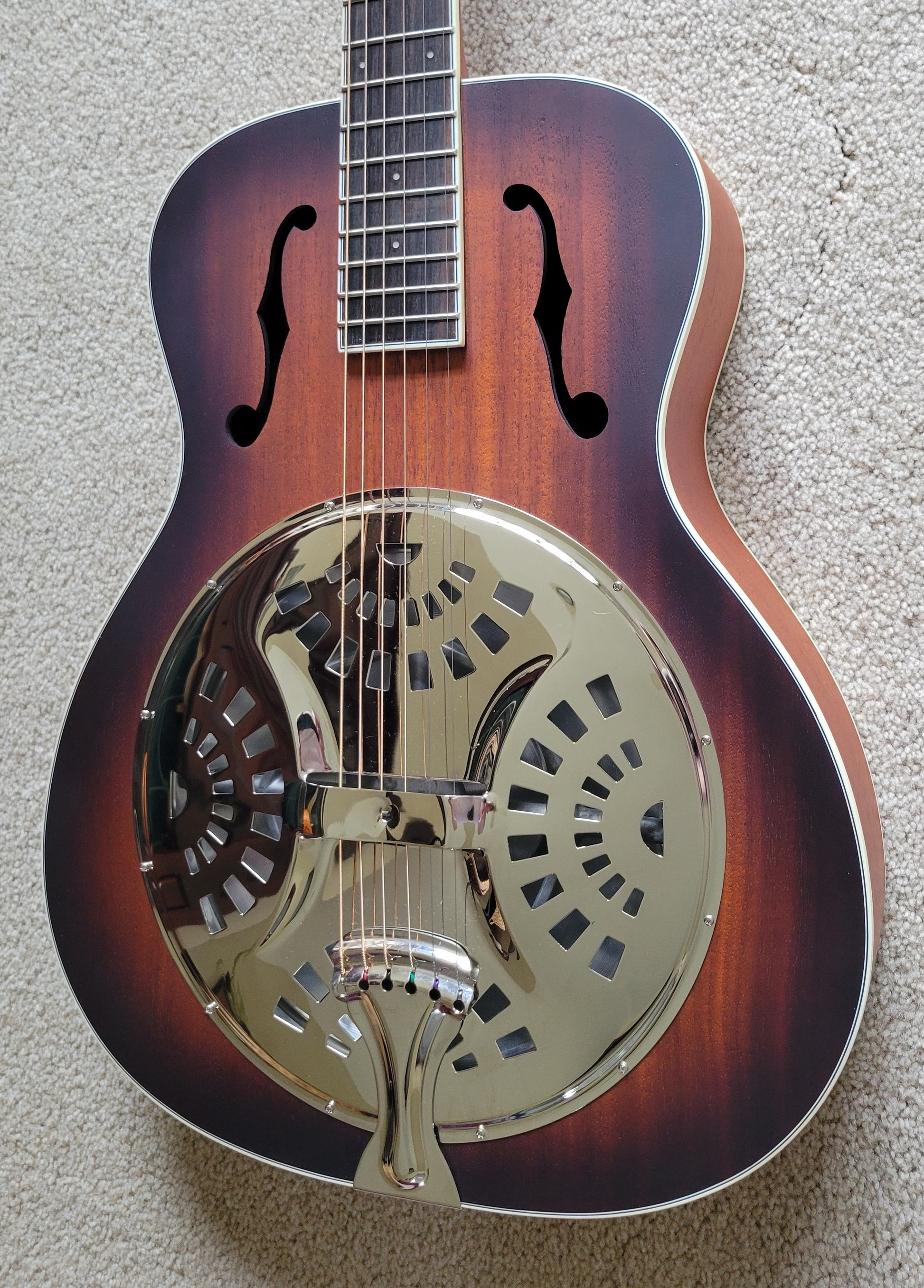 - Acoustic-electric round-neck resonator guitar