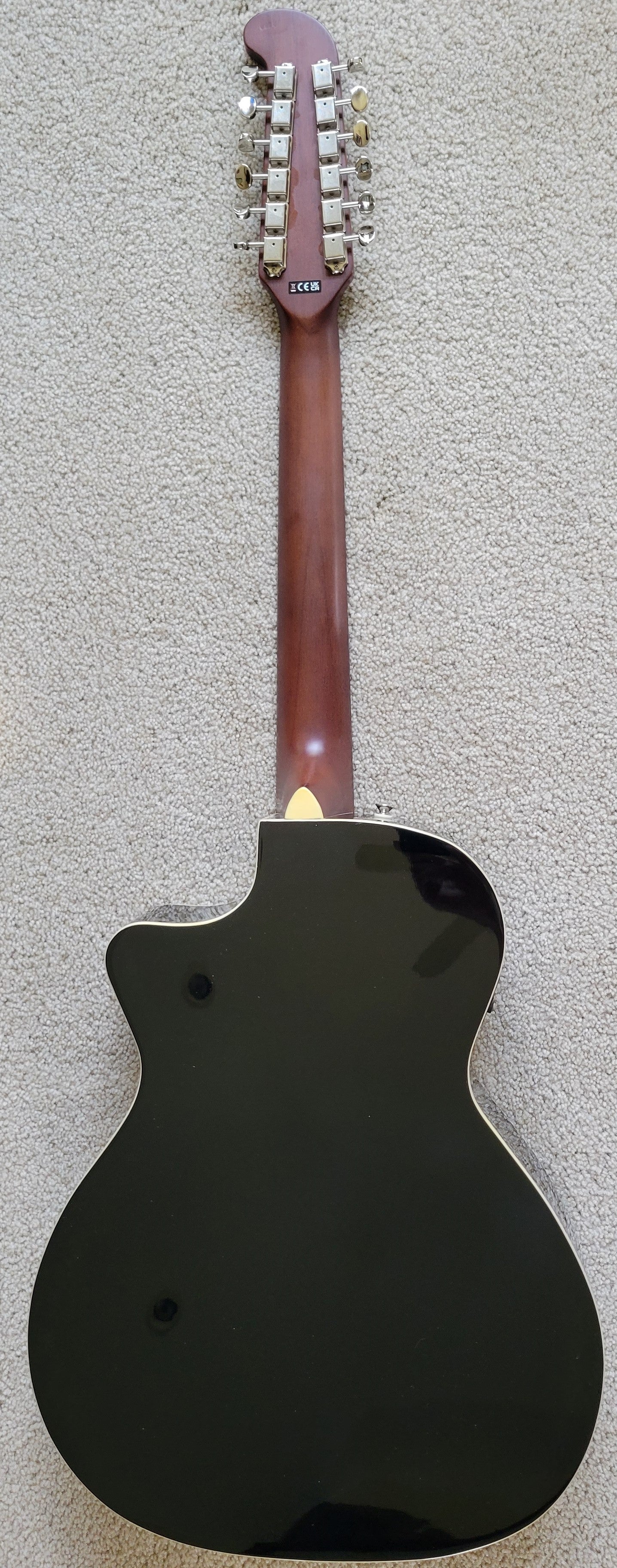 With its authentic "hockey stick" headstock from the 1960s, the Villager 12-String joins the ranks of Fender's California Player series acoustics. Originally introduced in 1965, today's Villager 12-String has been updated for the modern player's needs with a gloss black finish, comfortable cutaway Newporter shape and high-quality Fishman electronics. Acoustically, this solid spruce-topped guitar offers all the chiming resonance you expect from a great 12-string.