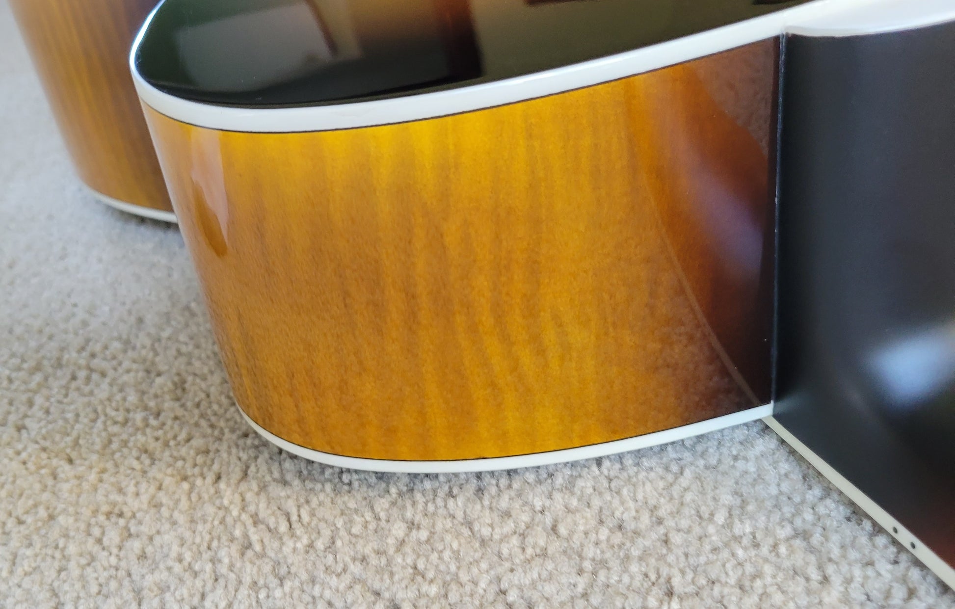 Add a little something extra to your 12-string with the F-2512CE Deluxe! This jumbo guitar is a powerhouse of a 12-string, featuring a solid spruce top with a stunning arched flamed maple back and flamed maple sides. This tonewood gives the F-2512CE Deluxe a loud, crisp voice with a robust tone while a gloss finish in Antique Burst highlights its striking, patterned back. The F-2512CE Deluxe's twelve strings and jumbo body, combined with its arched back, give this guitar unparalleled projection and sustain—a welcome addition to Guild's legacy of quality 12-string instruments. Premium appointments include a cutaway for easy access to the upper register, mother-of-pearl rosette, Guild Peak headstock logo, pau ferro fingerboard and bridge, bound fretboard, and Fishman GT-1 preamp system with volume and tone controls.