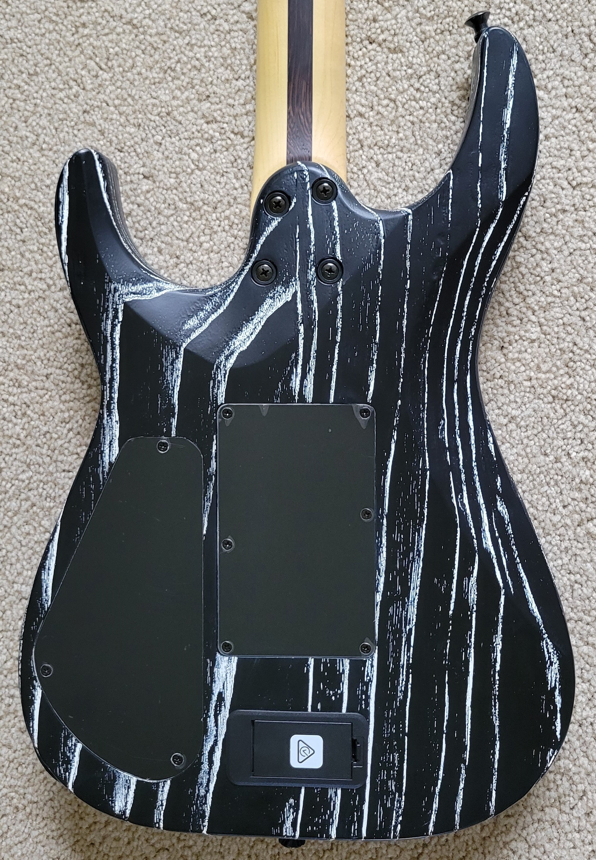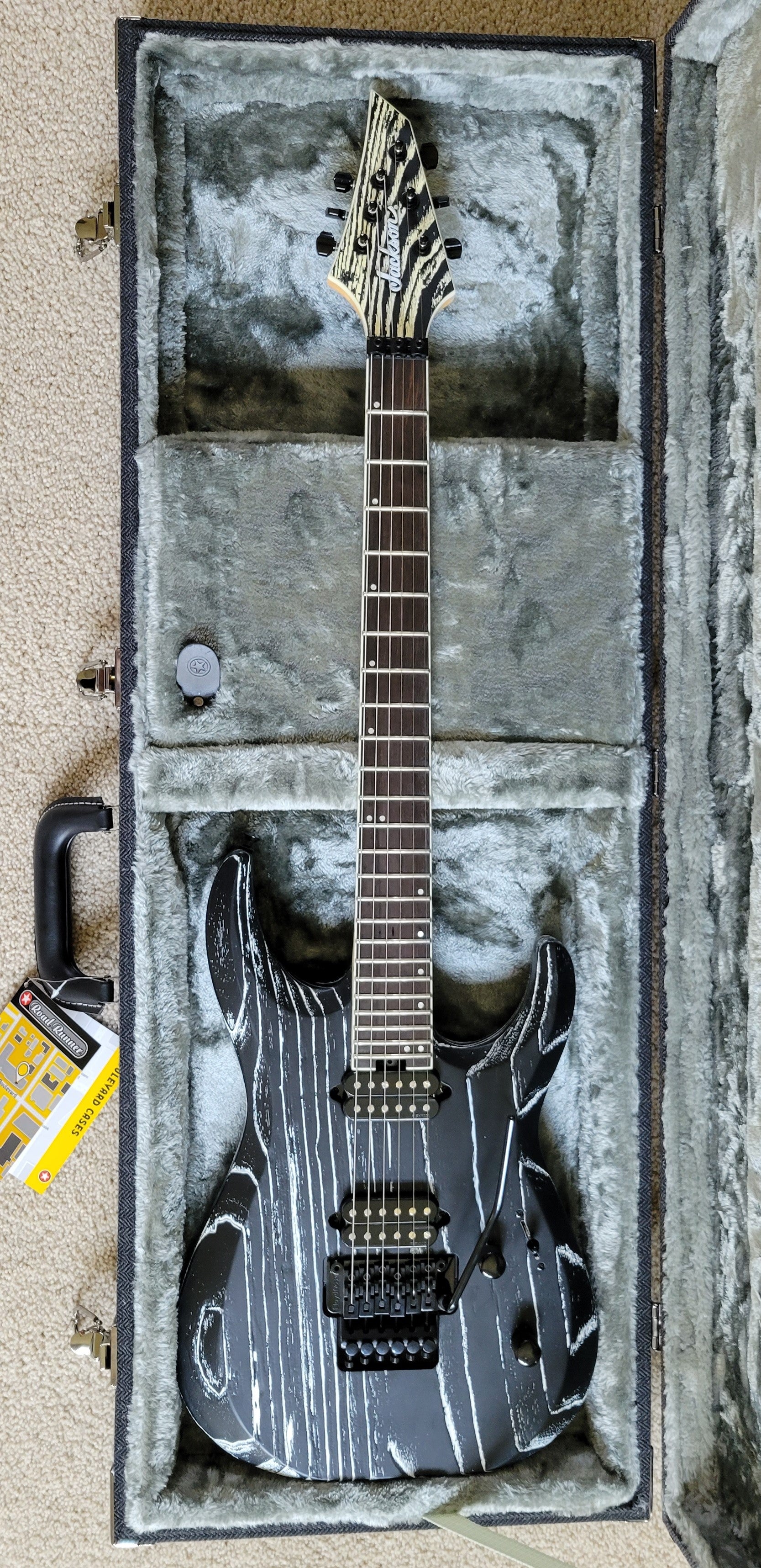 This modernized guitar also boasts unparalleled style with a sandblasted surface that highlights the ash wood grain and distinctive Baked White finish, complete with a reverse 3x3 AT-1 matching headstock with white Jackson badge logo and black hardware.