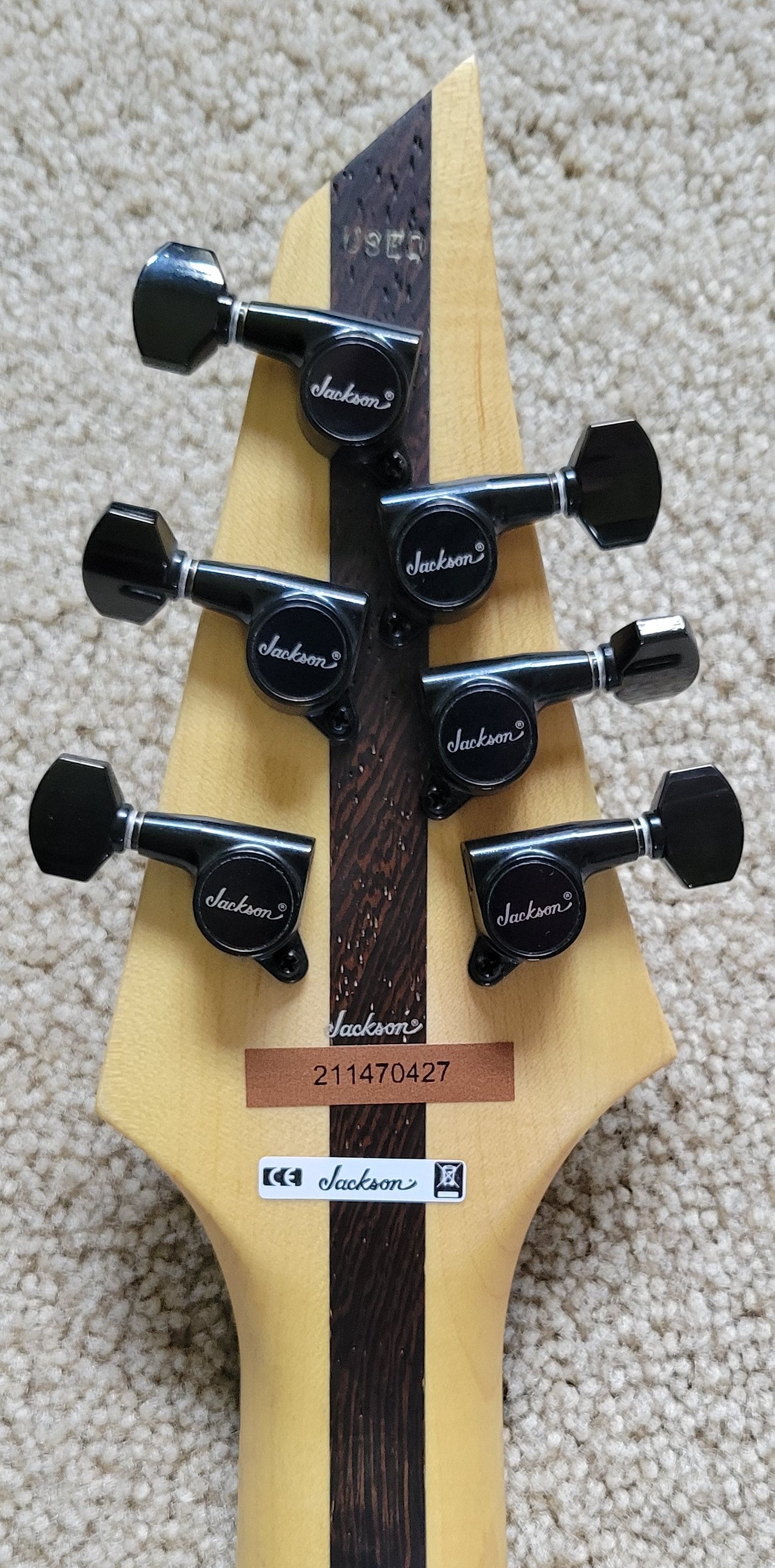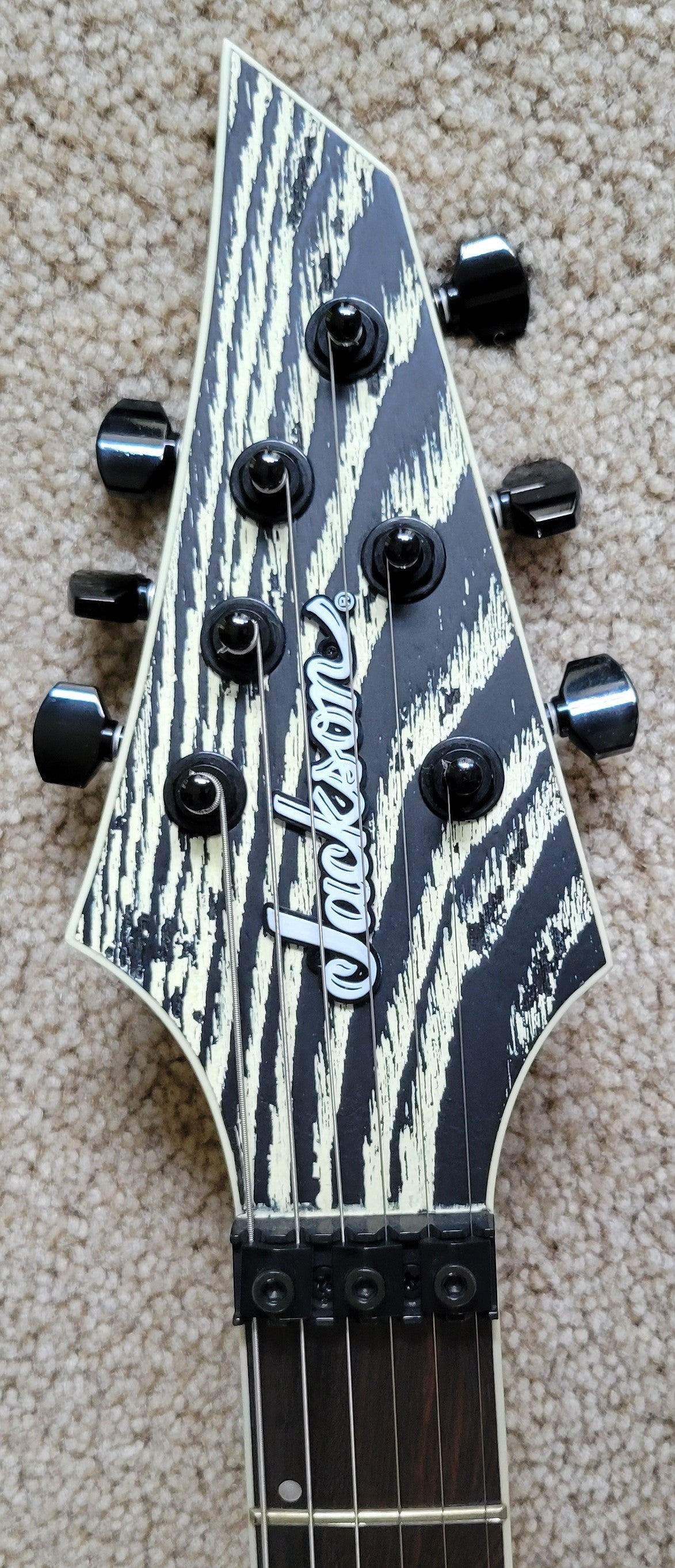 -Available in Baked White with reverse Jackson 3x3 AT-1 (3 over/3 under) matching headstock and black hardware