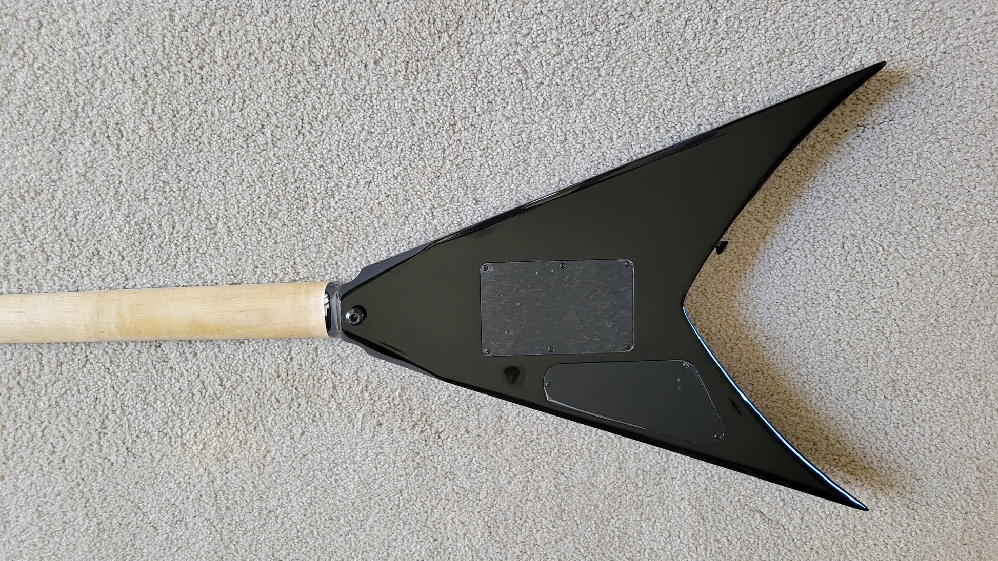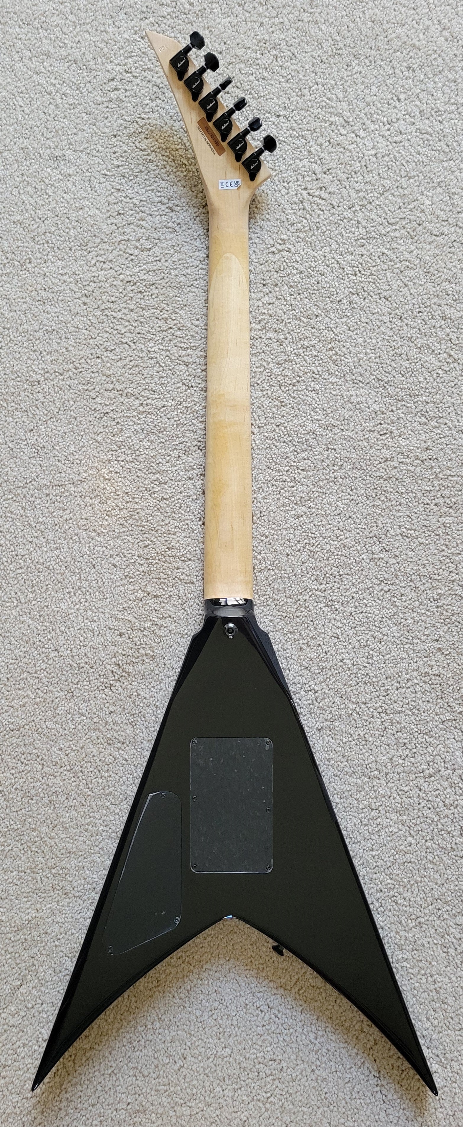 A guitar created for giant, crushing tone with head-banging, flamboyant style, the Pro Series King V KV offers premium features including a mahogany body with bevels and an ultra-fast one-piece maple neck with a scarf joint and pair of graphite rods for reinforcement against the assaults of temperature and humidity. The 12"-16" compound radius ebony fingerboard hosts 24 jumbo frets and alumiloid sharkfin inlays and is designed for highly technical lightspeed playing - more curved by the nut for comfortable chording, it flattens out as you move up the speedy neck for increasingly fast playing speed and wide bends without fretting out.