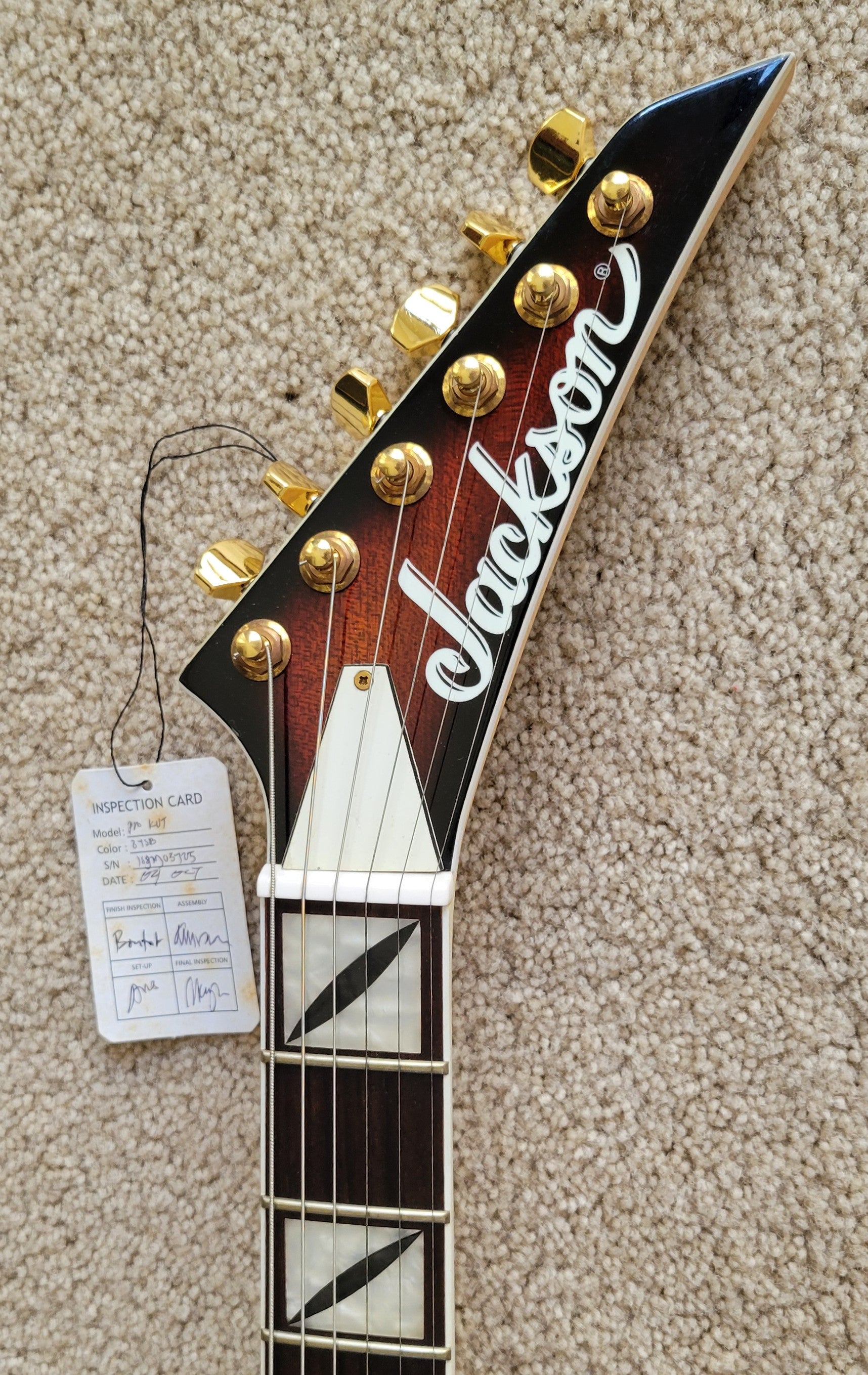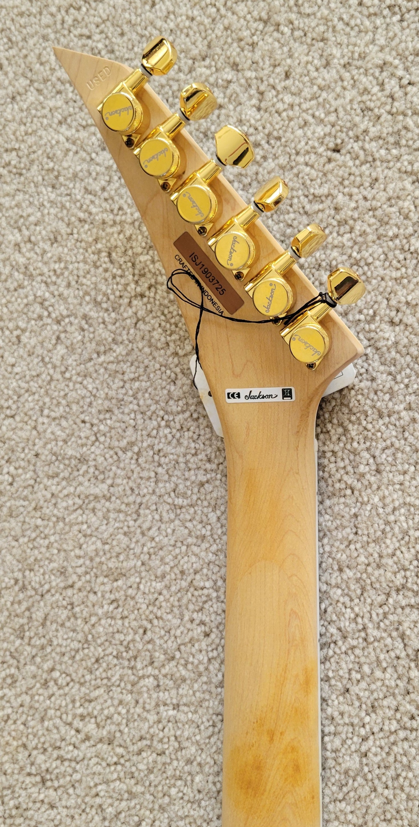 This LIKE NEW guitar went from Jackson to their authorized refurbisher MIRC, where it received a full multi-point inspection and expert setup - it is ready to play! No visible repairs were necessary, and no modifications were made except the back of the headstock was gently stamped USED, and the original serial number was replaced/covered with a new one.
