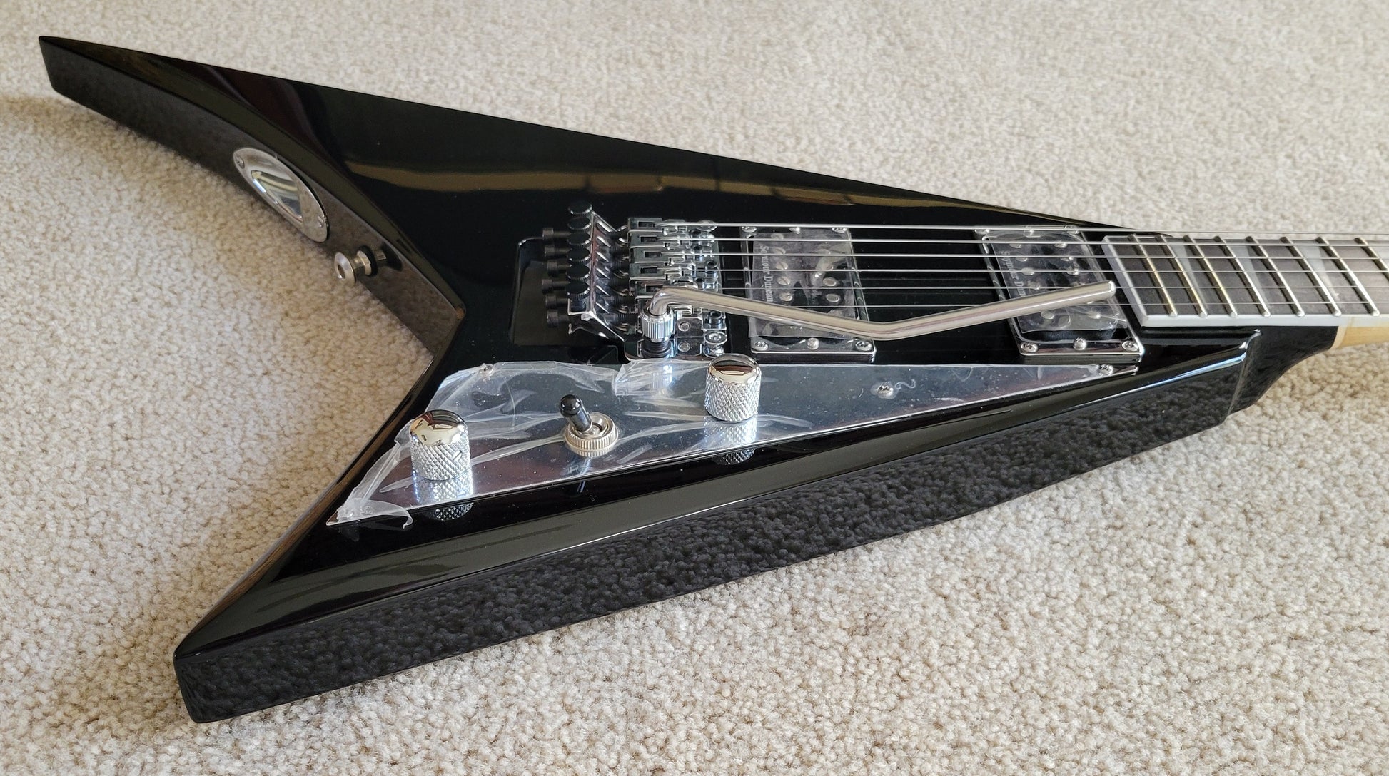 A pair of modern Seymour Duncan Distortion humbucking pickups drives this guitar’s voice, combining for highly balanced, flexible tone for even the most aggressive of styles, with plenty of high output for pristine cleans and snarling distortion. The sensitive Floyd Rose 1000 Series recessed double-locking tremolo system adds expressive vibrato to notes and chords with the tap of a finger, along with rock-solid tuning performance and precise intonation.