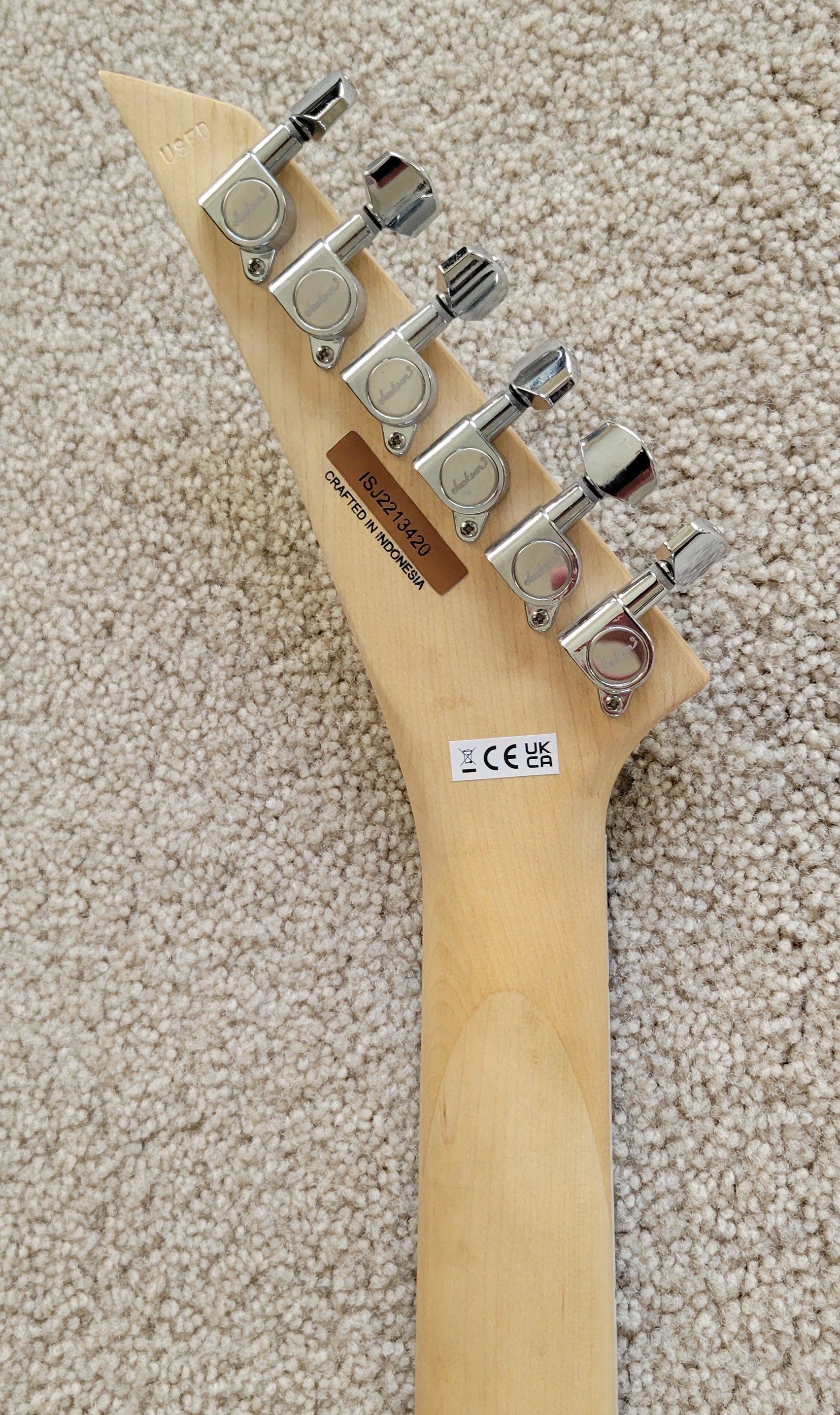 This LIKE NEW guitar went directly from Jackson to their authorized refurbisher MIRC, where it received a full multi-point inspection and expert setup - it is ready to play! No visible repairs were necessary, and no modifications were made except the back of the headstock was gently stamped USED and the original serial number was replaced/covered by a new one.