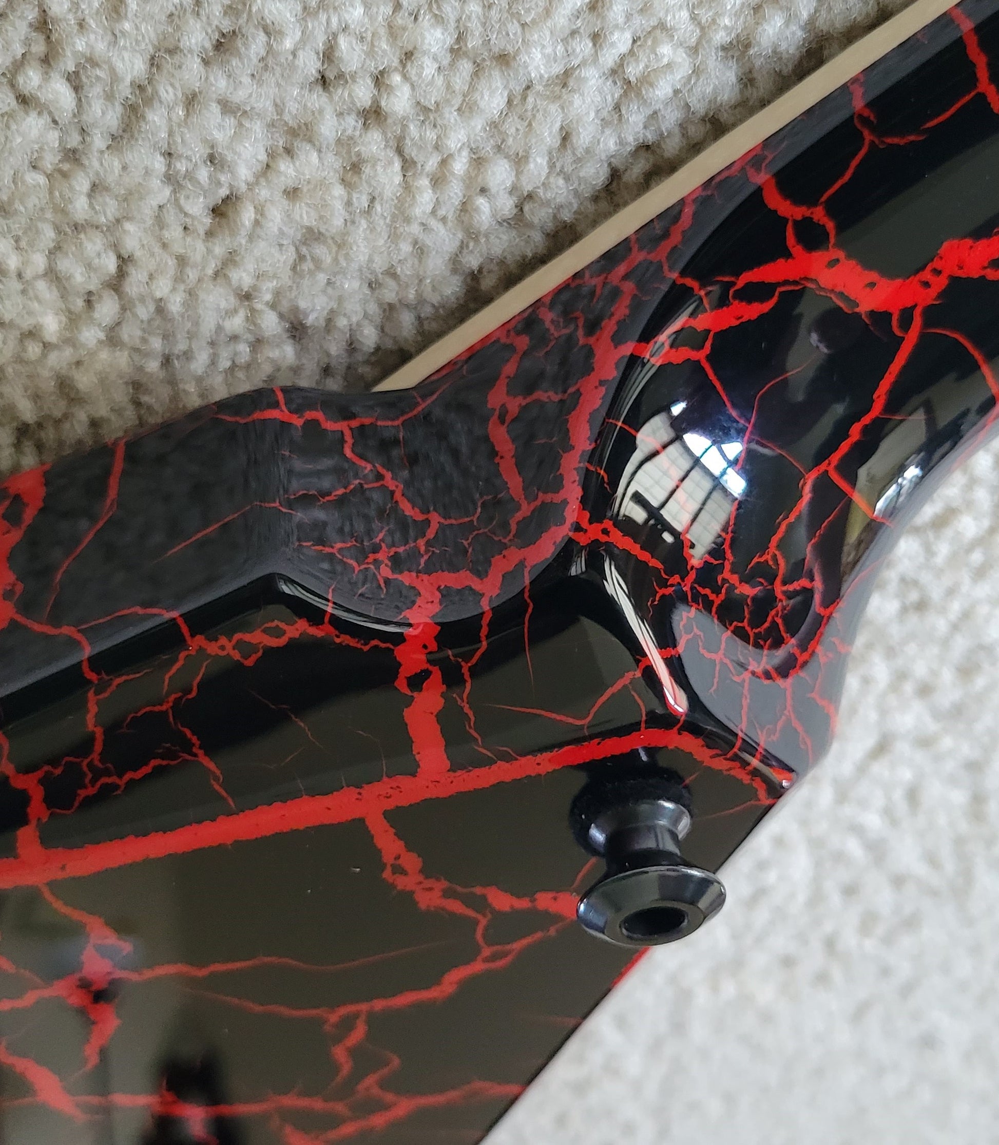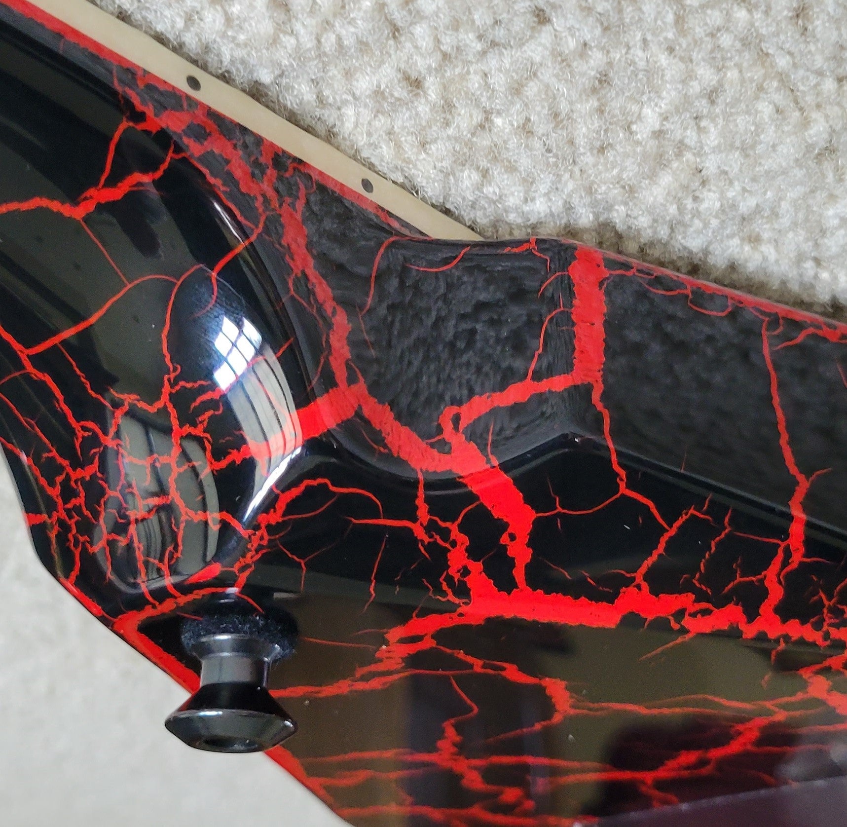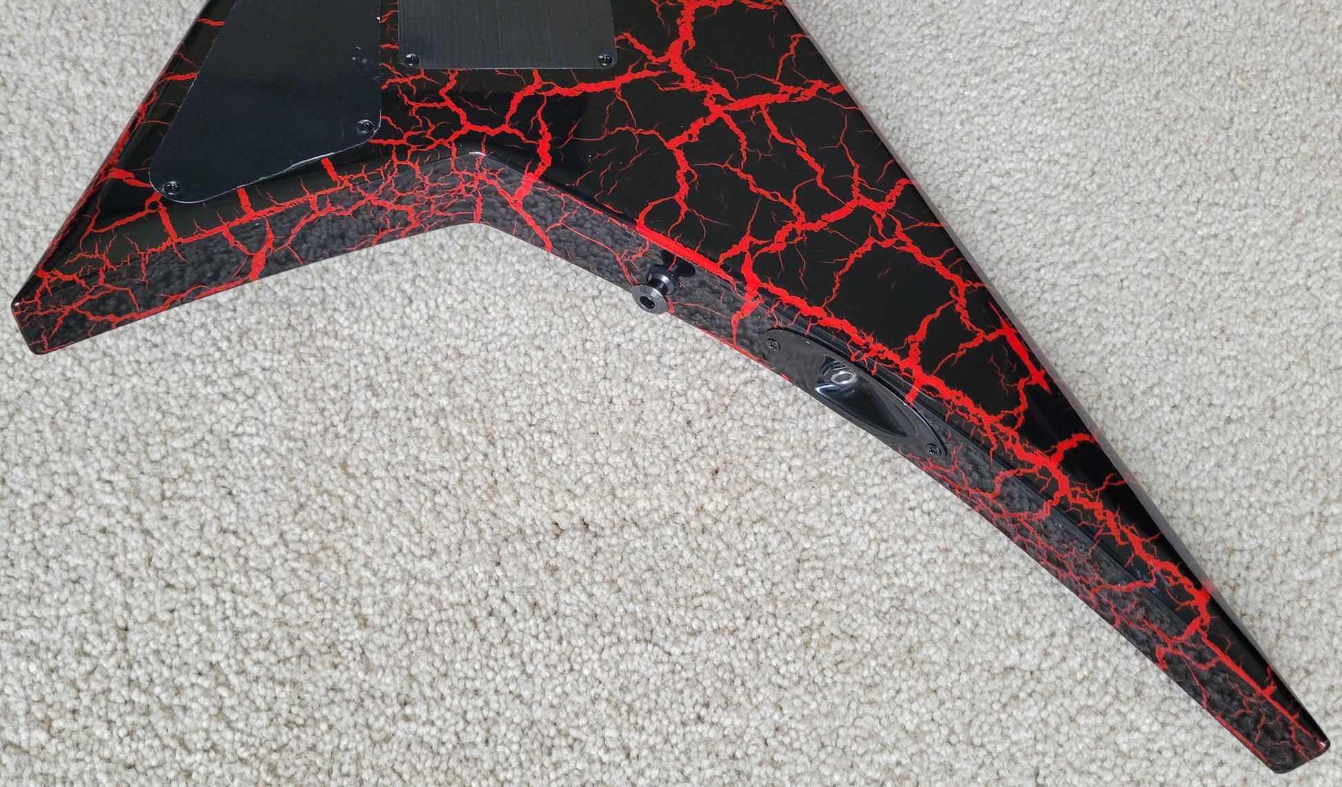 - Available in Lightning Crackle or Maul Crackle with matching reverse Jackson pointed 6-in-line headstock and black hardware