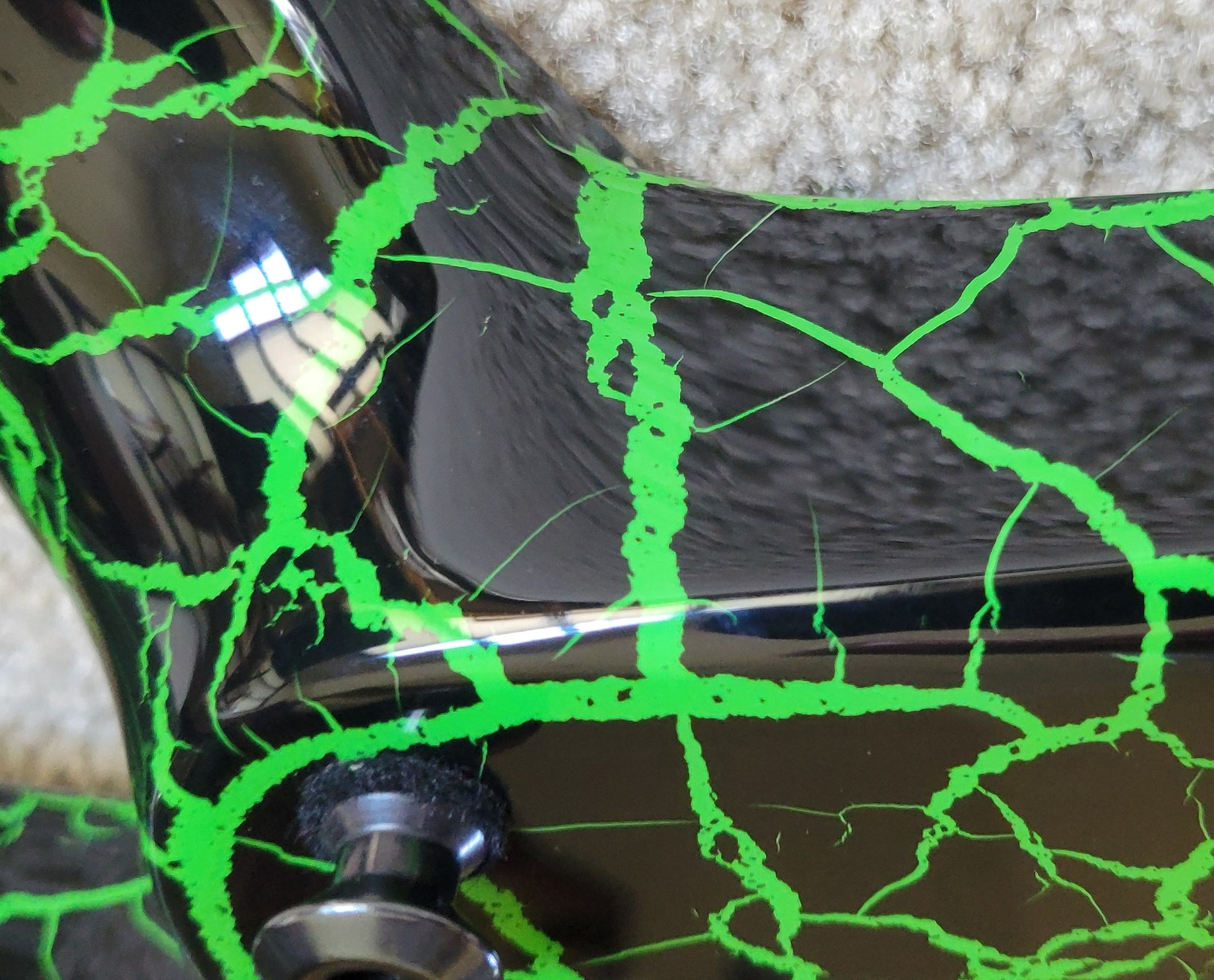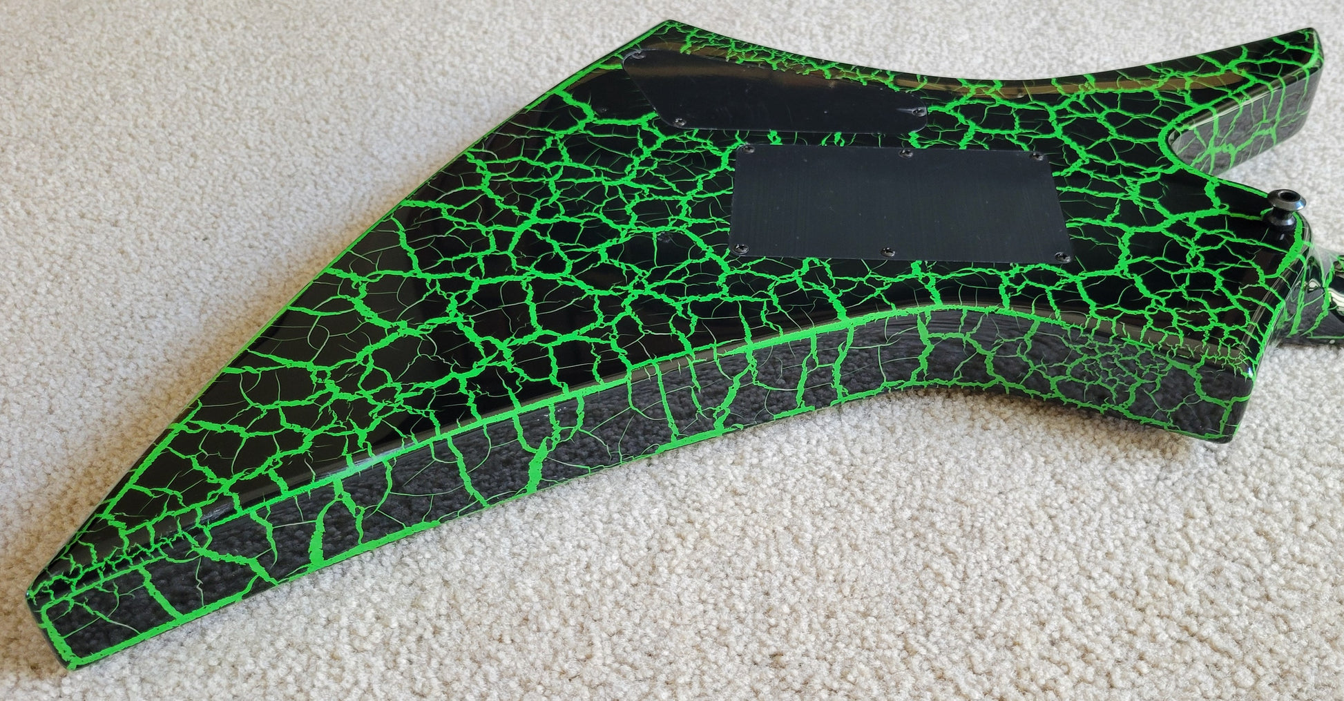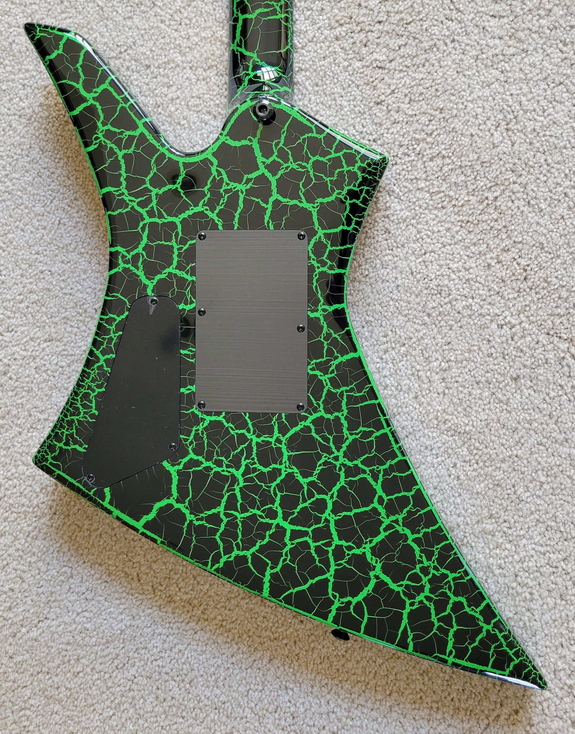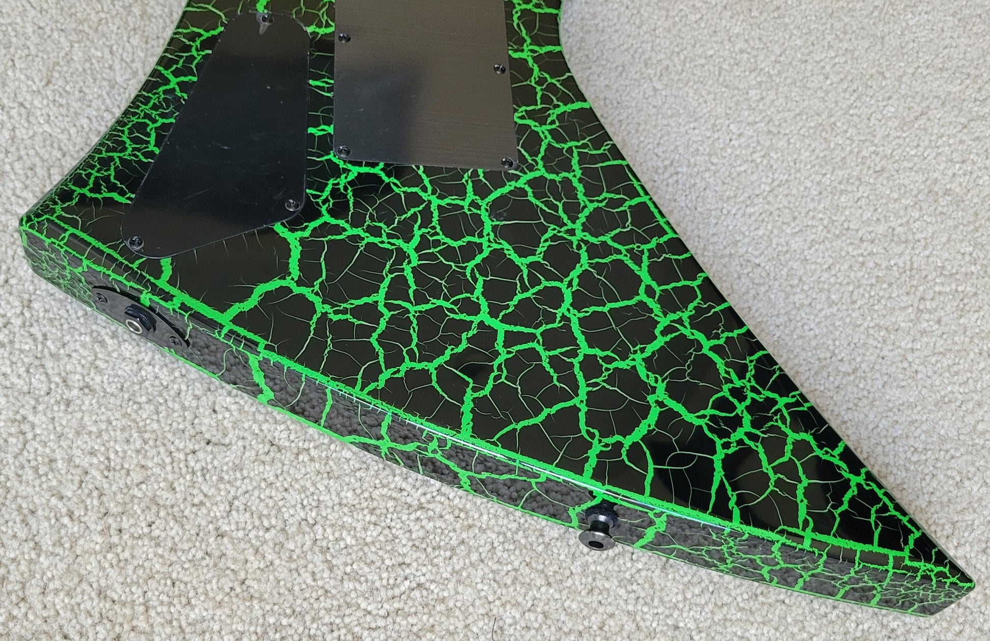 - Available in Green Crackle with reverse Jackson pointed 6-in-line black headstock featuring green Jackson logo and black hardware