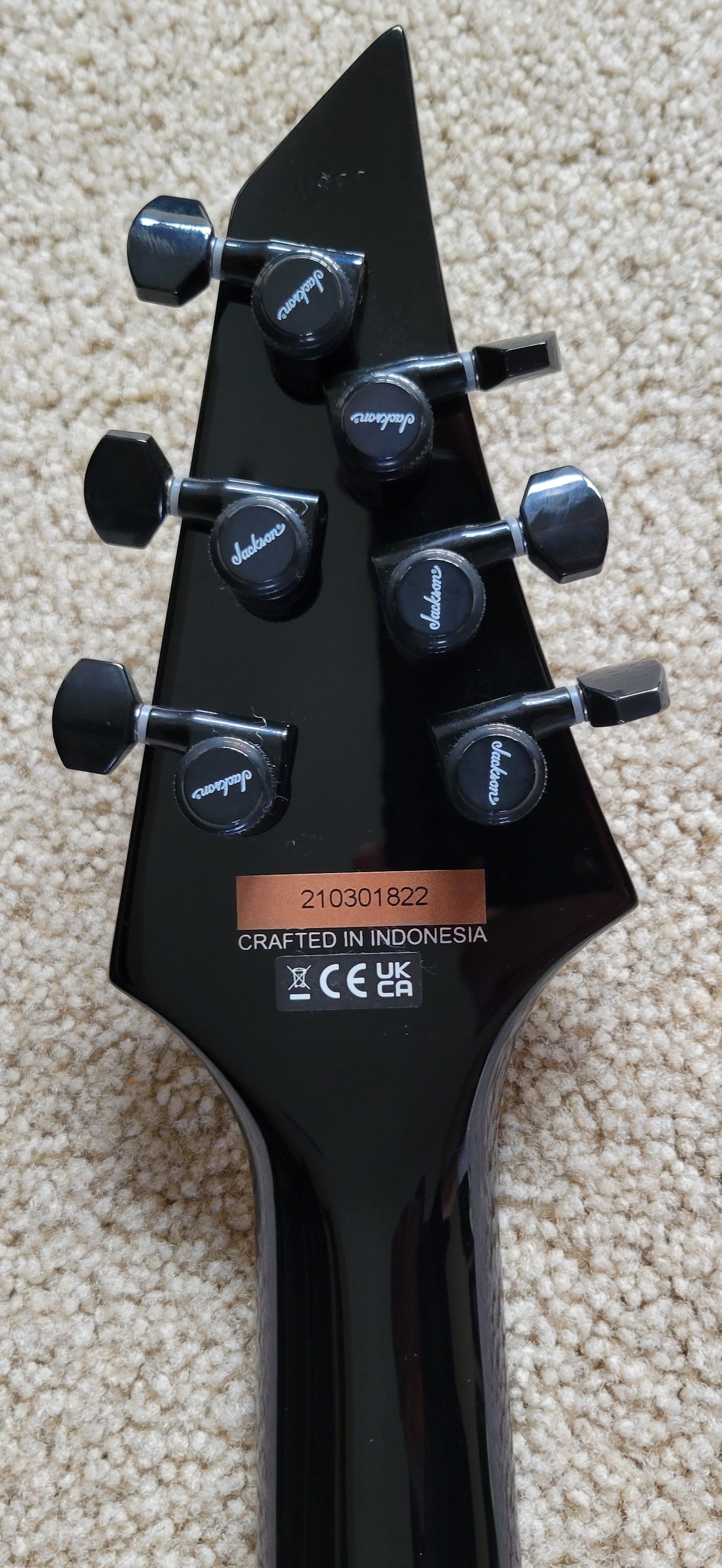 - Jackson sealed die-cast locking tuners and Dunlop dual-locking strap buttons