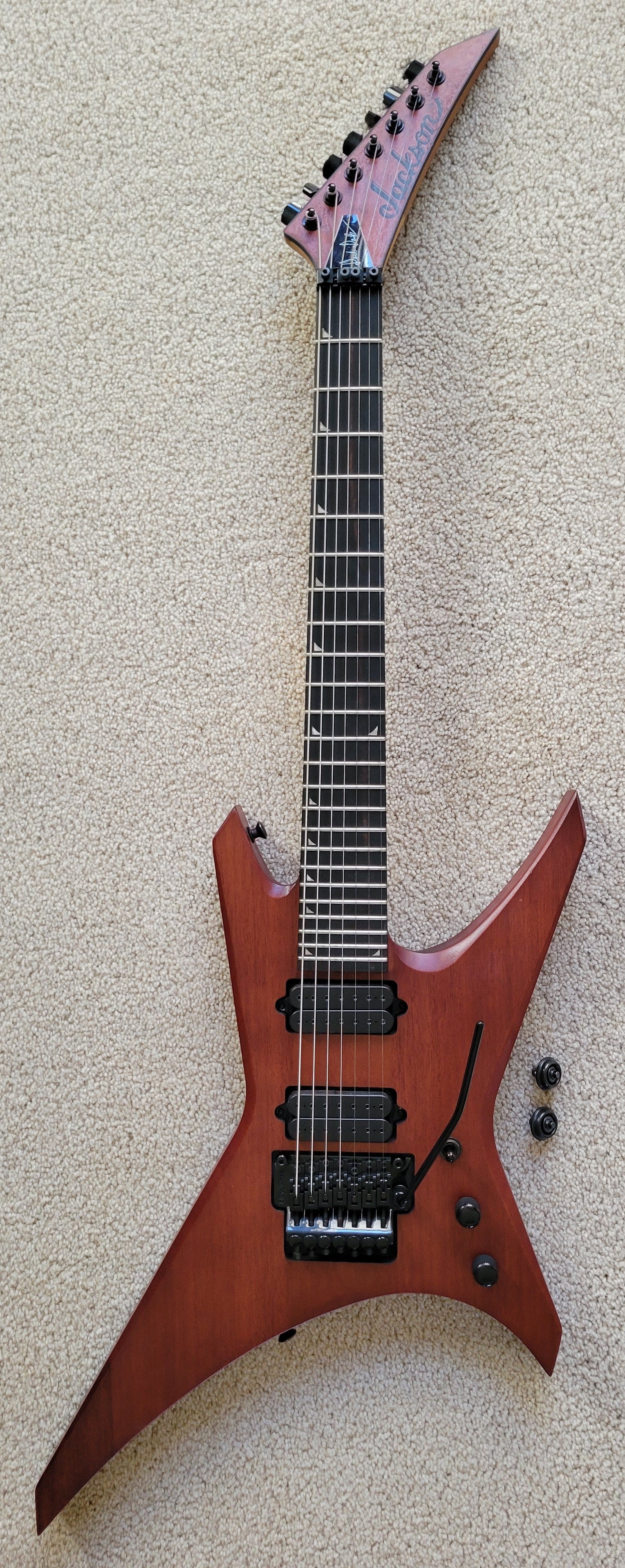 - Available in Walnut Stain with Jackson pointed 7-in-line matching headstock, black headstock binding and black hardware