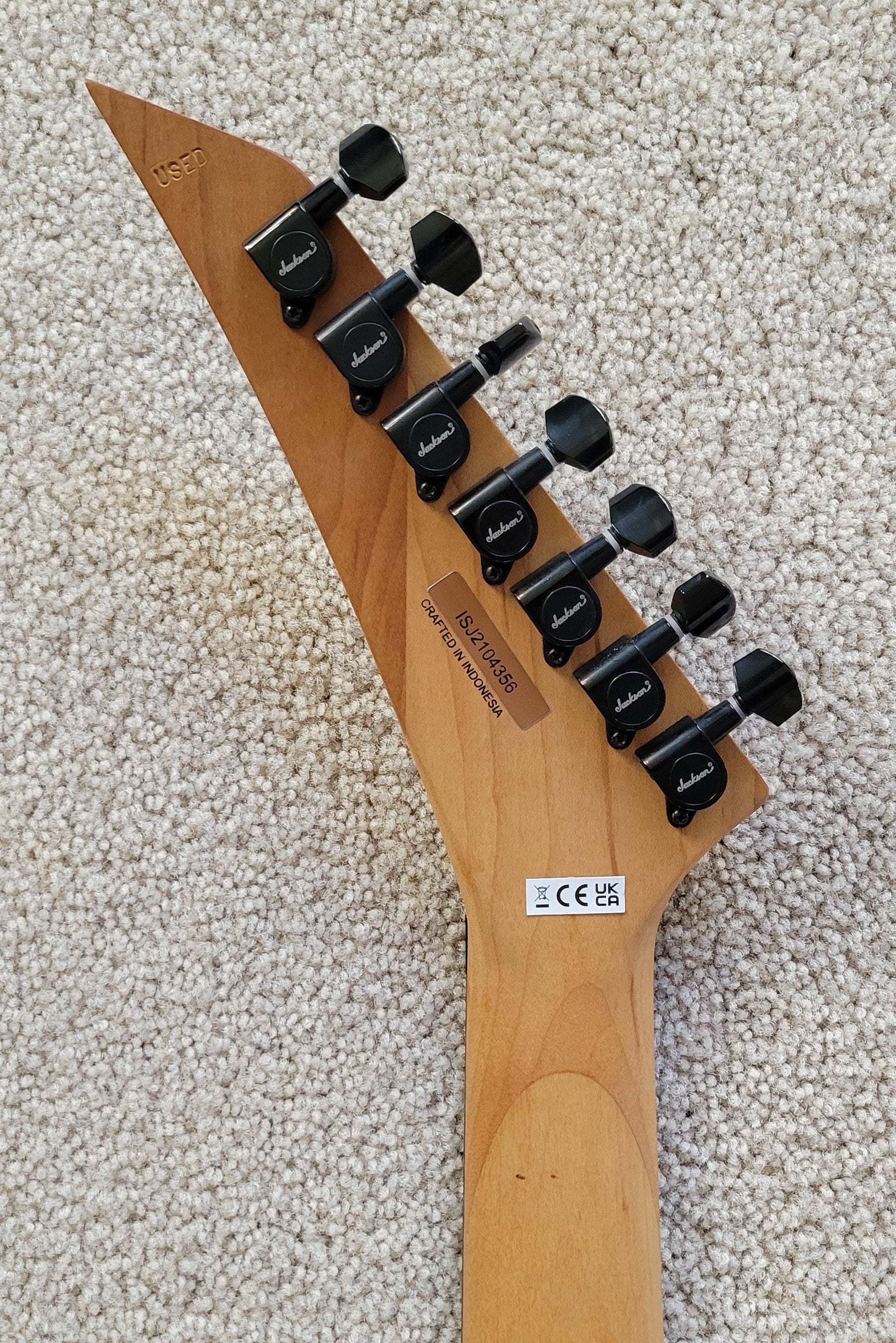 This EXCELLENT guitar went from Jackson to their authorized refurbisher MIRC, where it received a full multi-point inspection and expert setup - it is ready to play! No visible repairs were necessary, and no modifications were made except the back of the headstock was stamped USED and the original serial number was replaced/covered with a new one.