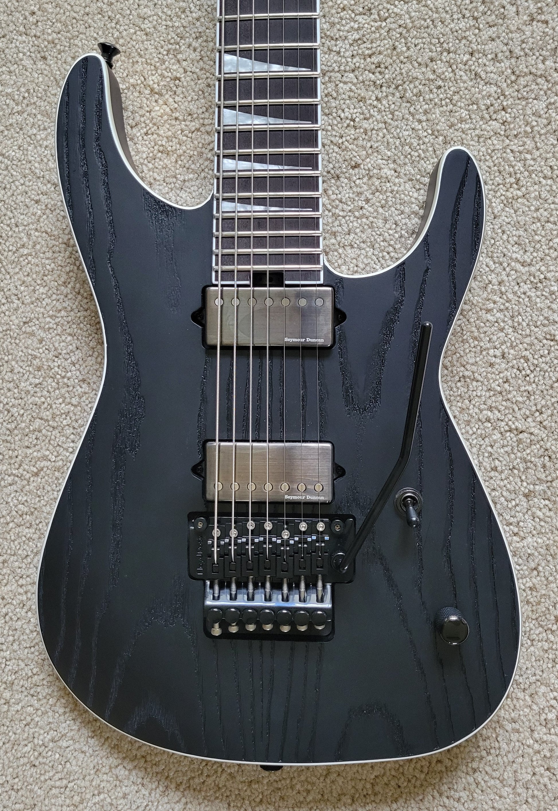 Keeping with his tradition of developing guitars with menacing metal style, the Pro Series Signature Jeff Loomis Soloist SL7 is cloaked in Satin Black with a matching Jackson pointed 7-in-line headstock and black hardware.