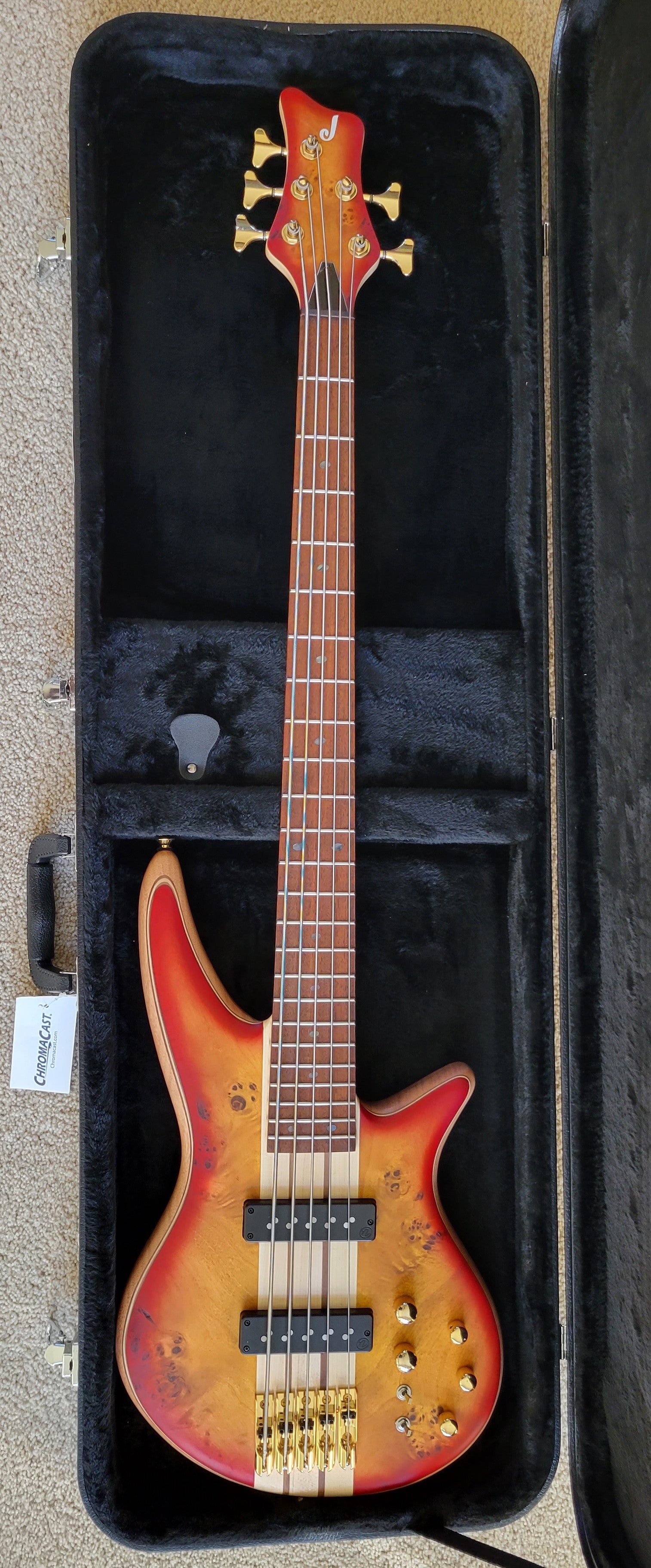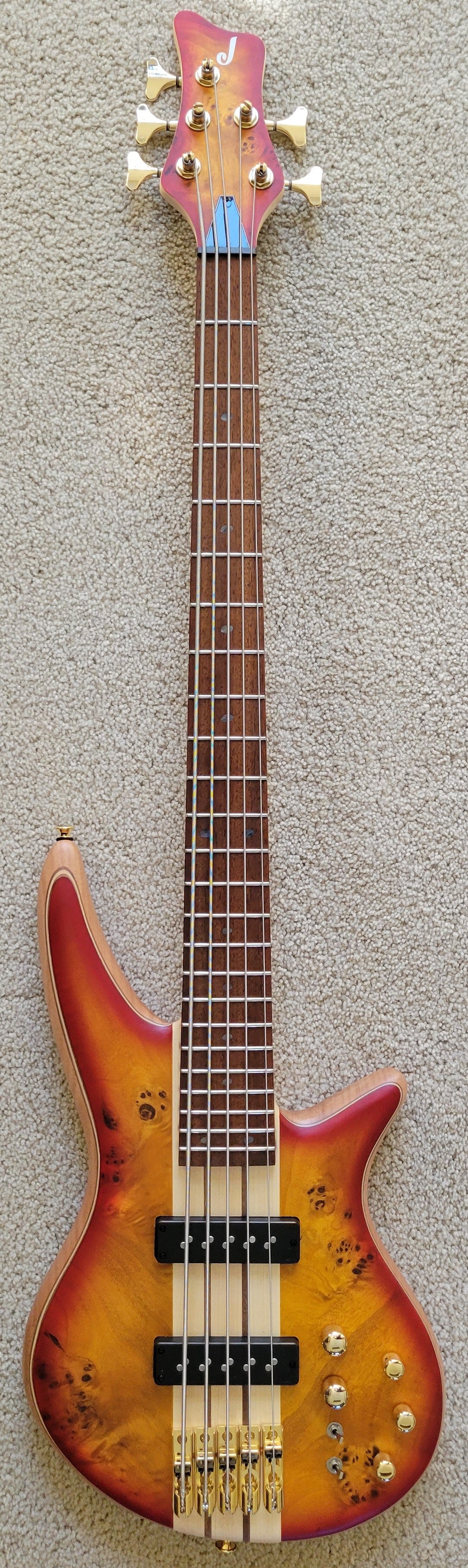 This is the Stunning Jackson Pro Series Spectra SBP V Bass Guitar, in the Transparent Cherry Burst finish