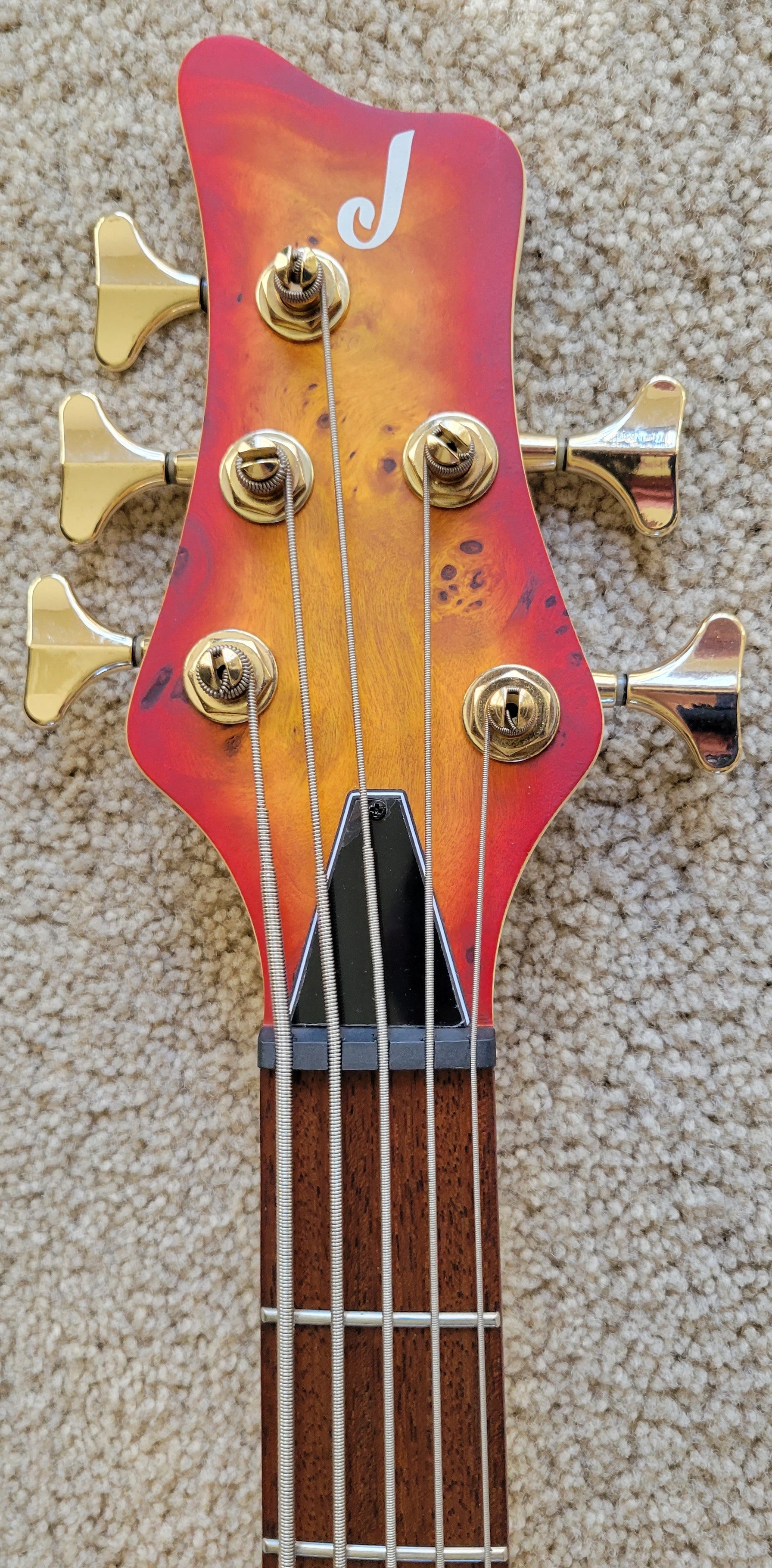 - Available in Transparent Cherry Burst with unique 3x2 color matched headstock with “J” logo and gold hardware