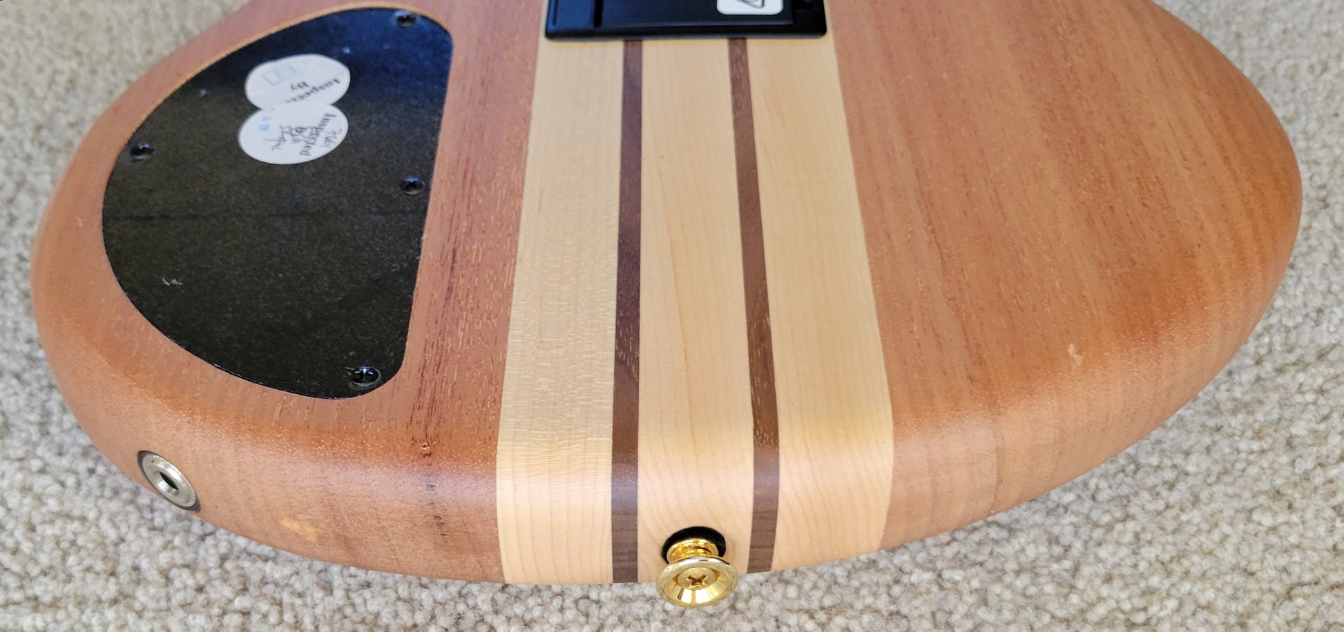 - Through-body five-piece maple/walnut/maple/walnut/maple neck with graphite reinforcement and satin back finish