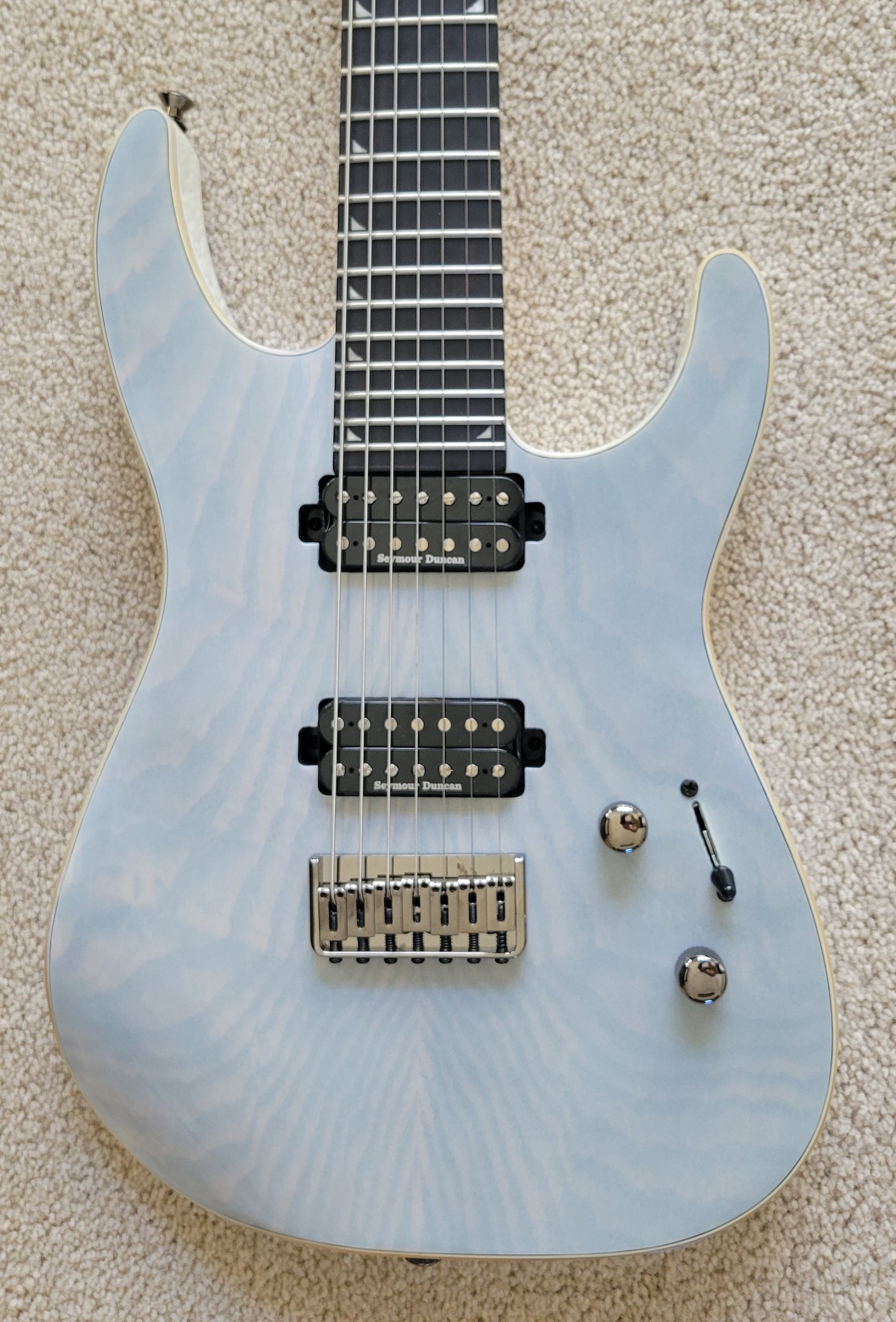 The Pro Soloist SL7A MAH HT Electric Guitar is equipped with direct mount Seymour Duncan Distortion 7 bridge and neck humbucking pickups. These drive the guitar's versatile and searing sound, combining high-output attitude with full-bodied upper-mid harmonics and tight, snarling distortion.