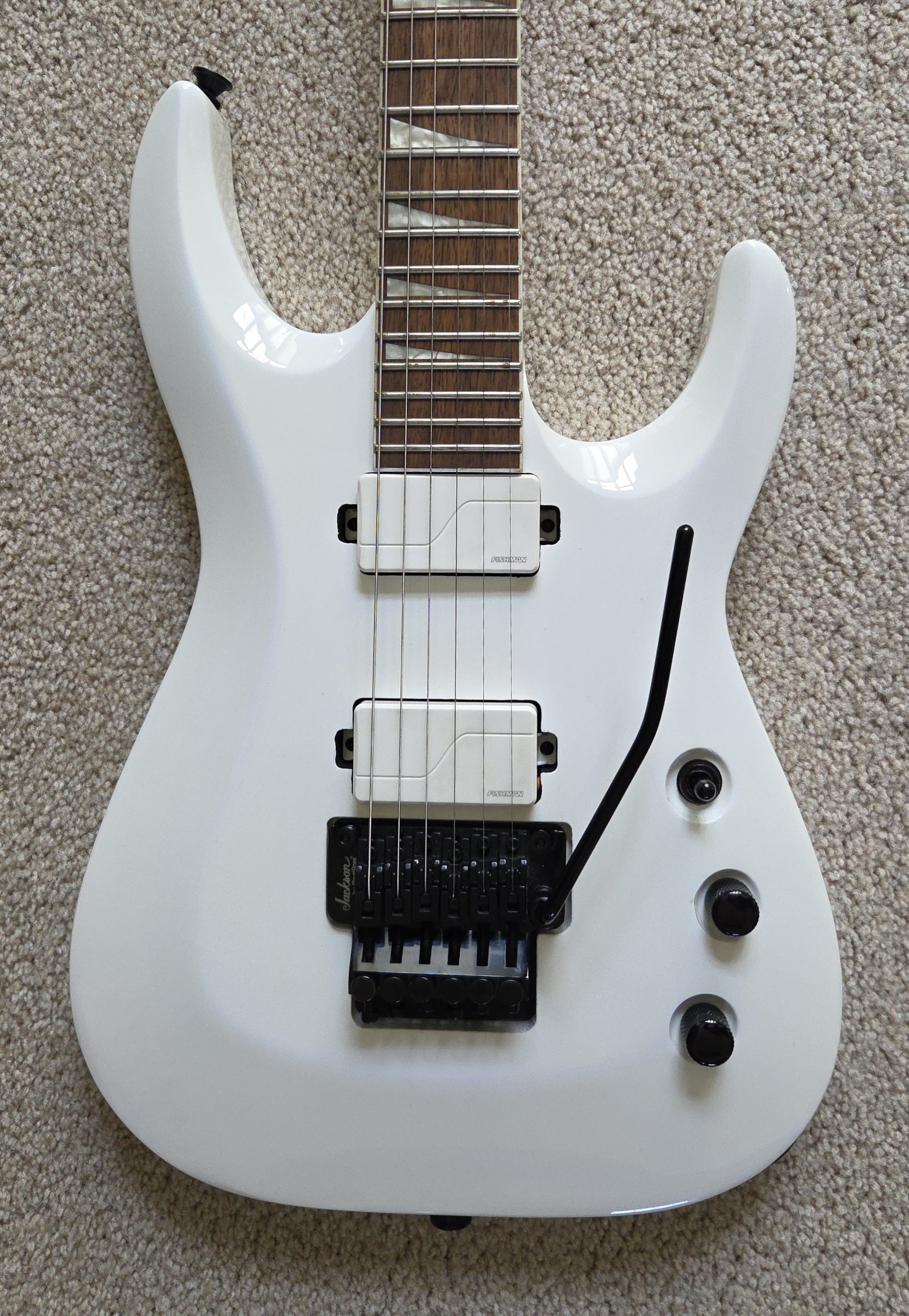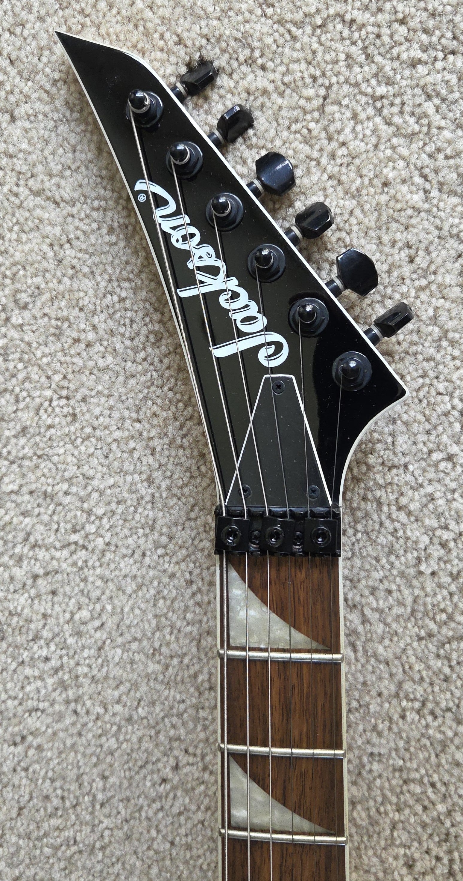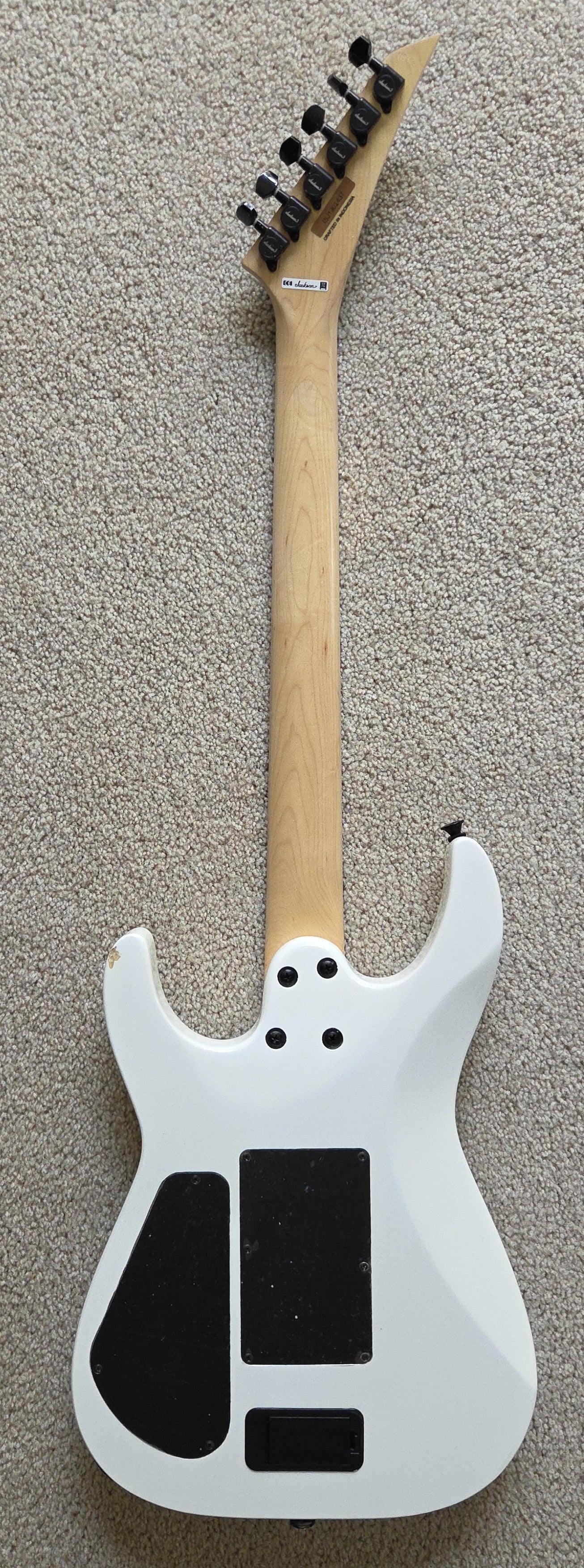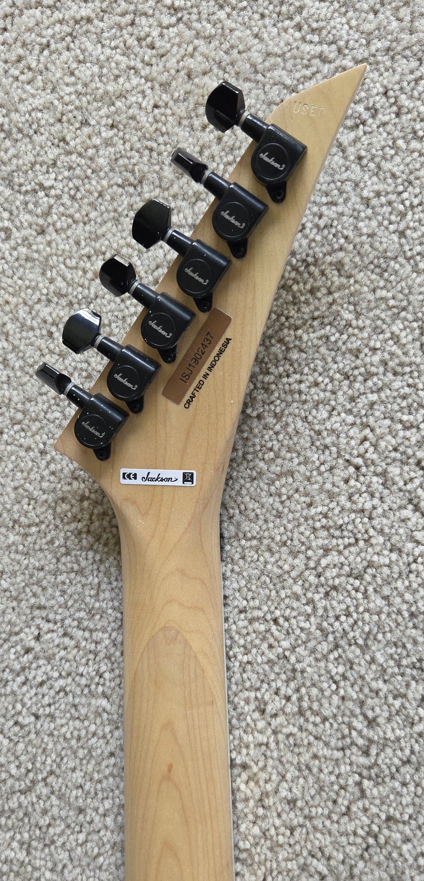This EXCELLENT guitar went from Jackson to their authorized refurbisher MIRC, where it received a full multi-point inspection and expert setup - it is ready to play! This guitar has a small ding/chip on the back side edge that has been filled/sealed - see the photos. No other visible repairs were needed, and no modifications were made except the back of the headstock was gently stamped USED, and the original serial number was replaced/covered by a new one.