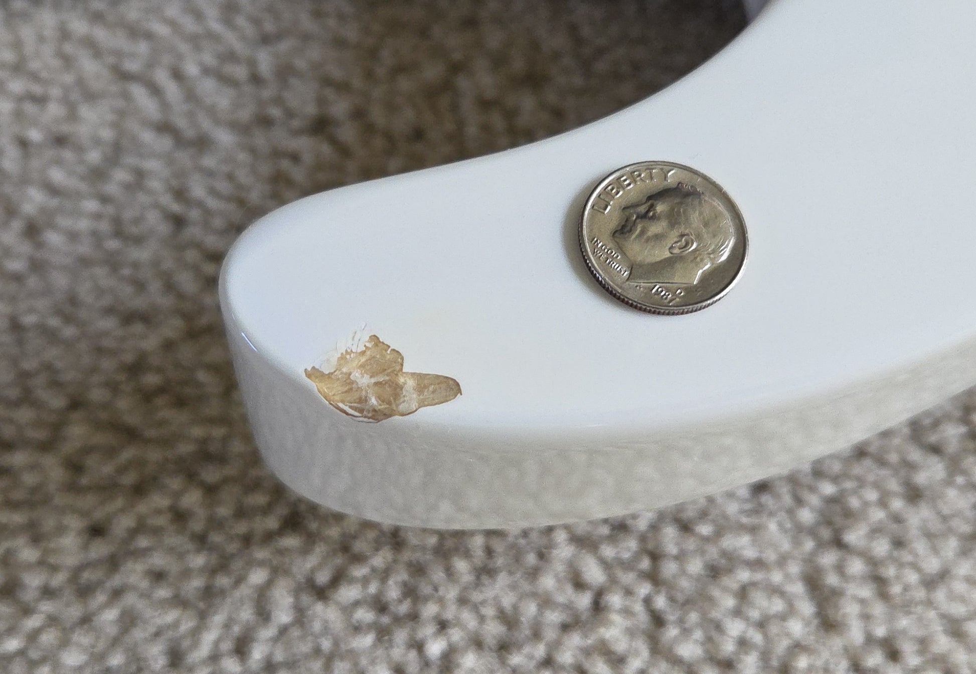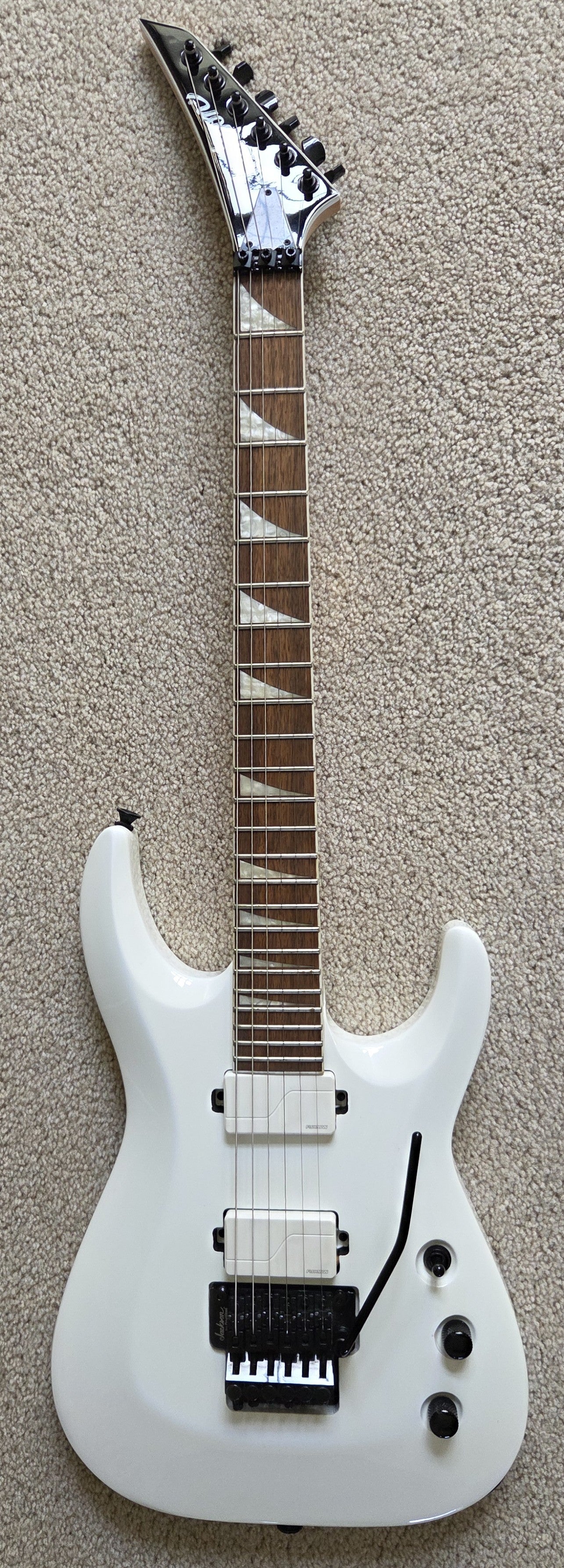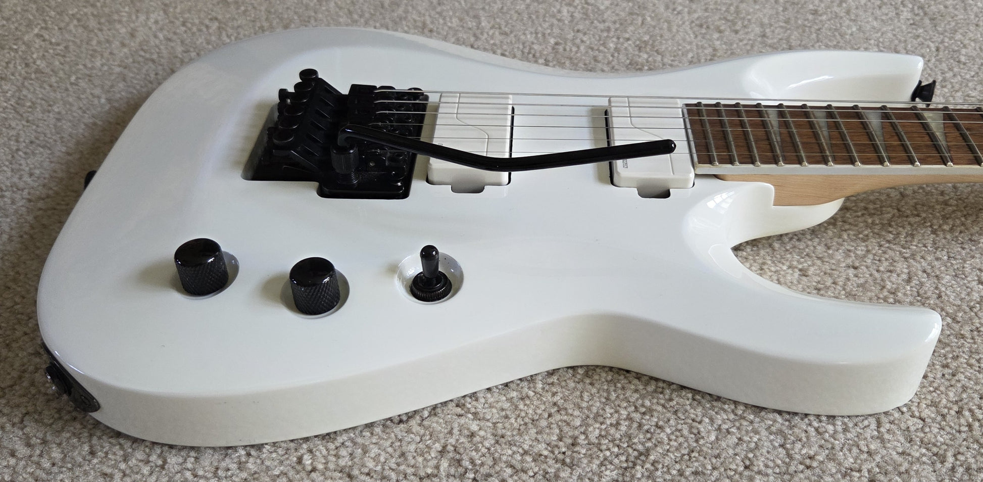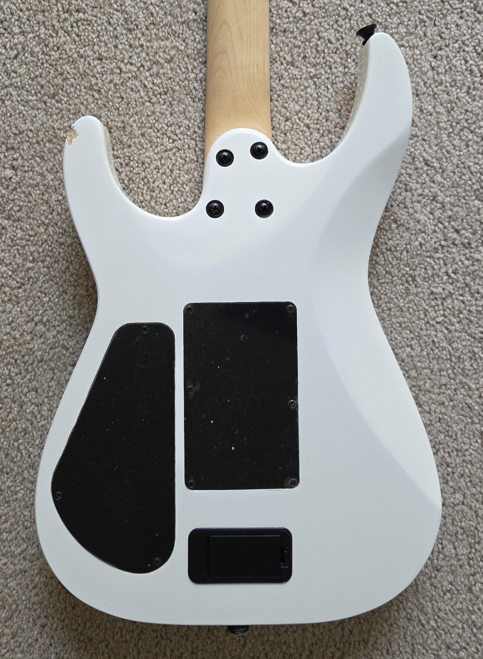 This EXCELLENT guitar went from Jackson to their authorized refurbisher MIRC, where it received a full multi-point inspection and expert setup - it is ready to play! This guitar has a small ding/chip on the back side edge that has been filled/sealed - see the photos. No other visible repairs were needed, and no modifications were made except the back of the headstock was gently stamped USED, and the original serial number was replaced/covered by a new one.