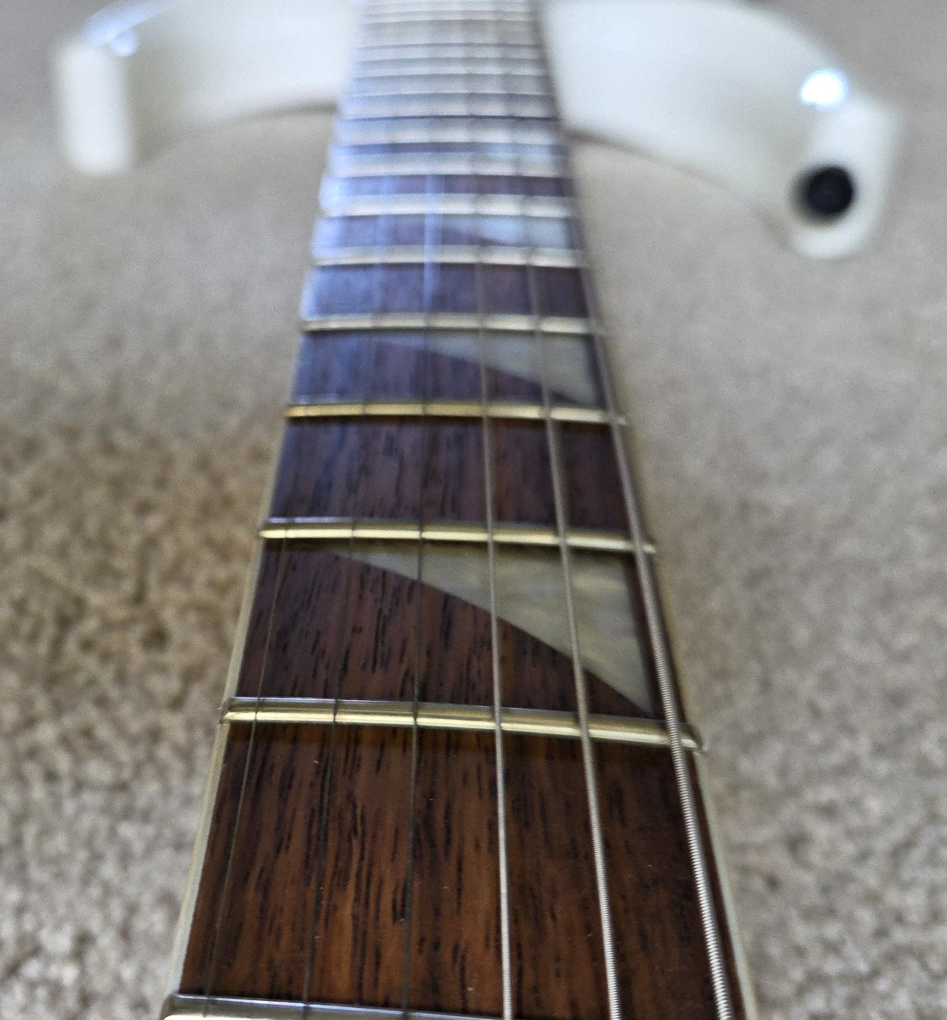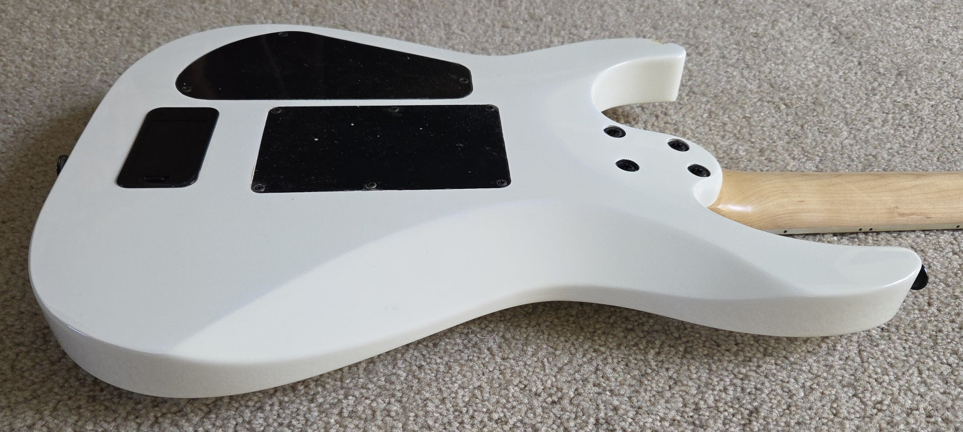 This is a sleek and enticing guitar. When on stage its aesthetics will ensure that all eyes are locked on you. After all, you're the one performing the magic with all the aforementioned features. Its snow white finish is contrasted by black hardware making your look pop and signalling the dynamics and versatility of your playing. It's this sophisticated design that will make you feel, and therefore, play professionally. When it comes to guitar, looks do matter.