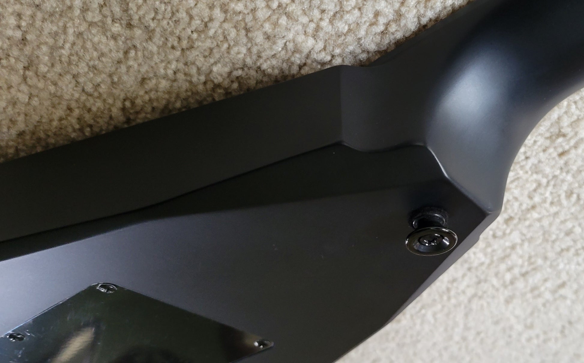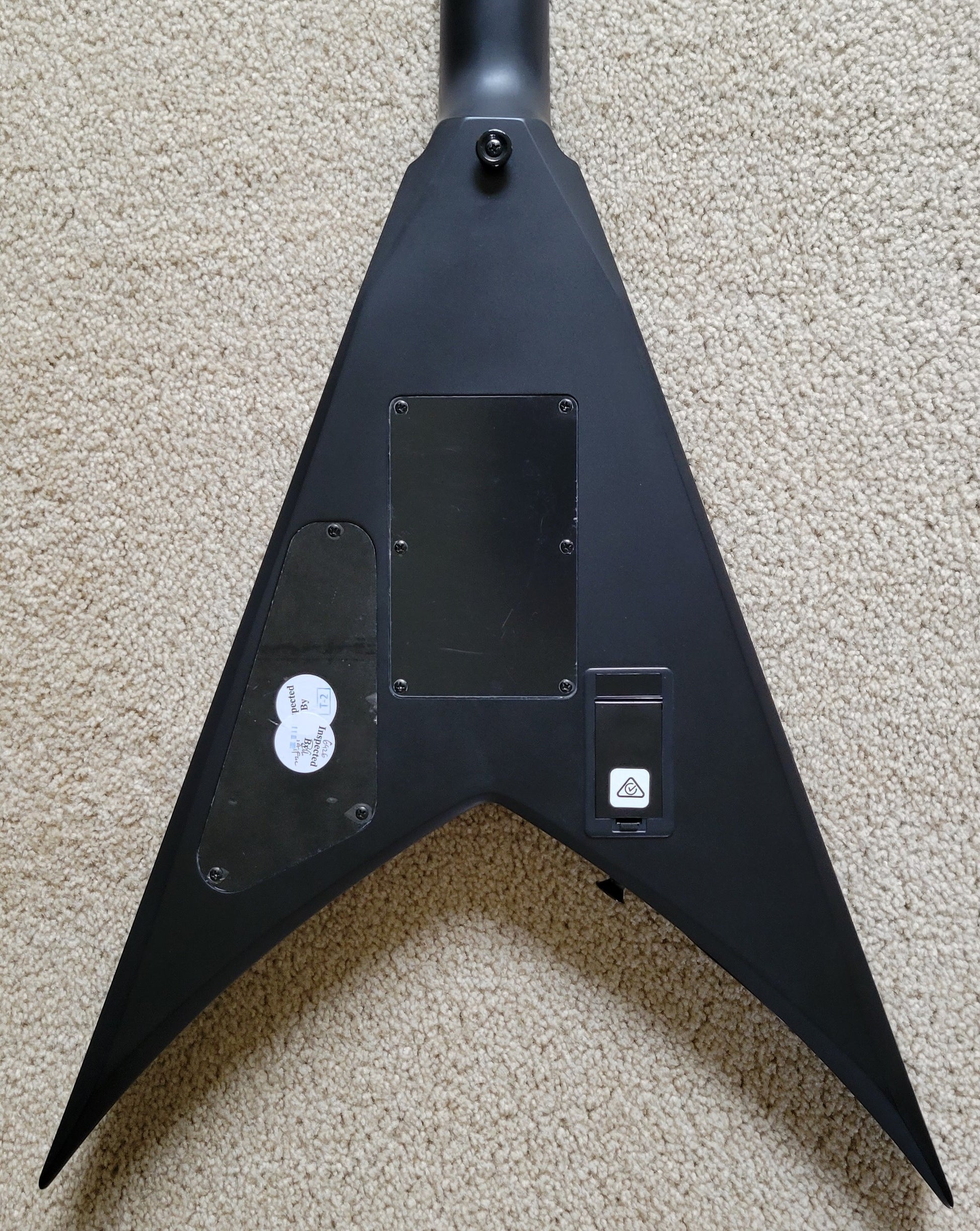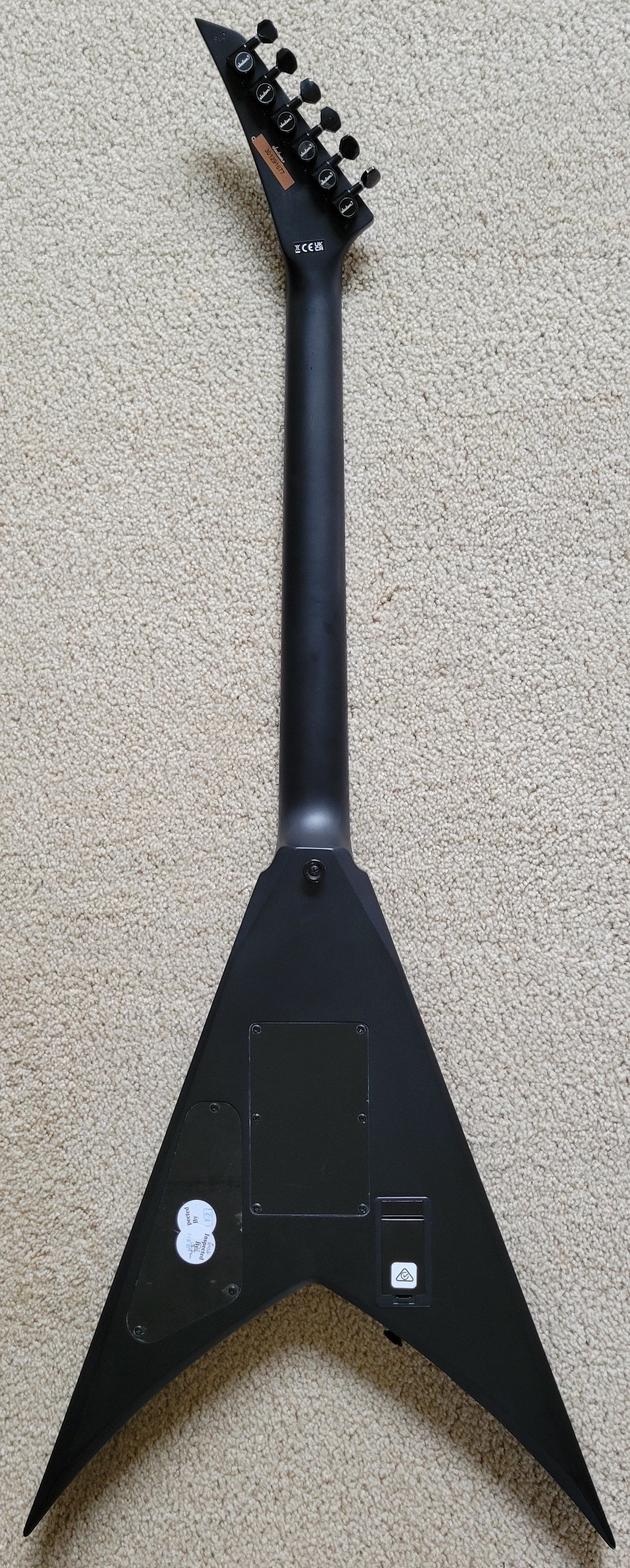 - Satin Black with pointed 6-in-line black headstock and black hardware