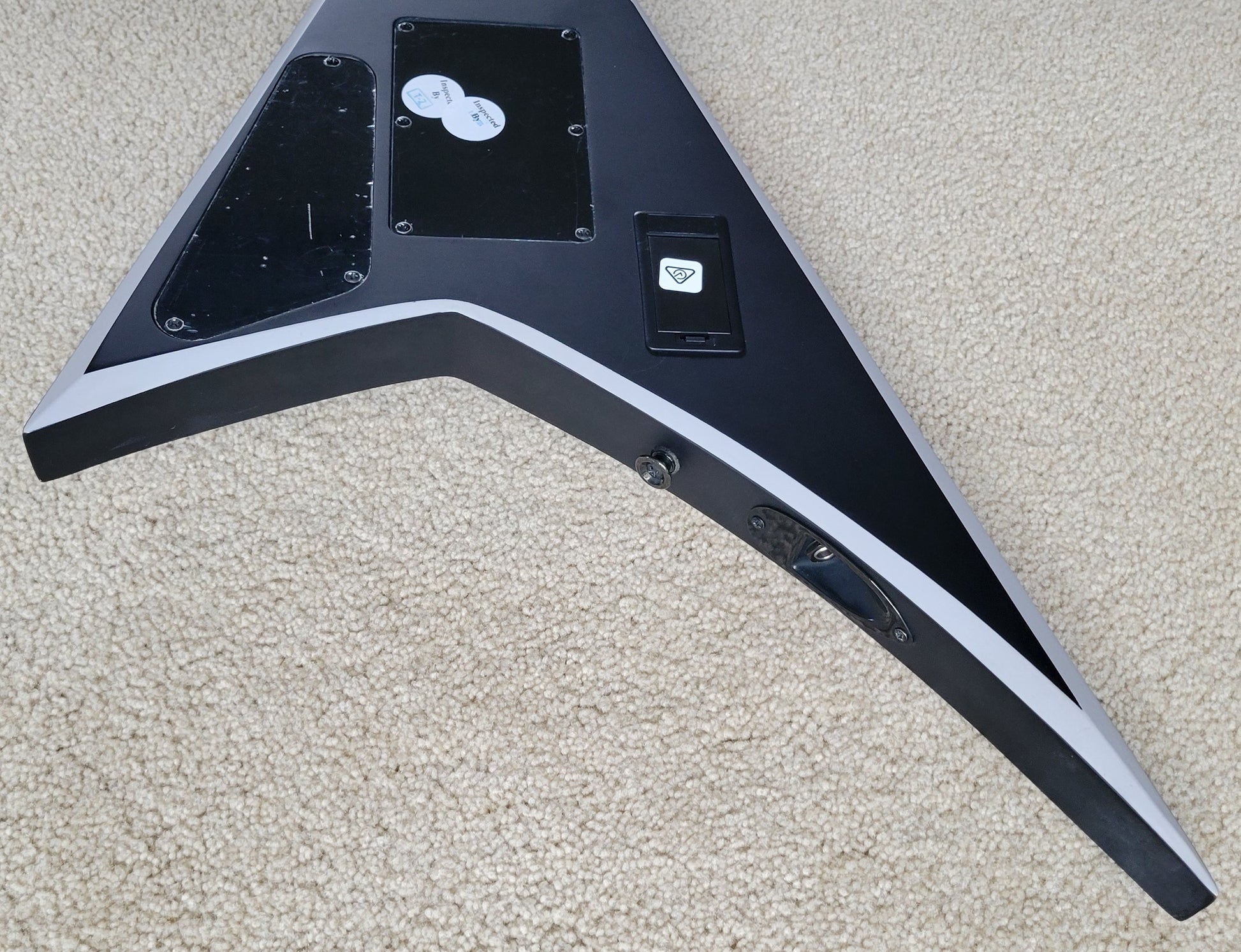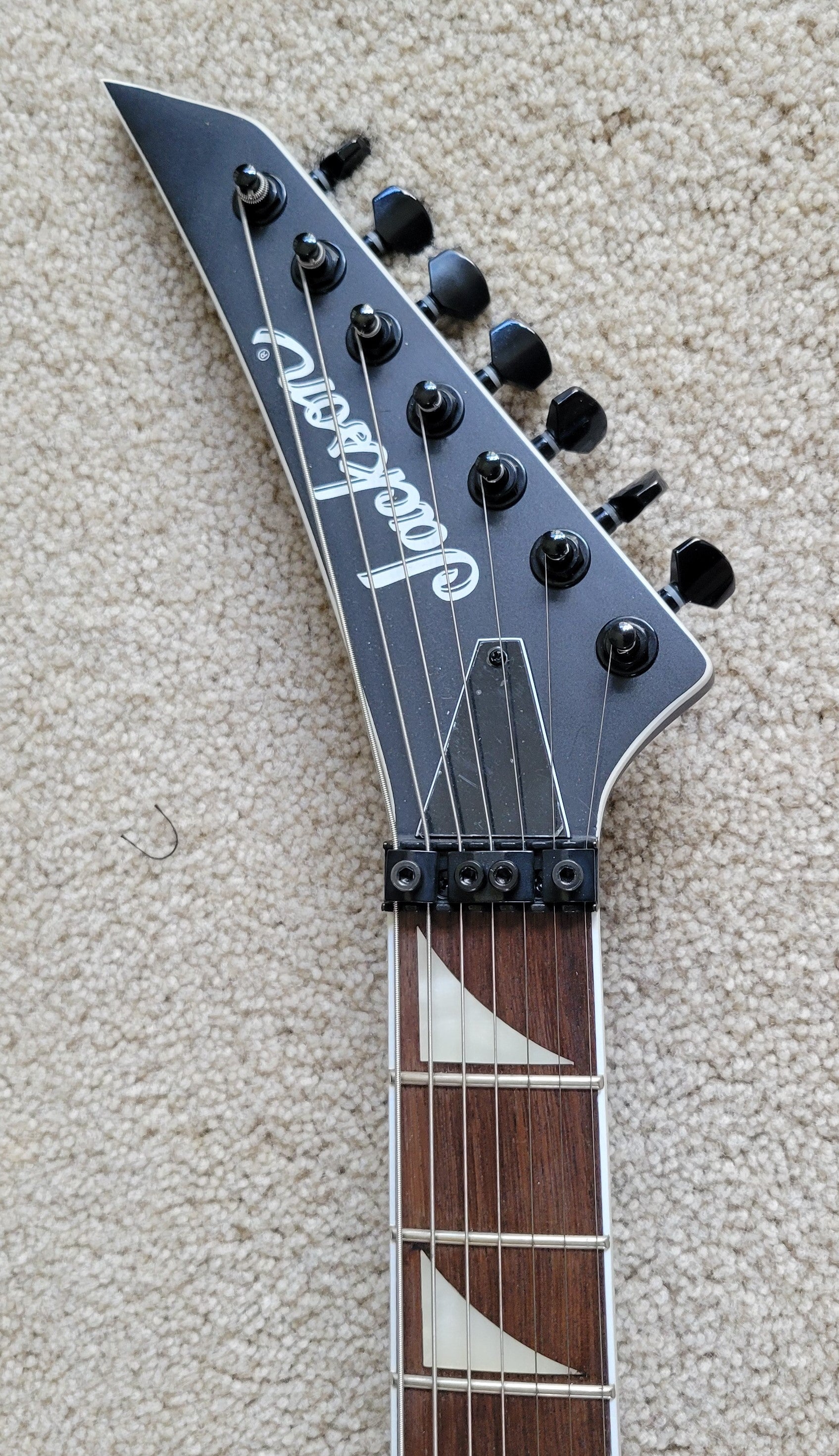 Our classic pointy headstock, but with a twist. A reverse 7-in-line headstock adds even more sinister attitude to a Jackson axe.