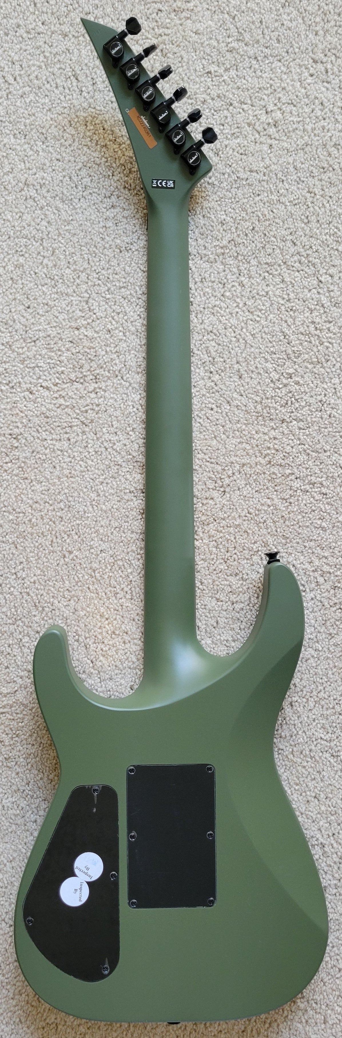 A stylishly contoured poplar body and pure Jackson neck-through-body construction ensure ergonomic comfort during long sets along with monstrous sustain and smooth playing all the way up to the 24th jumbo fret. Graphite-reinforcement rods run through the maple neck, protecting it against environmental depredations, while the ultra-fast 12"-16" compound radius bound laurel fingerboard is built from the get-go for easy chording and riffing near the nut and rapid, fret-out-free leads as you move up the neck.