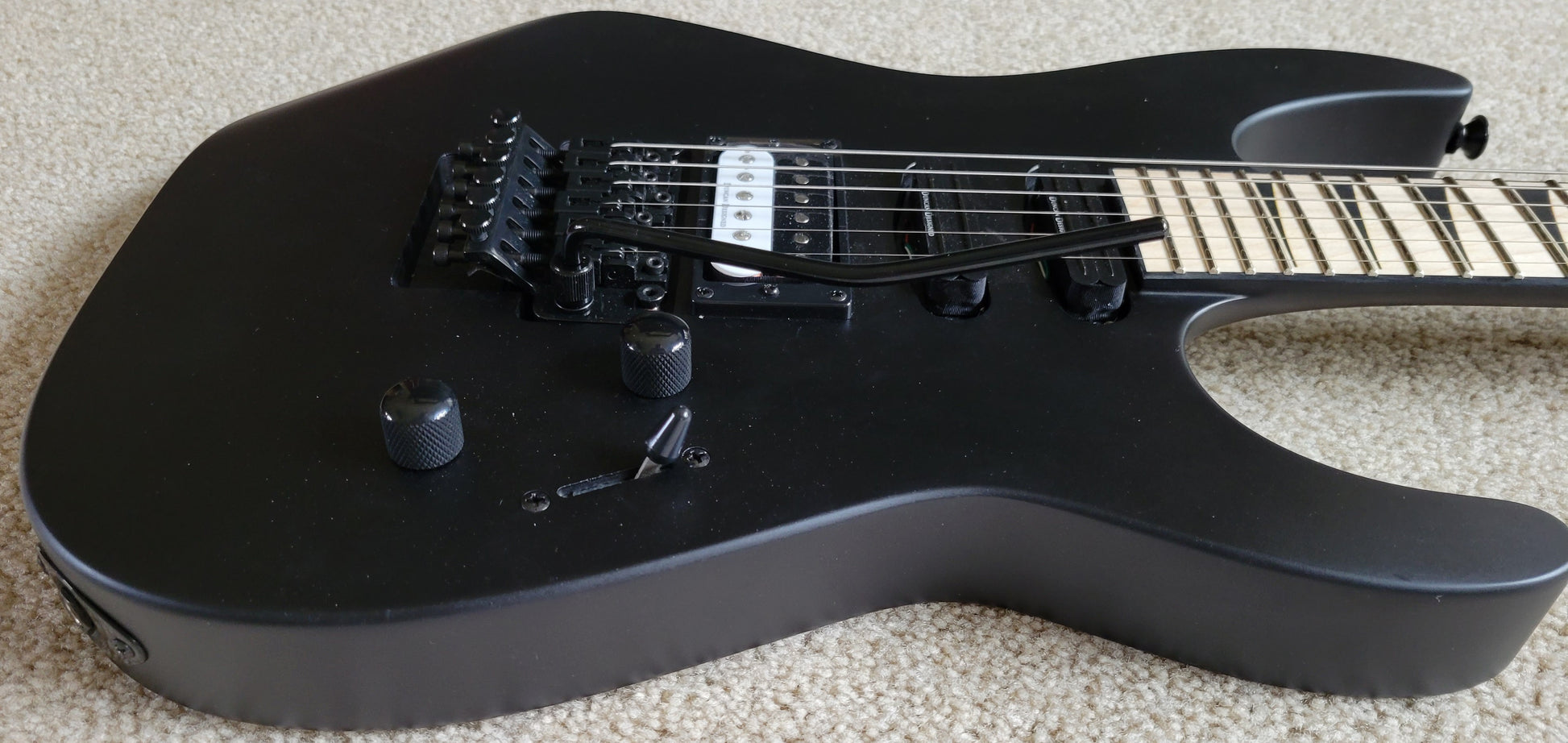 A stylishly contoured poplar body and pure Jackson neck-throughbody construction ensure ergonomic comfort during long sets along with monstrous sustain and smooth playing all the way up to the 24th jumbo fret. Graphite-reinforcement rods run through the maple neck, protecting it against environmental depredations, while the ultra-fast 12”-16” compound radius bound maple fingerboard is built from the get-go for easy chording and riffing near the nut and rapid, fret-out-free leads as you move up the neck.