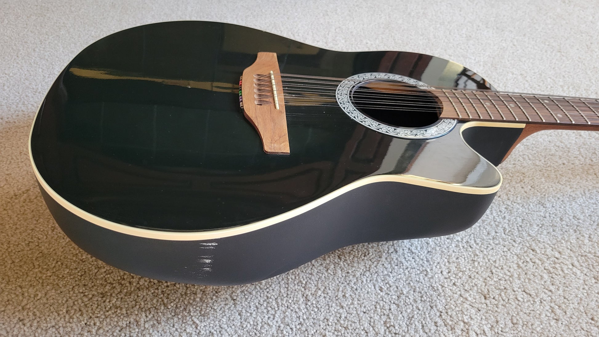 Ovation USA 6751 Standard Balladeer 12 String Acoustic Electric Guitar, Gloss Black, Hard Case